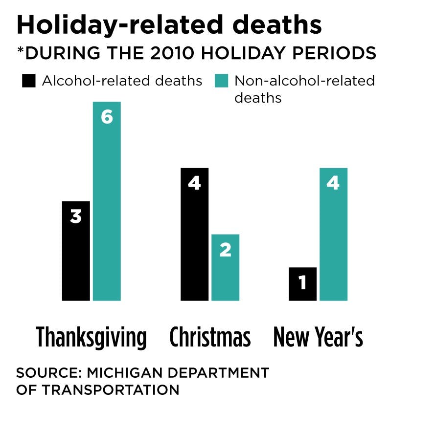 Last year, there were 49 alcohol-related car crashes the night before Thanksgiving and nine fatal crashes causing 10 deaths between 6 p.m. Wednesday and midnight Sunday, Thanksgiving weekend, according to the Michigan State Police.