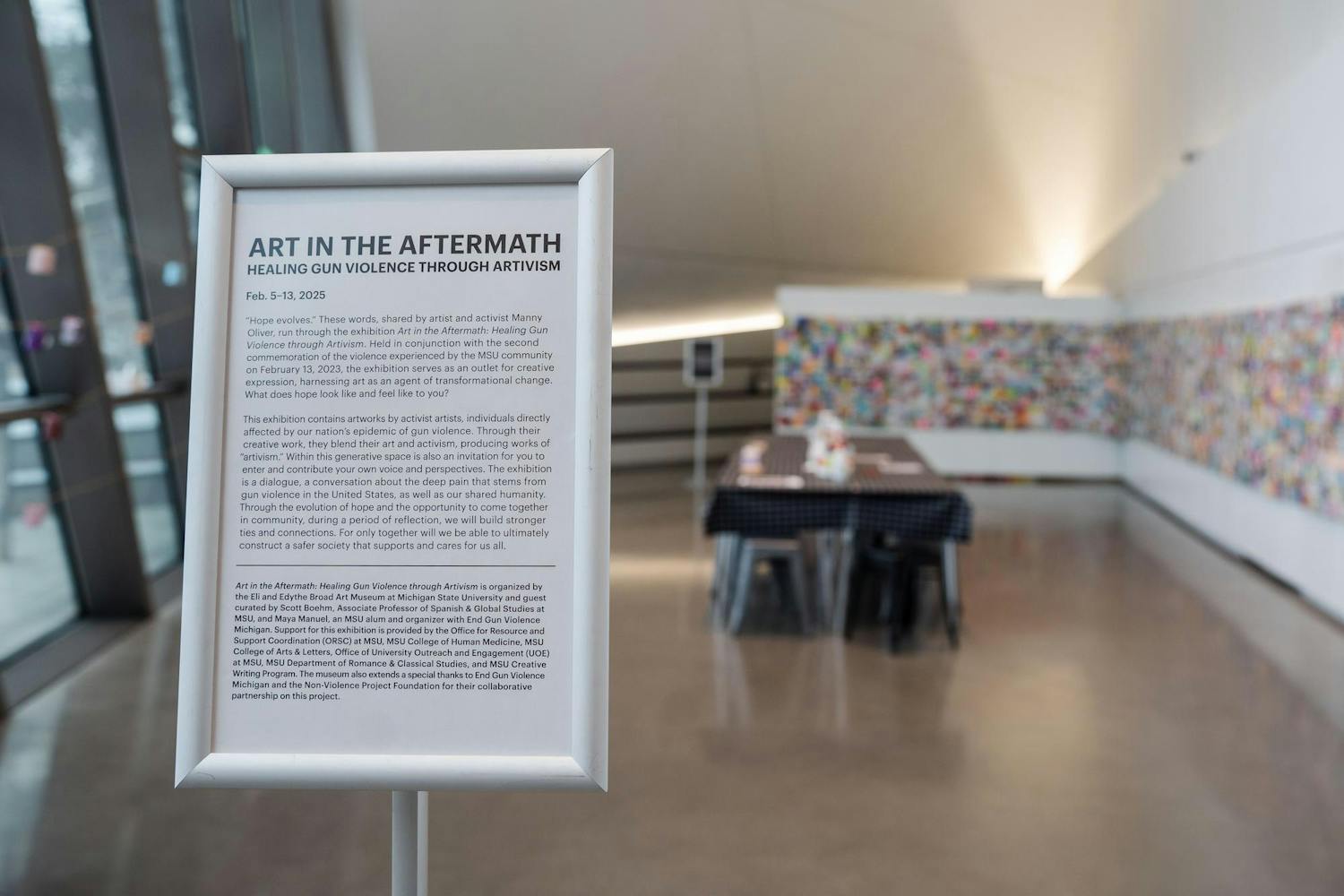 On the night of Feb. 13, 2023, students and faculty in Berkey Hall fled to the MSU Broad Art Museum seeking refuge during the shooting that killed three students and injured five. Now, two years later, the museum seeks to reclaim the space — transforming it from a space of fear and violence, to one of healing where others can process the events of that night.