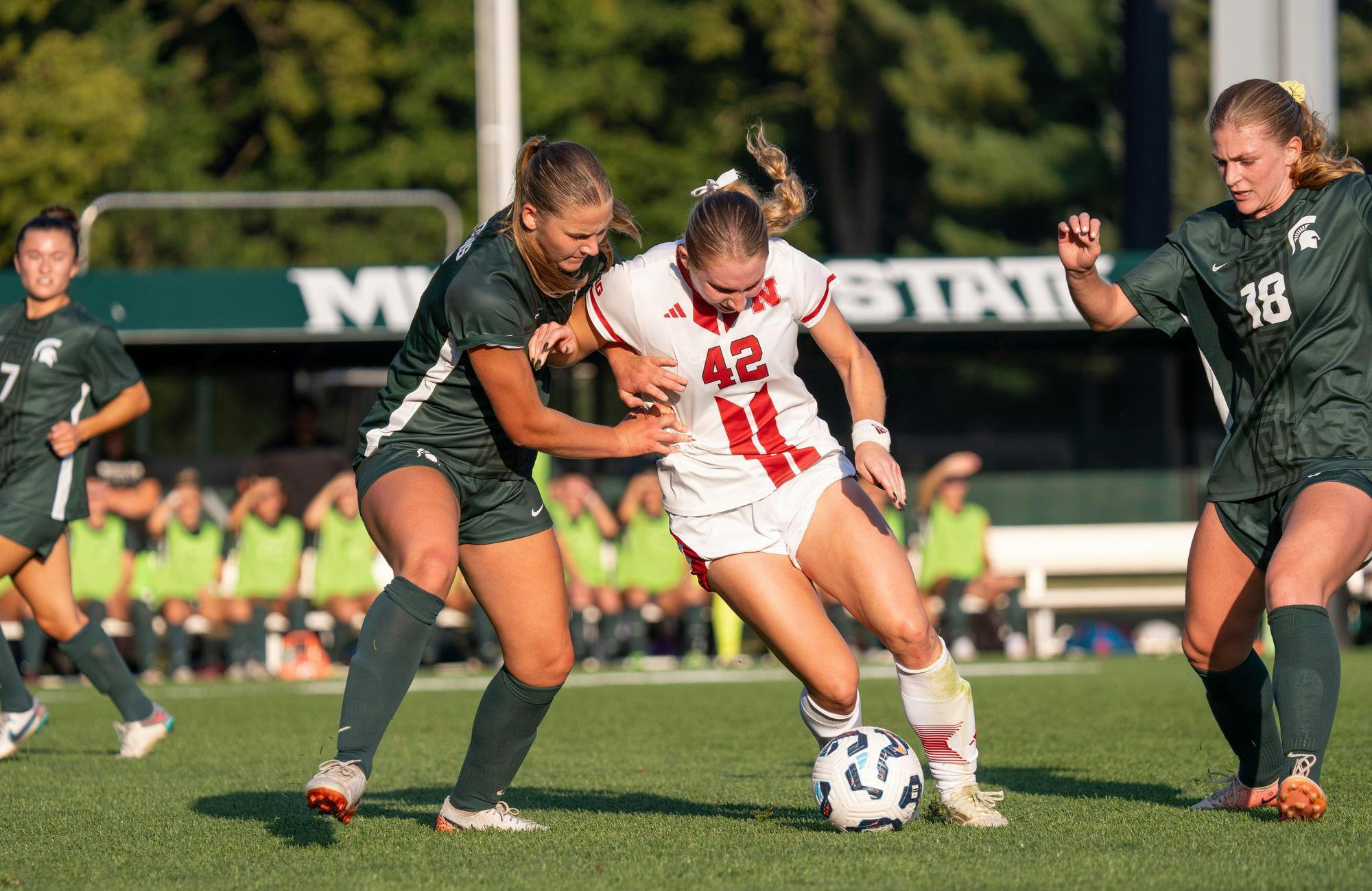 Michigan State University women's soccer defeats the University of Nebraska 4-1 in their first home conference match of the year