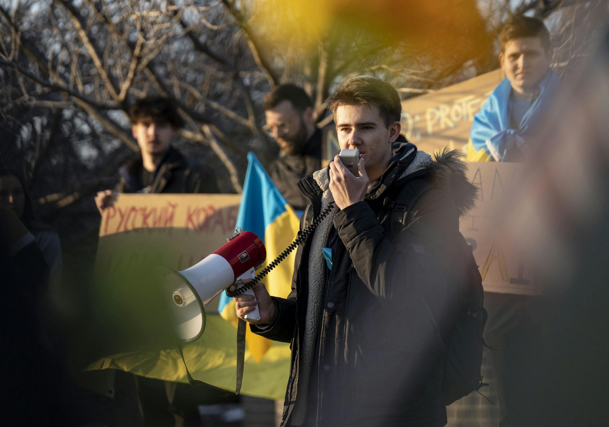 Michigan State students “Stand with Ukraine” at Demonstration Field