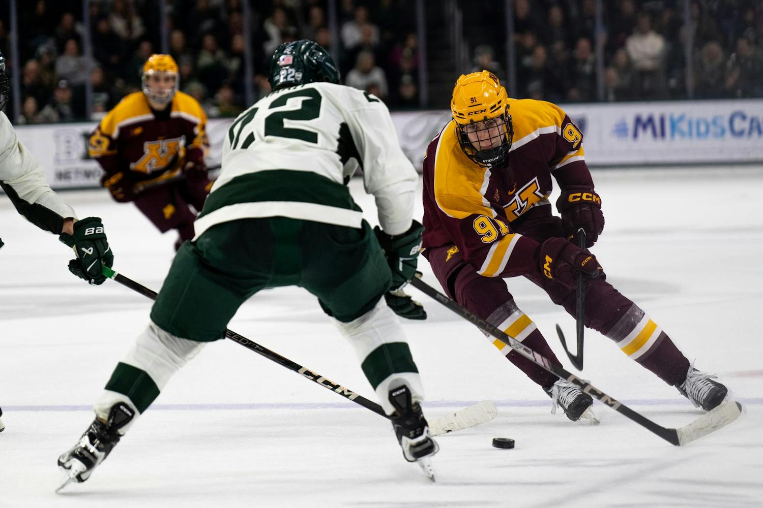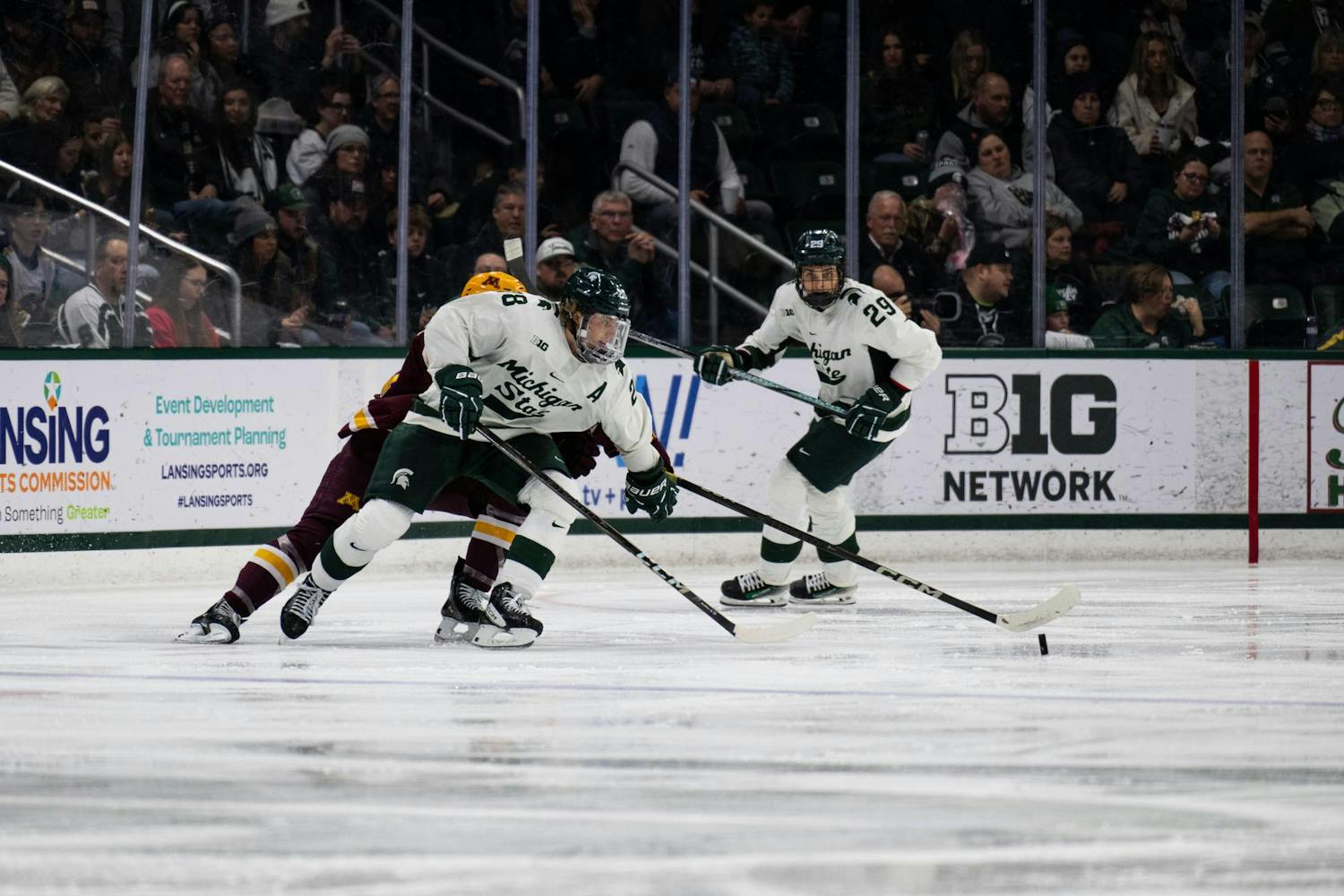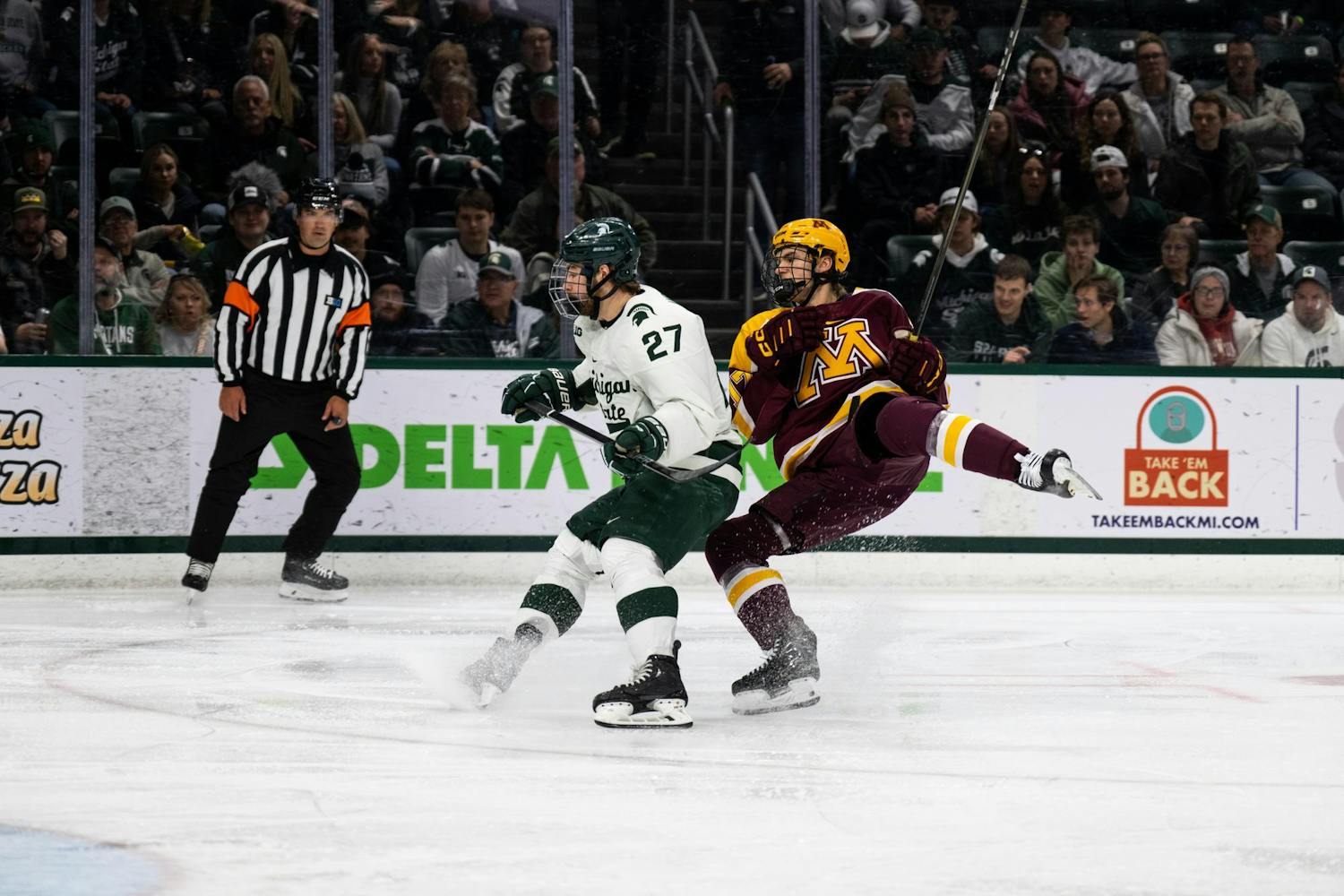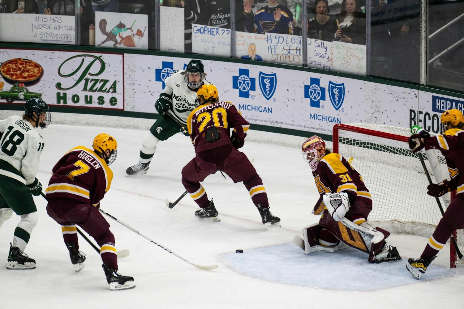 No. 2 Michigan State men's hockey took on No. 4 Minnesota at Munn Ice Arena on Jan. 25, 2025. The Spartans completed the regular season sweep of the Golden Gophers following a 4-3 shootout victory.
