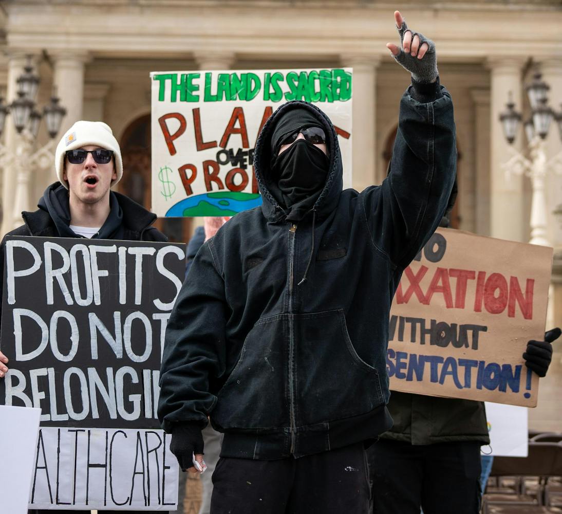 Protesters rally at Michigan State Capitol to oppose fascism, support human rights