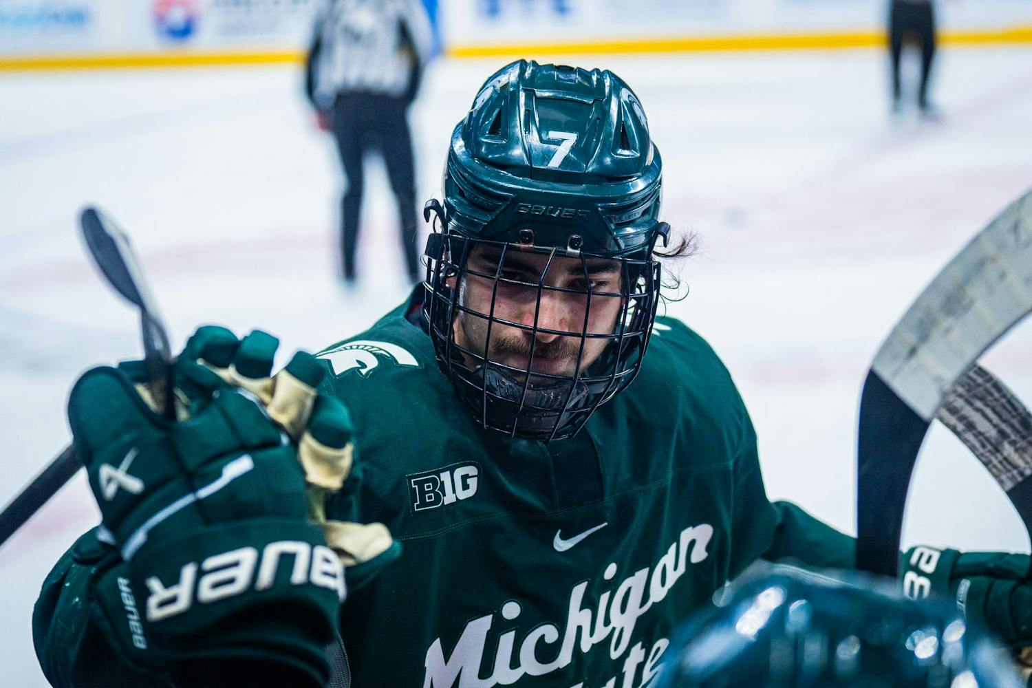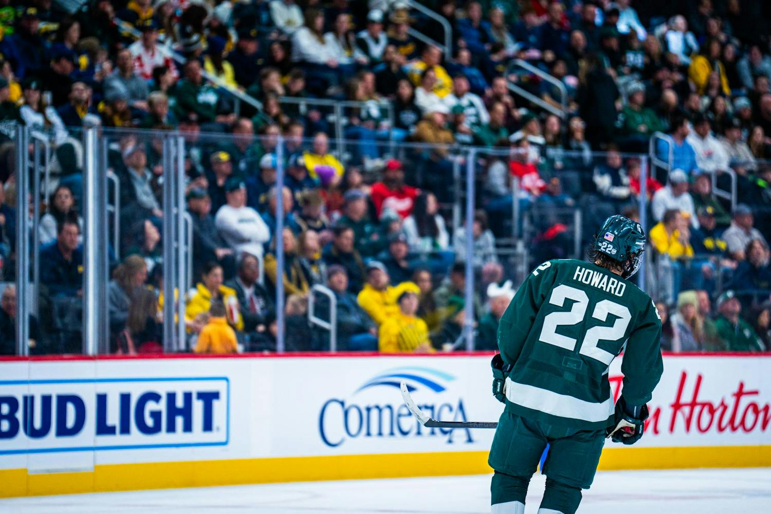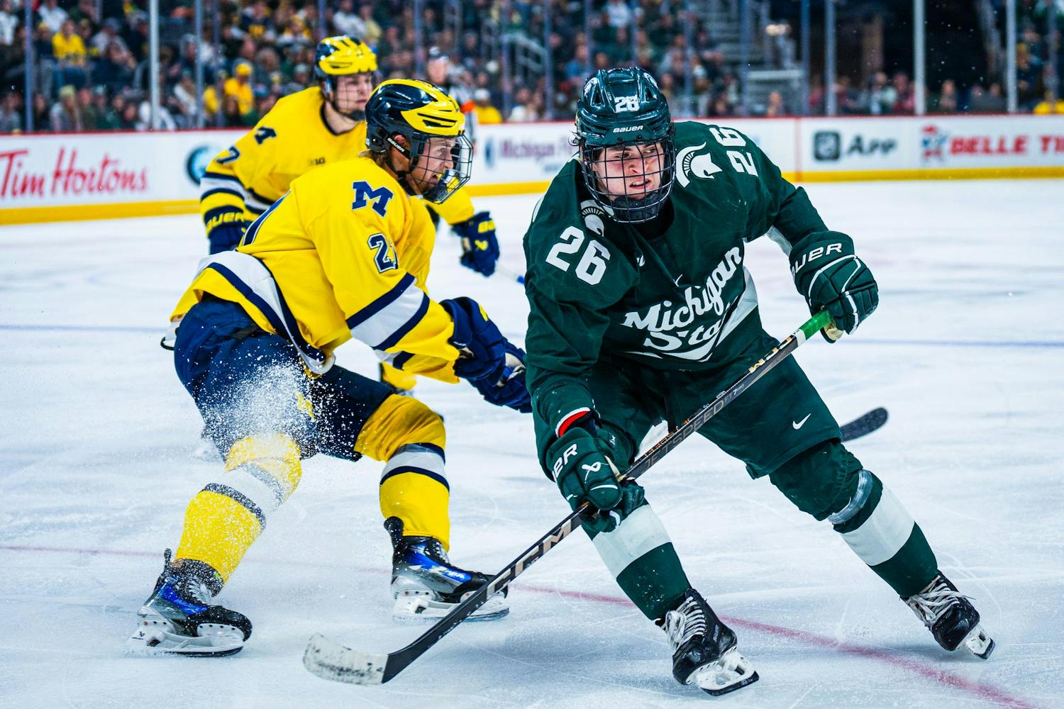 The Michigan State University Men's Hockey Team rode into Detroit looking for redemption following Friday's disappointing loss against the University of Michigan, and found it with a convincing 6-1 win at Little Caesars Arena on Feb. 8, 2025. The Spartans are now 22-5-3 on the season, further establishing their place atop the Big Ten hockey standings.