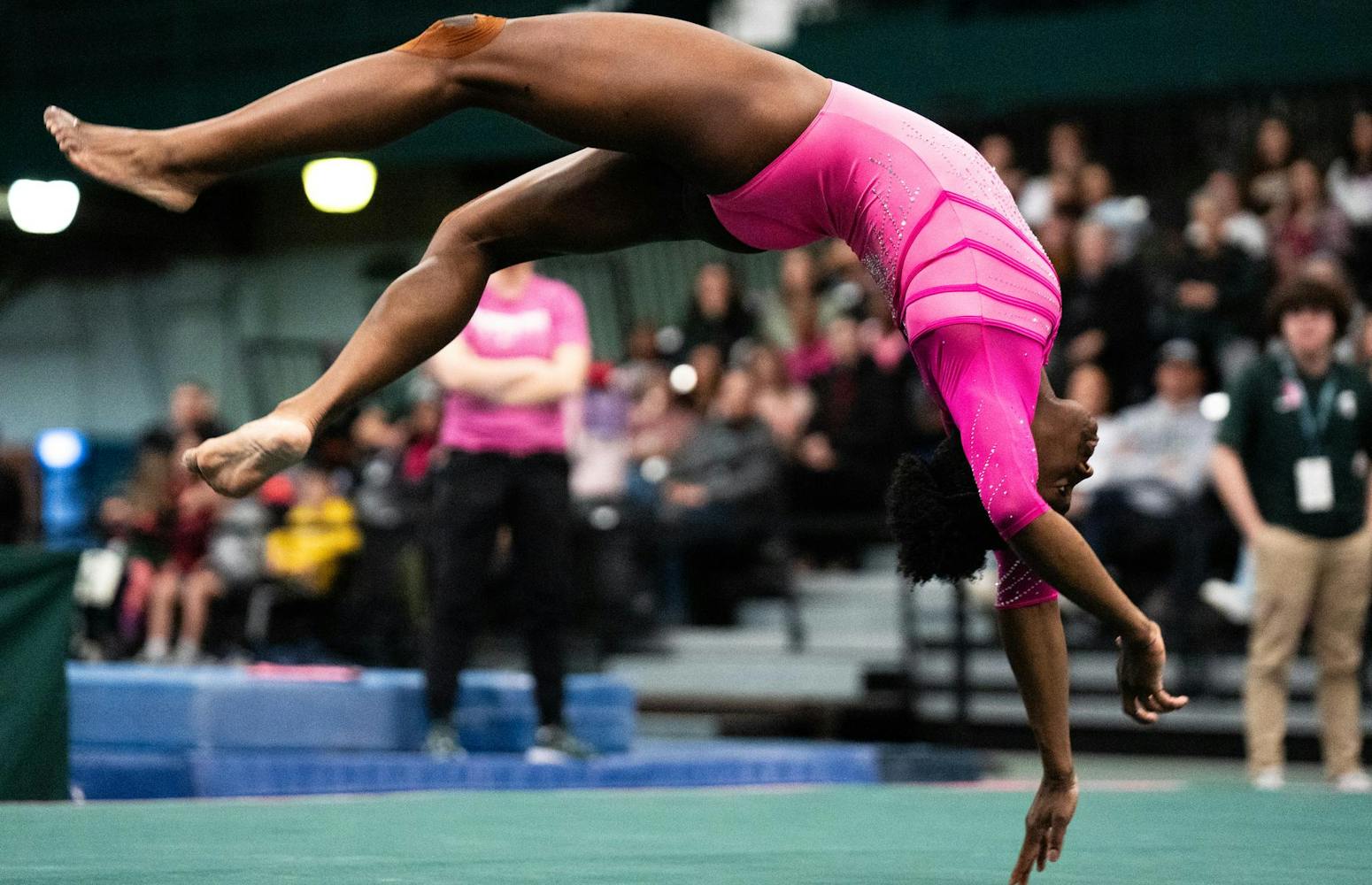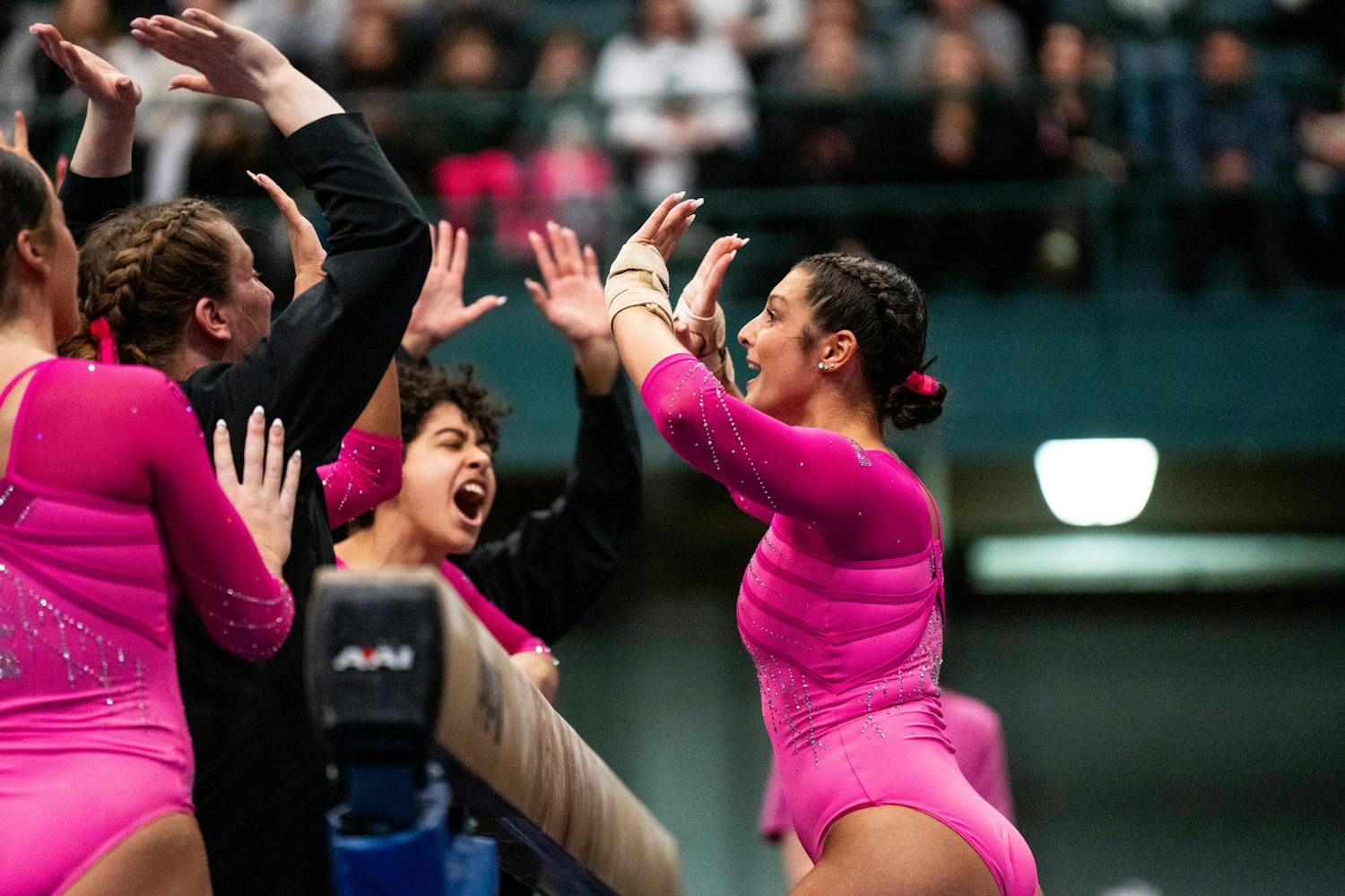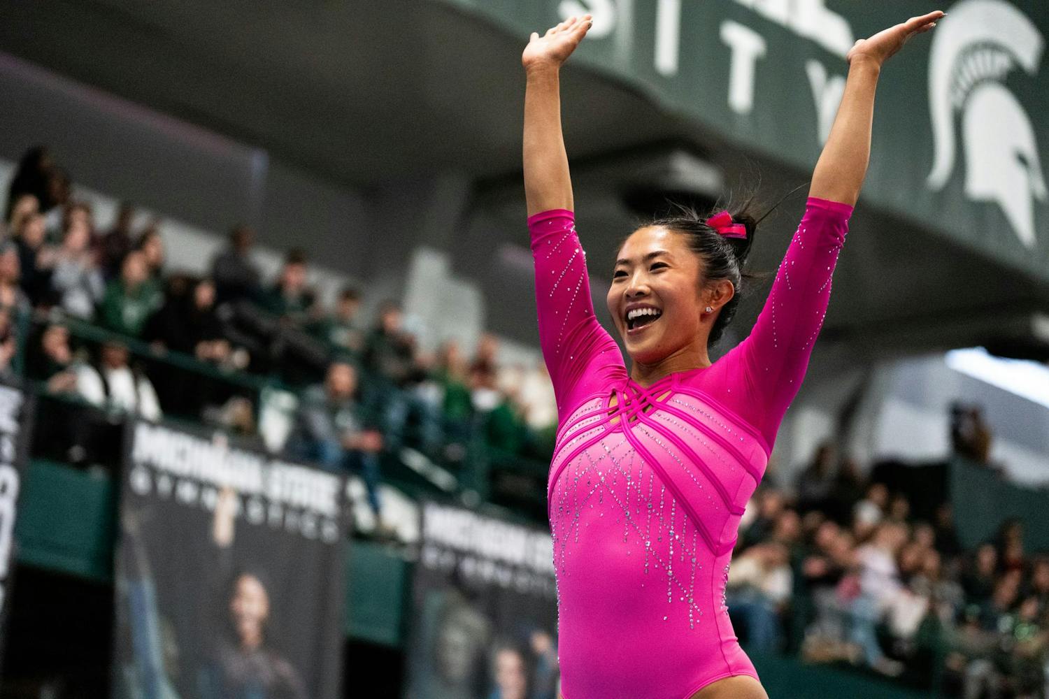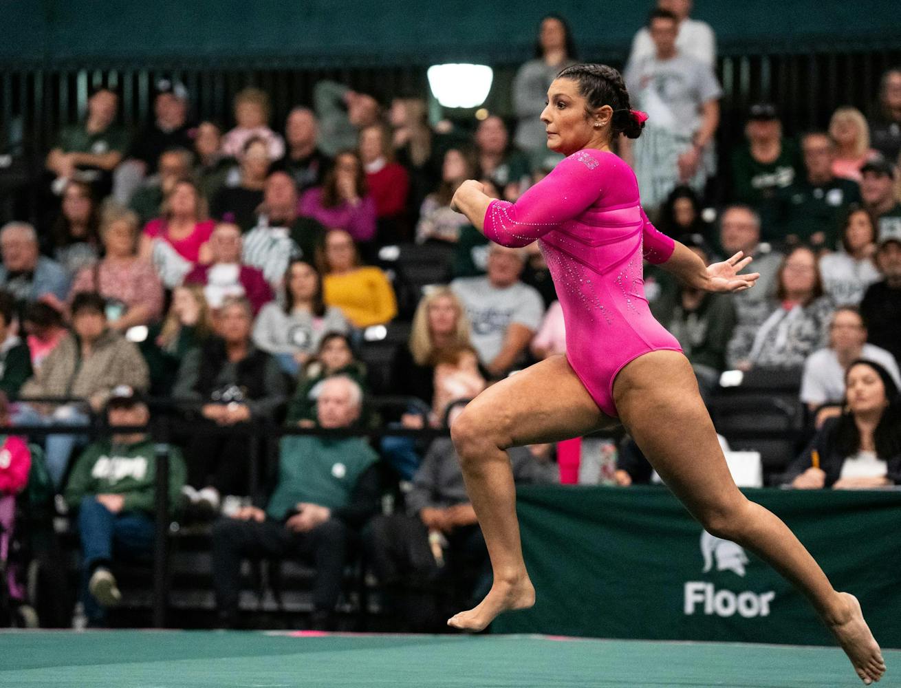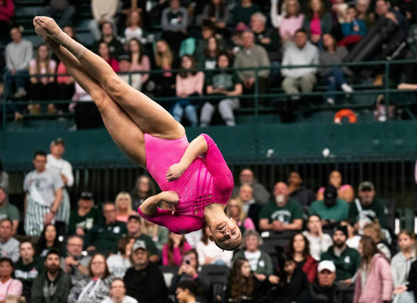 The No. 7 Michigan State University gymnastics team led an excellent meet against Rutgers, scoring a 197.475-196.275 victory at Jenison Field House on Feb. 22, 2025