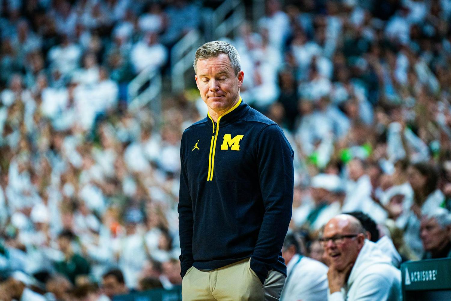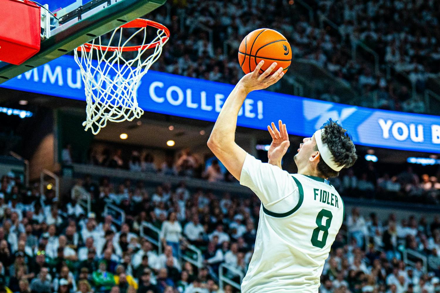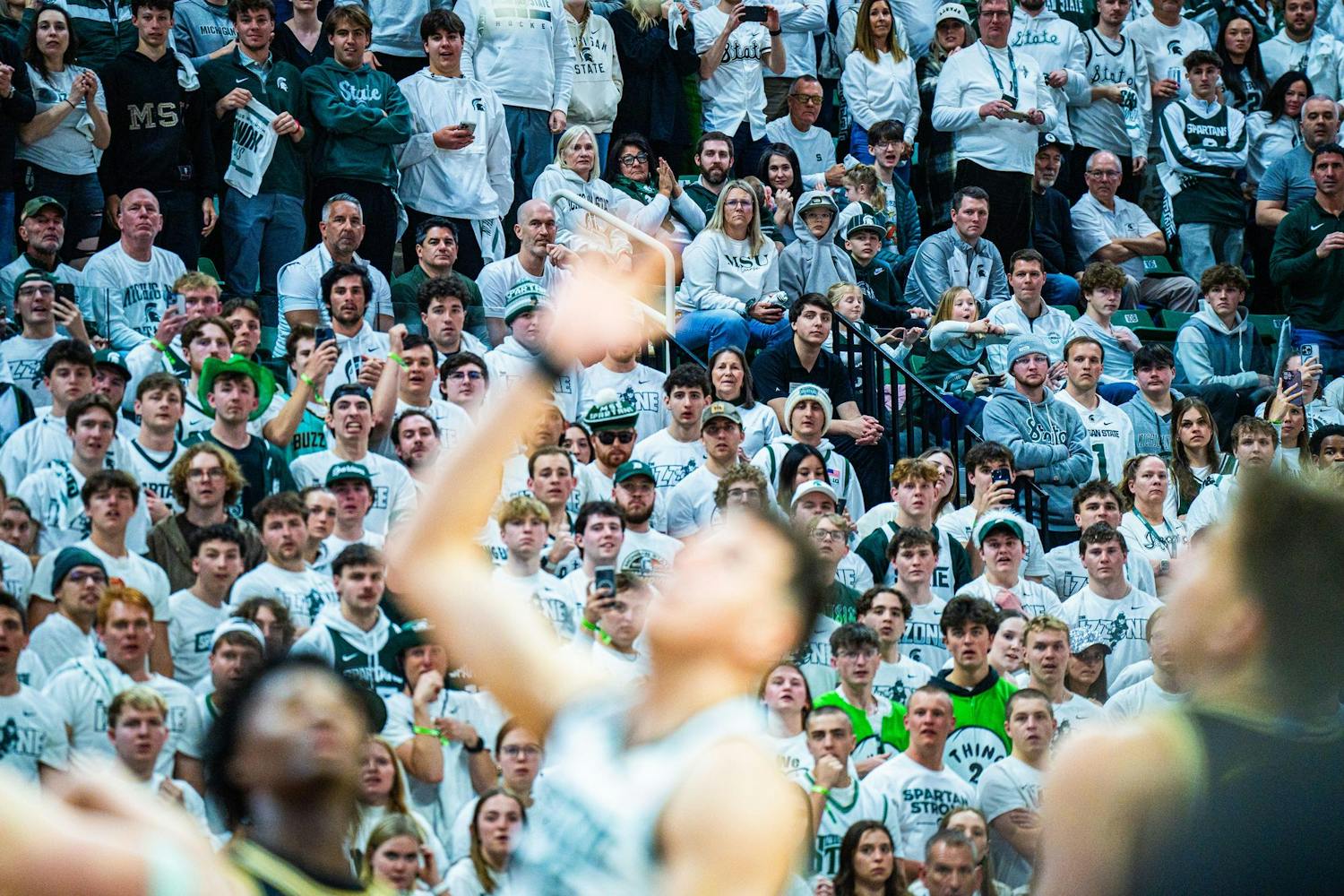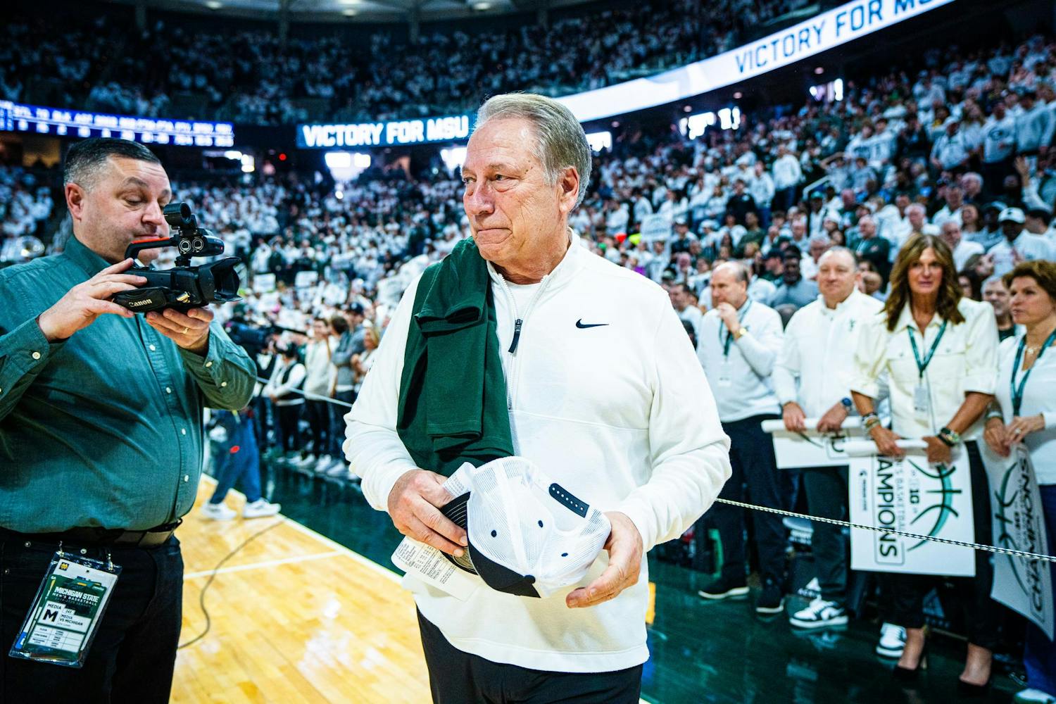 MSU men's basketball showed out against University of Michigan, earning both a 79-62 victory and the Big Ten regular season title at the Breslin Center on March 9, 2025. This is their seventh straight win and second victory over Michigan this season. It was also Senior Day, which saw celebrations take place for the three graduating seniors: guard Jaden Akins, forward Frankie Fidler and center Szymon Zapala.