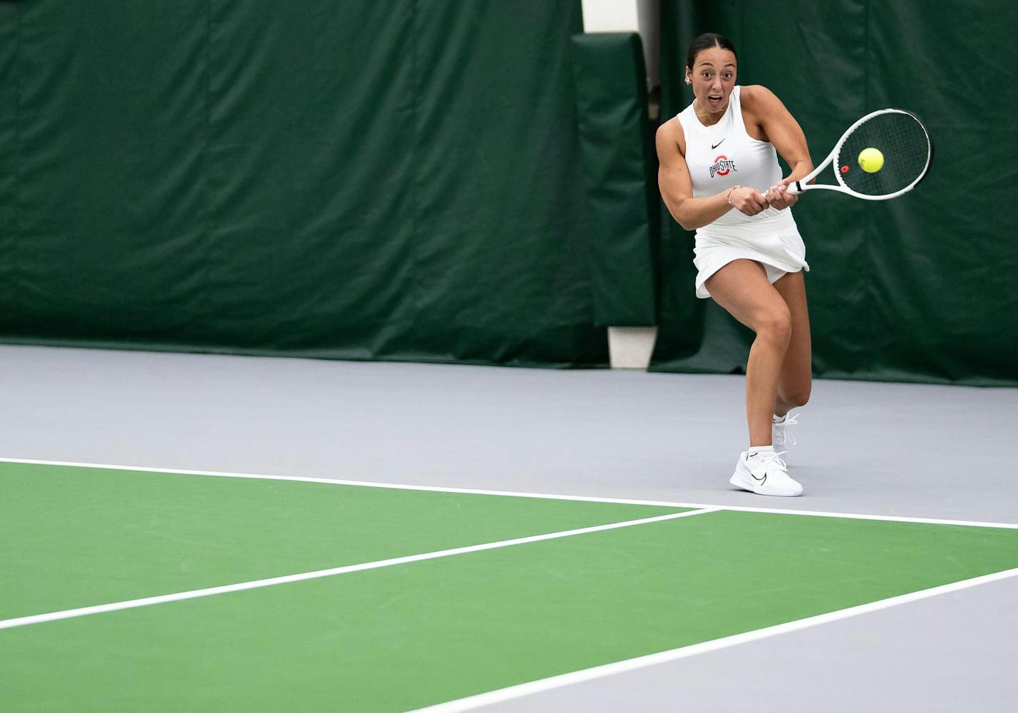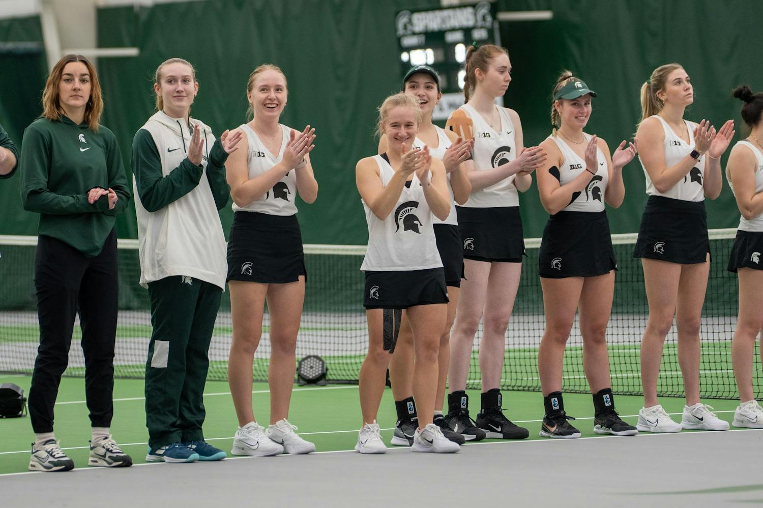 Michigan State women's tennis took on Ohio State at the MSU Tennis Center in Lansing, Michigan on March 16, 2025. The Buckeyes won 4-0 and are 23-2 overall against the Spartans since the first time they met in 2001.