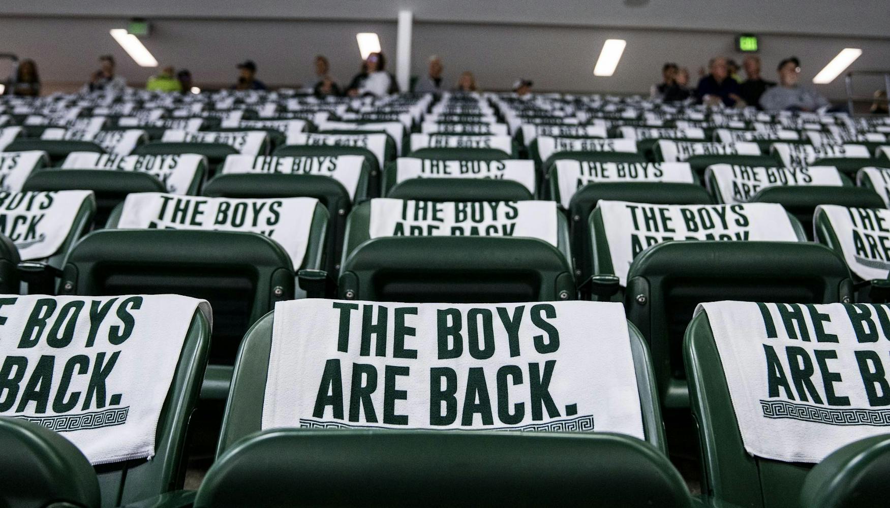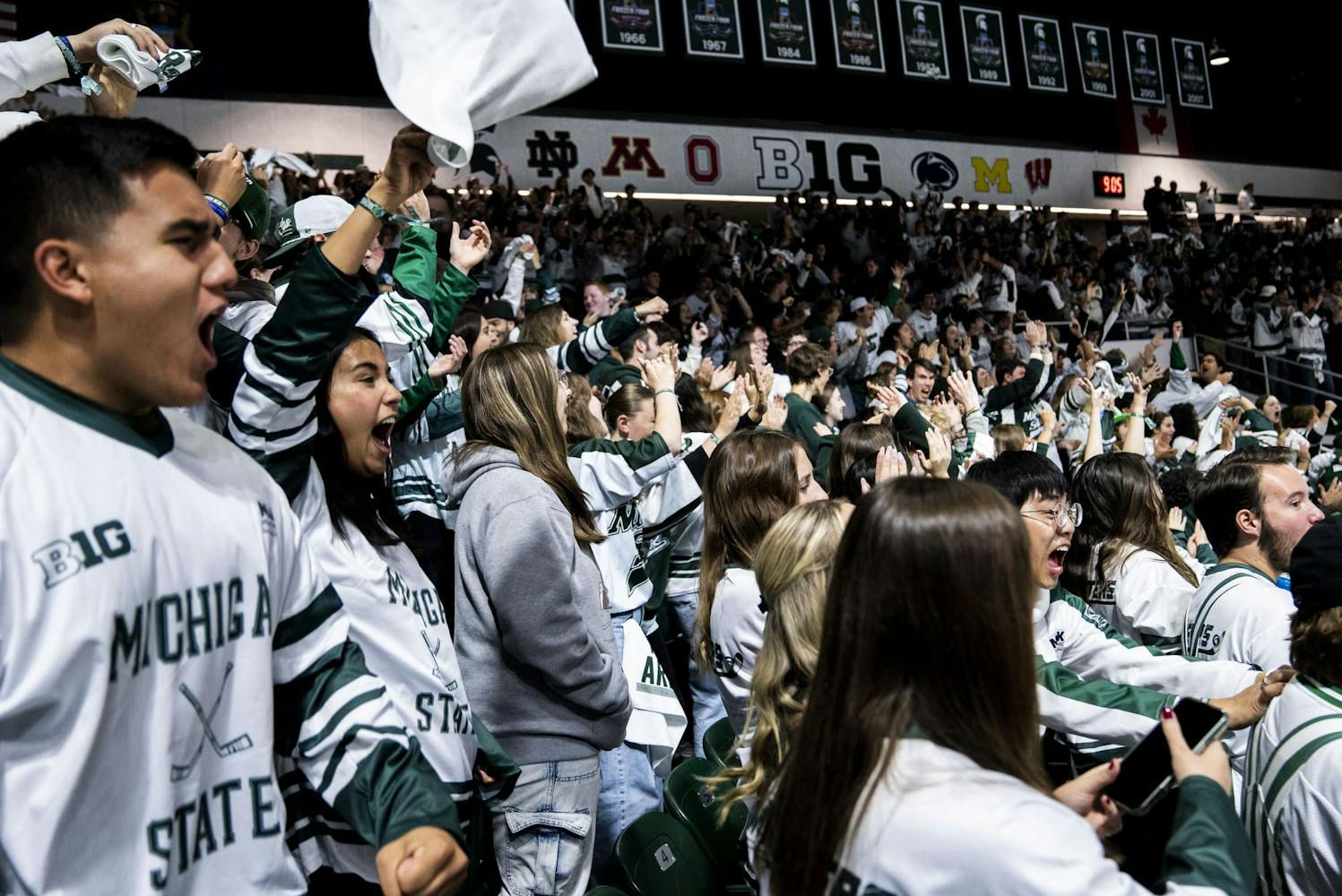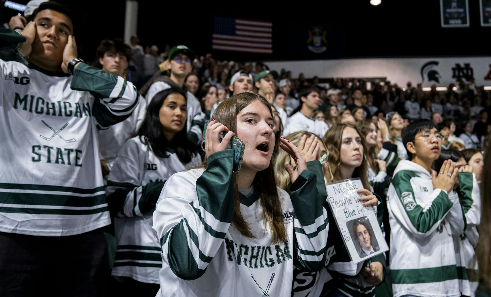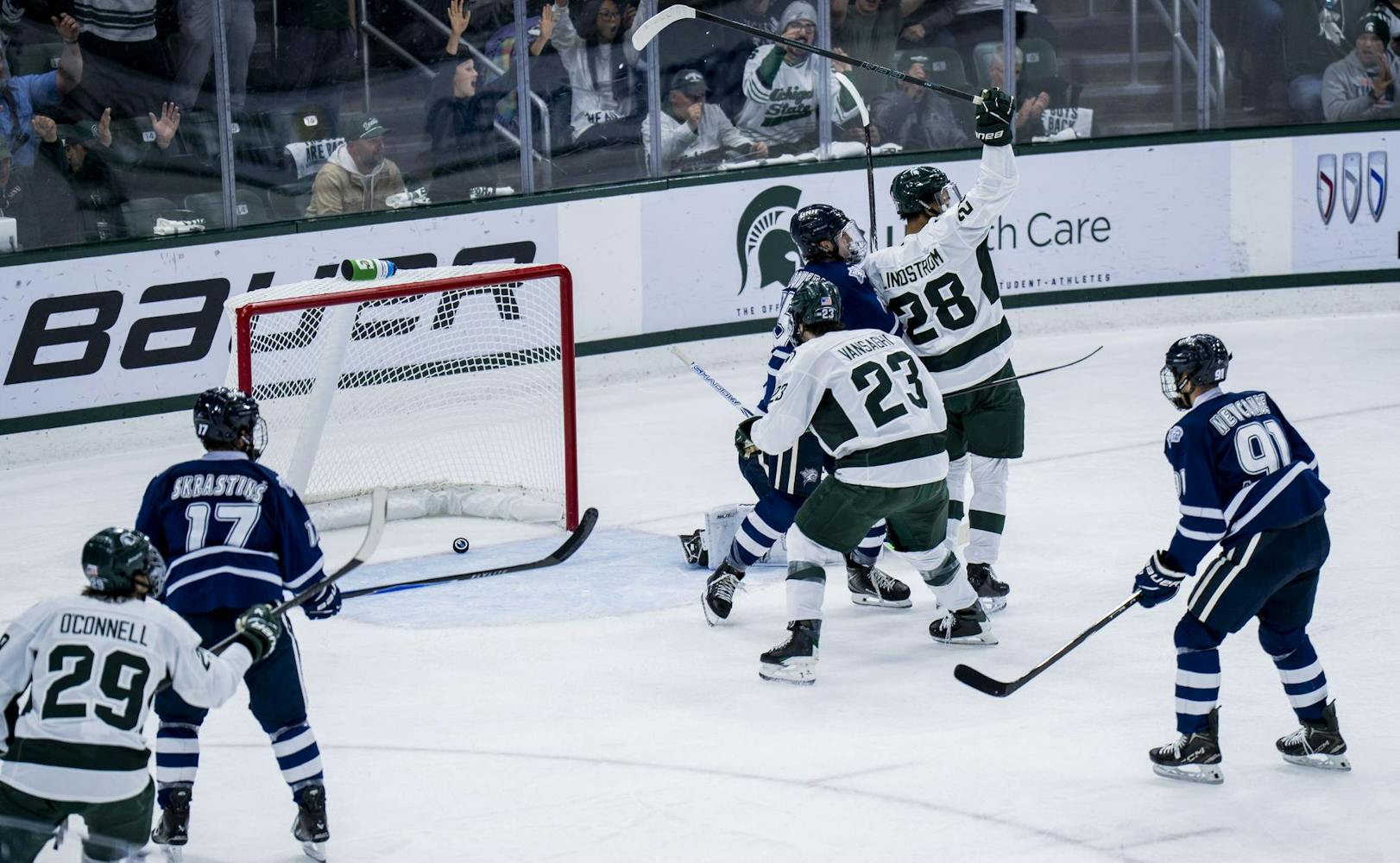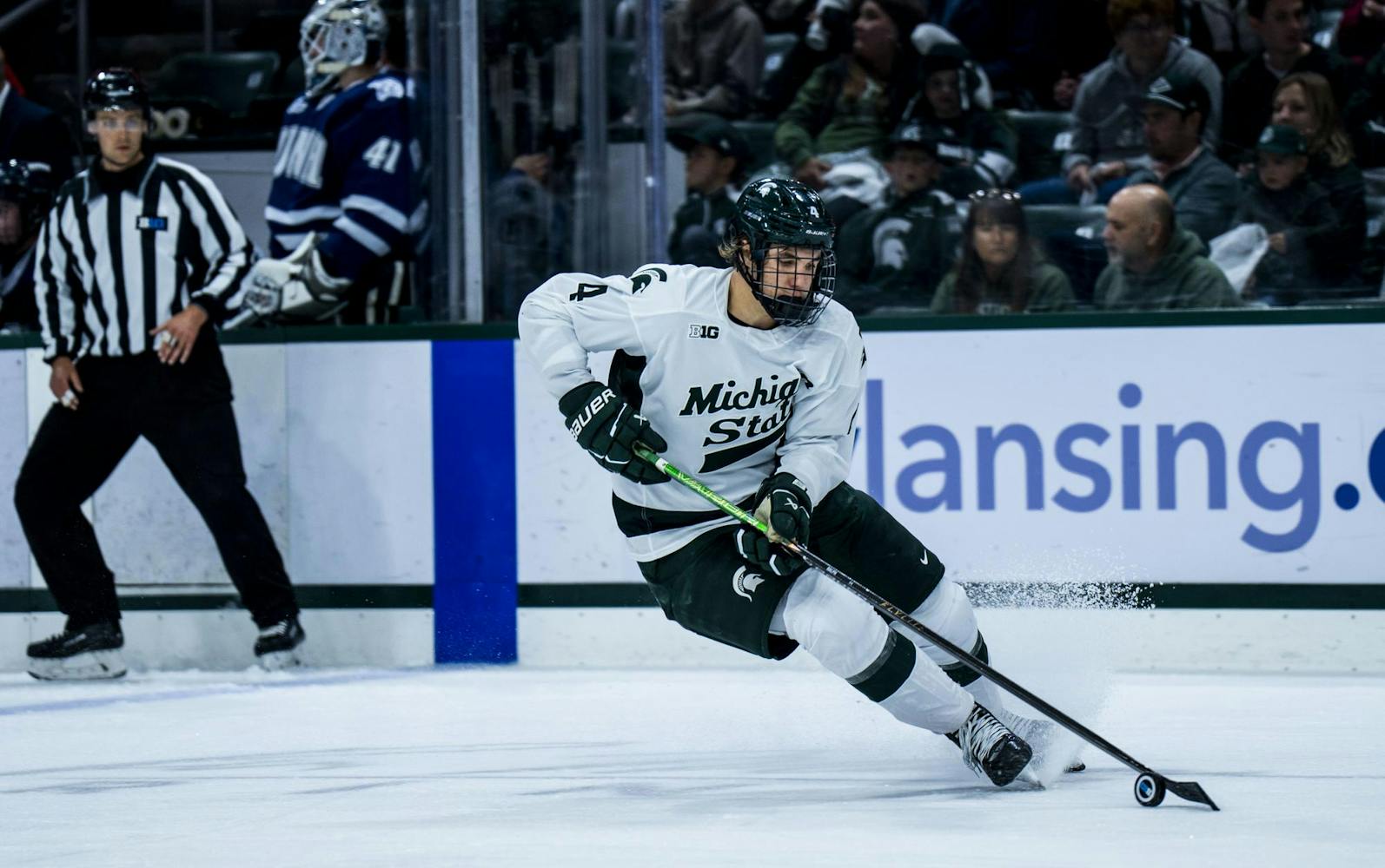 MSU men's hockey falls to New Hampshire during their first game of the season in the Munn Ice Arena in East Lansing, Michigan on Oct. 9, 2025. After a close match MSU men's hockey lost 4-3 in the final seconds of the game.