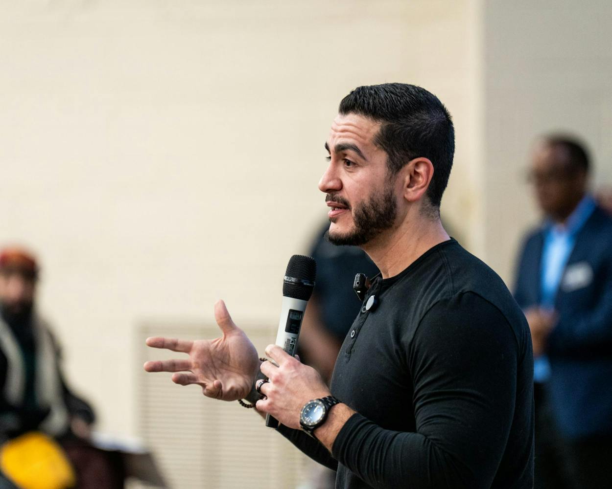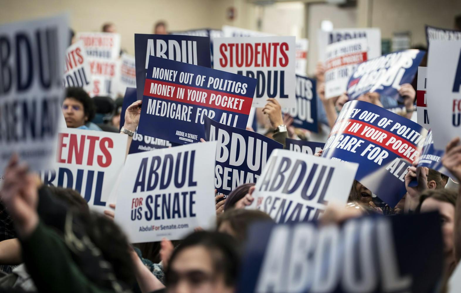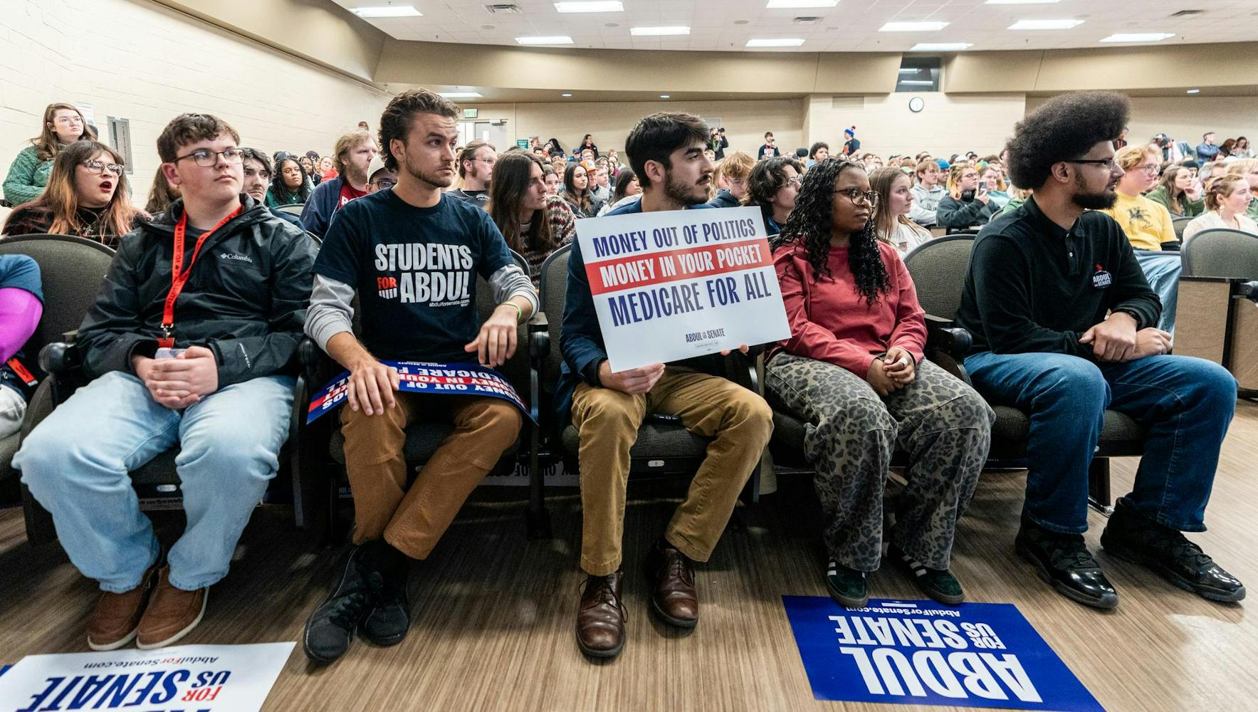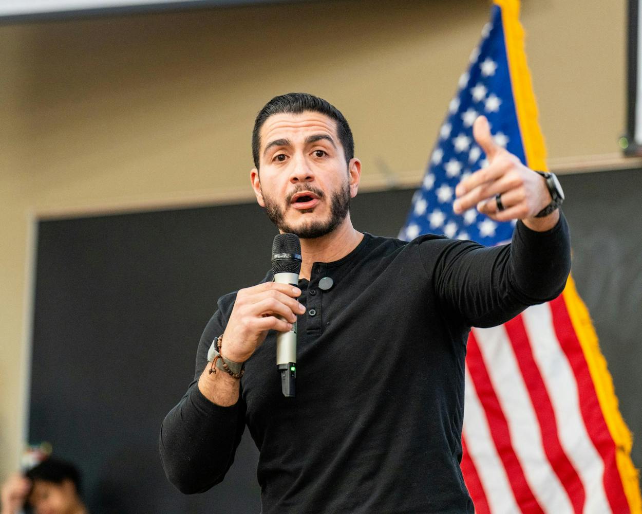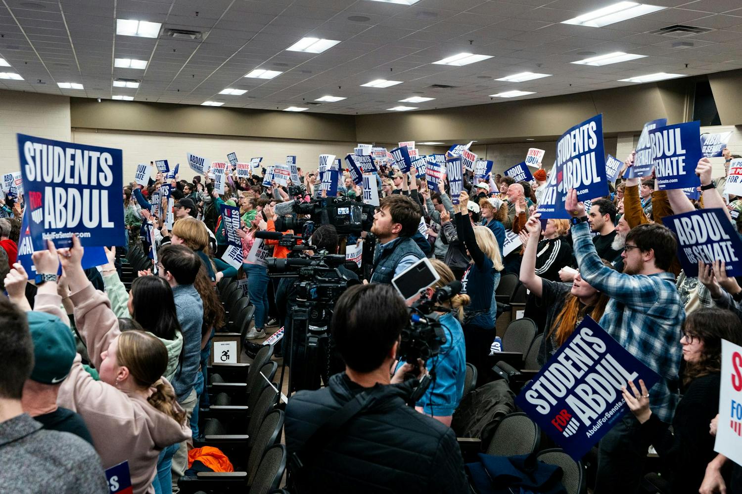 Abdul El-Sayed – a candidate for the upcoming 120th Senate – holds a rally for his 'Abdul for U.S. Senate' campaign in Michigan State University's Anthony Hall in East Lansing, MI on April 7, 2026. Attendees gather to hear his campaign efforts, as he spoke about federal funding and healthcare issues. El-Sayed brought along two endorsers of his campaign, popular leftist commentator Hasan Piker and Congresswomen Summer Lee – both of whom speak about and support Abdul's goals as his campaign continues.