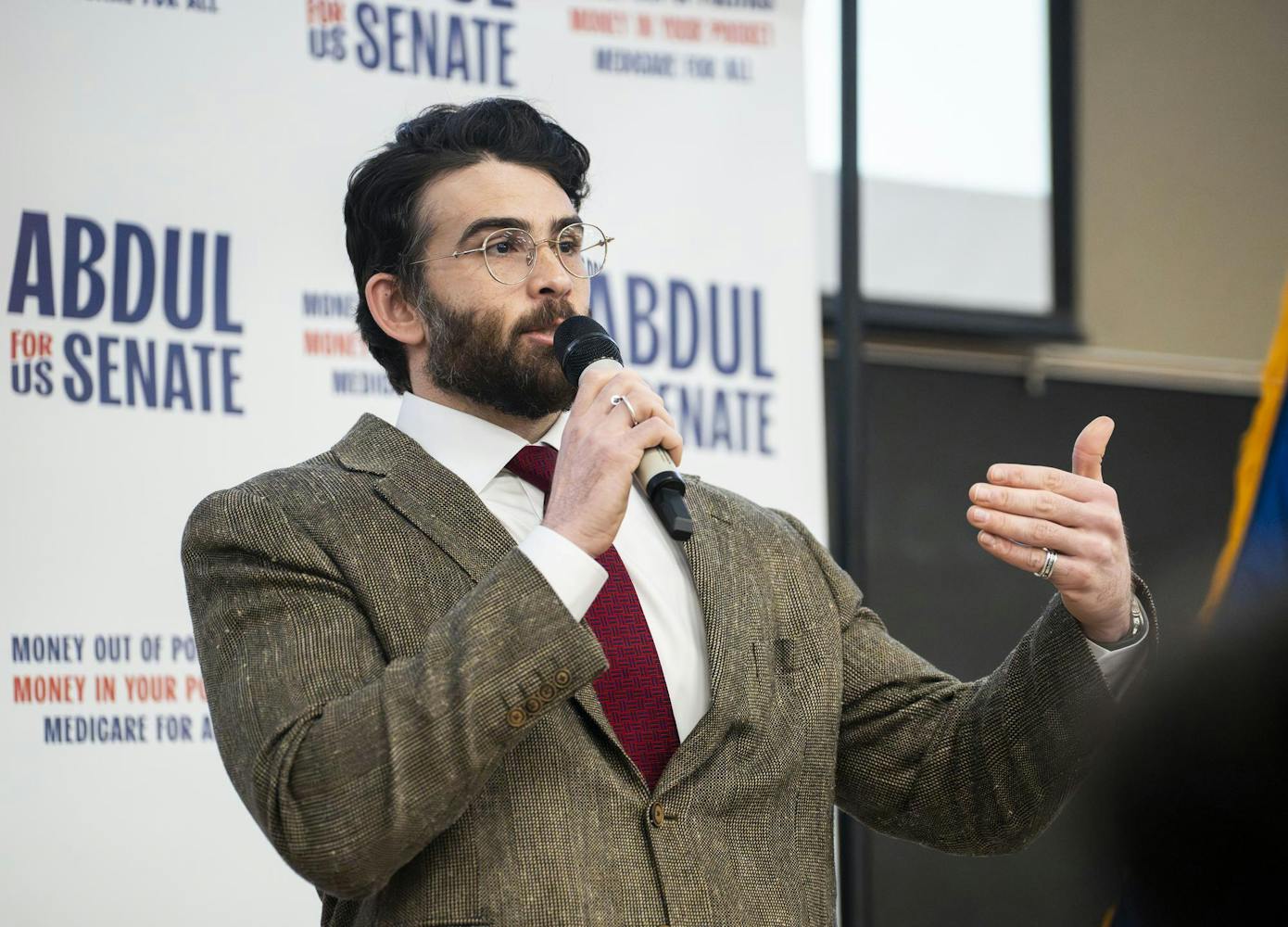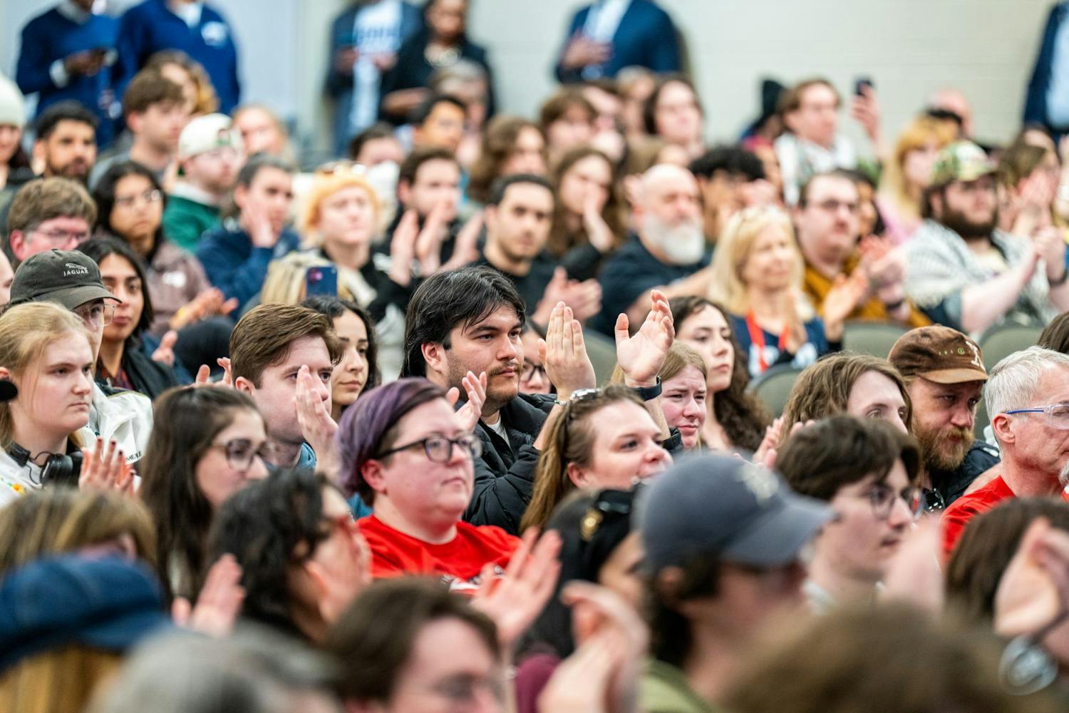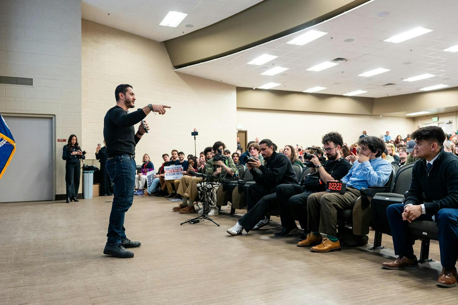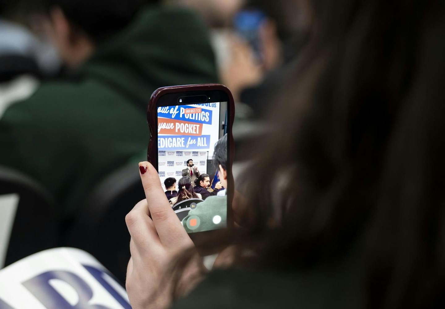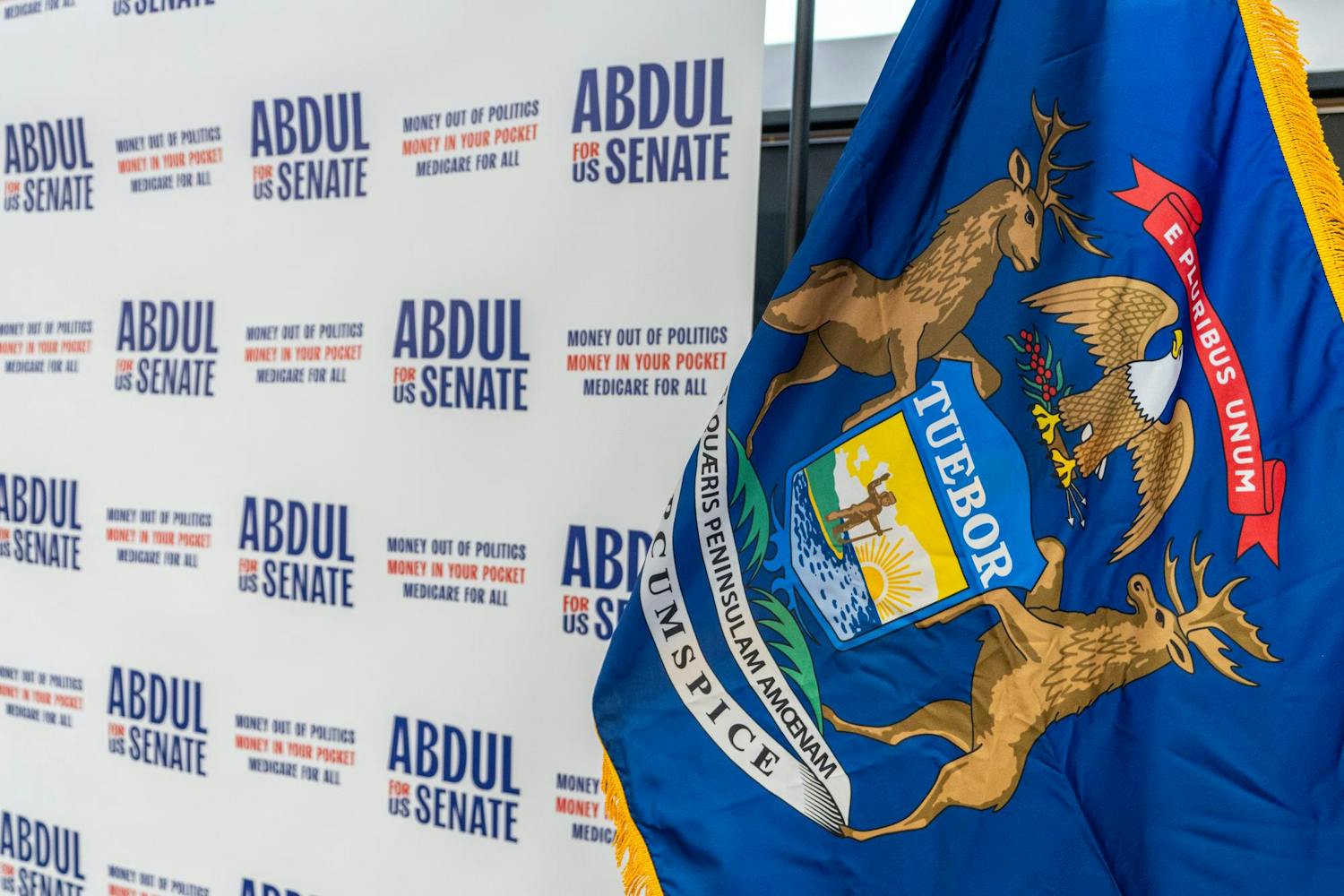Abdul El-Sayed – a candidate for the upcoming 120th Senate – holds a rally for his 'Abdul for U.S. Senate' campaign in Michigan State University's Anthony Hall in East Lansing, MI on April 7, 2026. Attendees gather to hear his campaign efforts, as he spoke about federal funding and healthcare issues. El-Sayed brought along two endorsers of his campaign, popular leftist commentator Hasan Piker and Congresswomen Summer Lee – both of whom speak about and support Abdul's goals as his campaign continues.