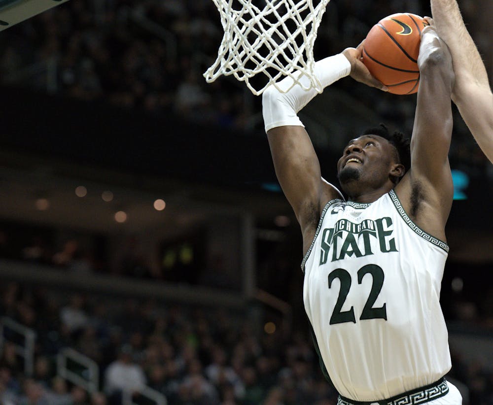 Spartan center Mady Sissoko dunks the ball into the basket during the game versus Northwestern on Dec. 4, 2022.