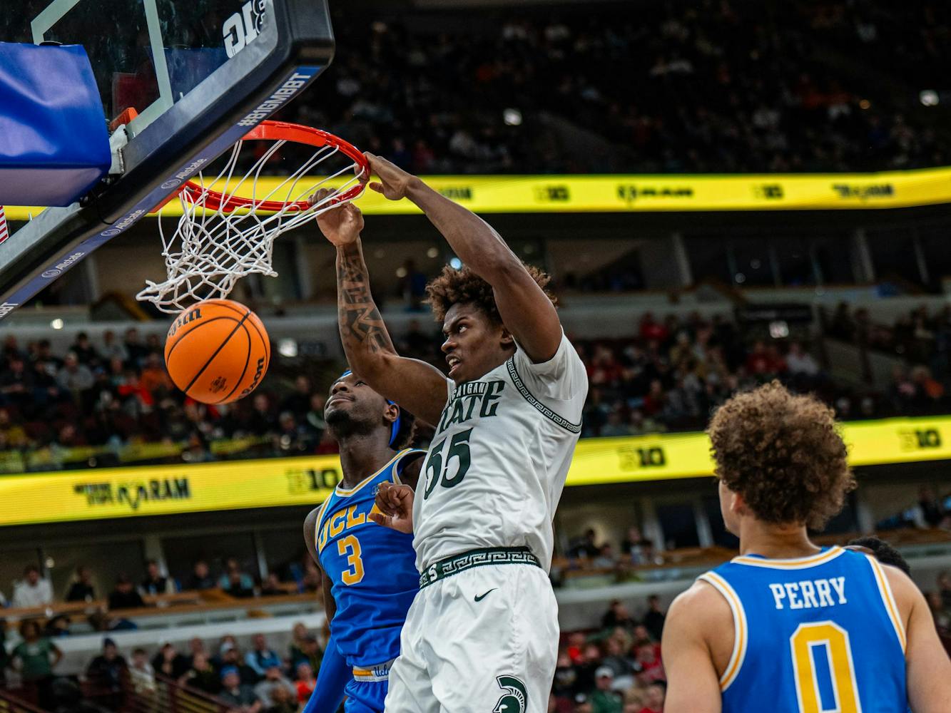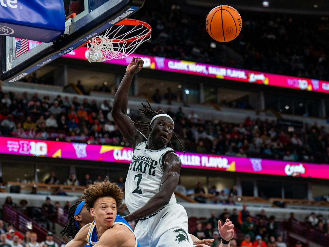Michigan State played in Game 14 against UCLA in the Big Ten men's basketball Tournament and lost in an upset, 88-84, on Friday, March 13, 2026.