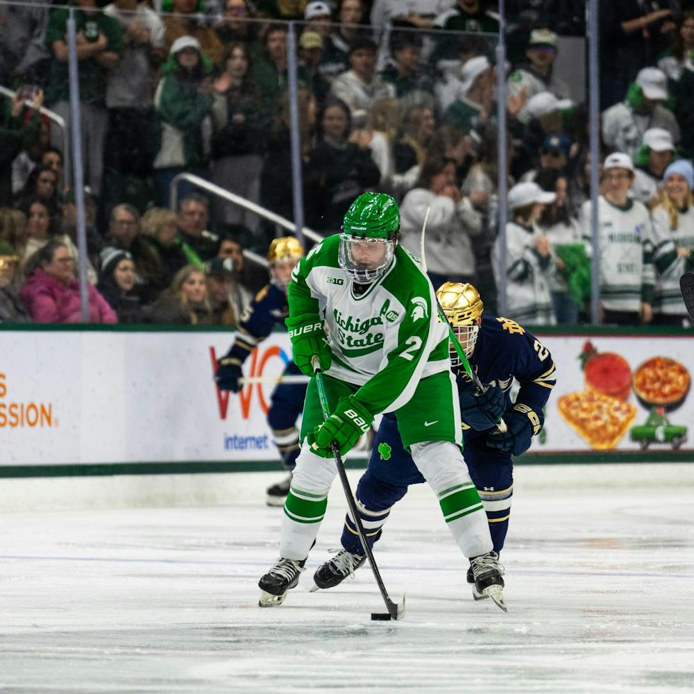 MSU's hockey team fought a tough battle with Notre Dame throughout the night, dominating a 4-2 victory at Munn Ice Arena in East Lansing, MI on Thursday, Feb. 19, 2026.