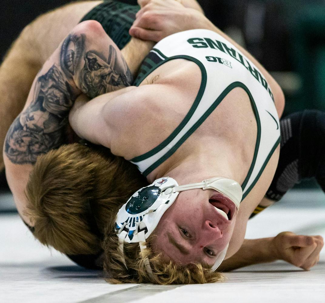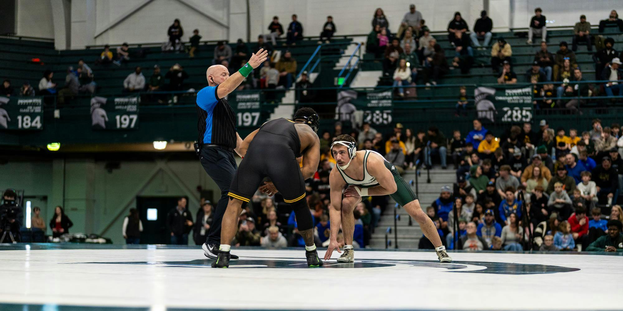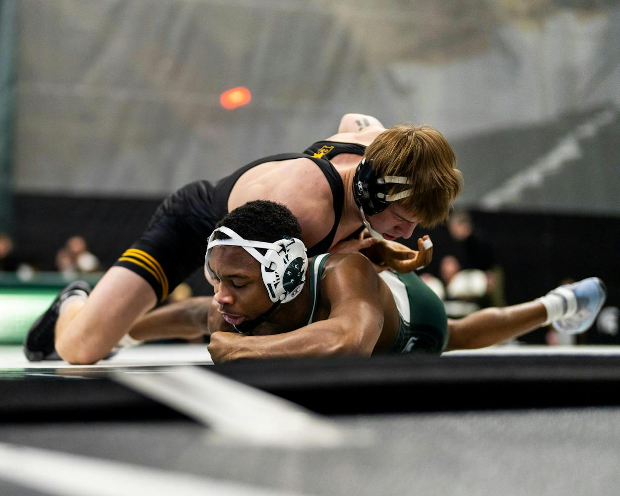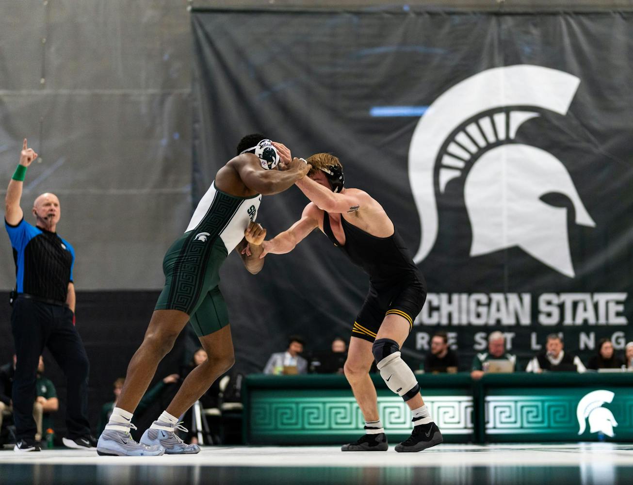 MSU wrestling gets destroyed by Iowa in a home meet at the Jenison Field House on Feb. 8, 2026. Coming away with only one winner by default due to a forfeit by Iowa for that weight class.