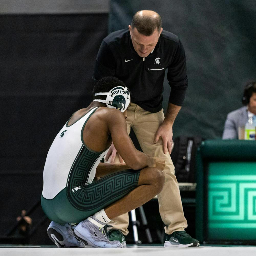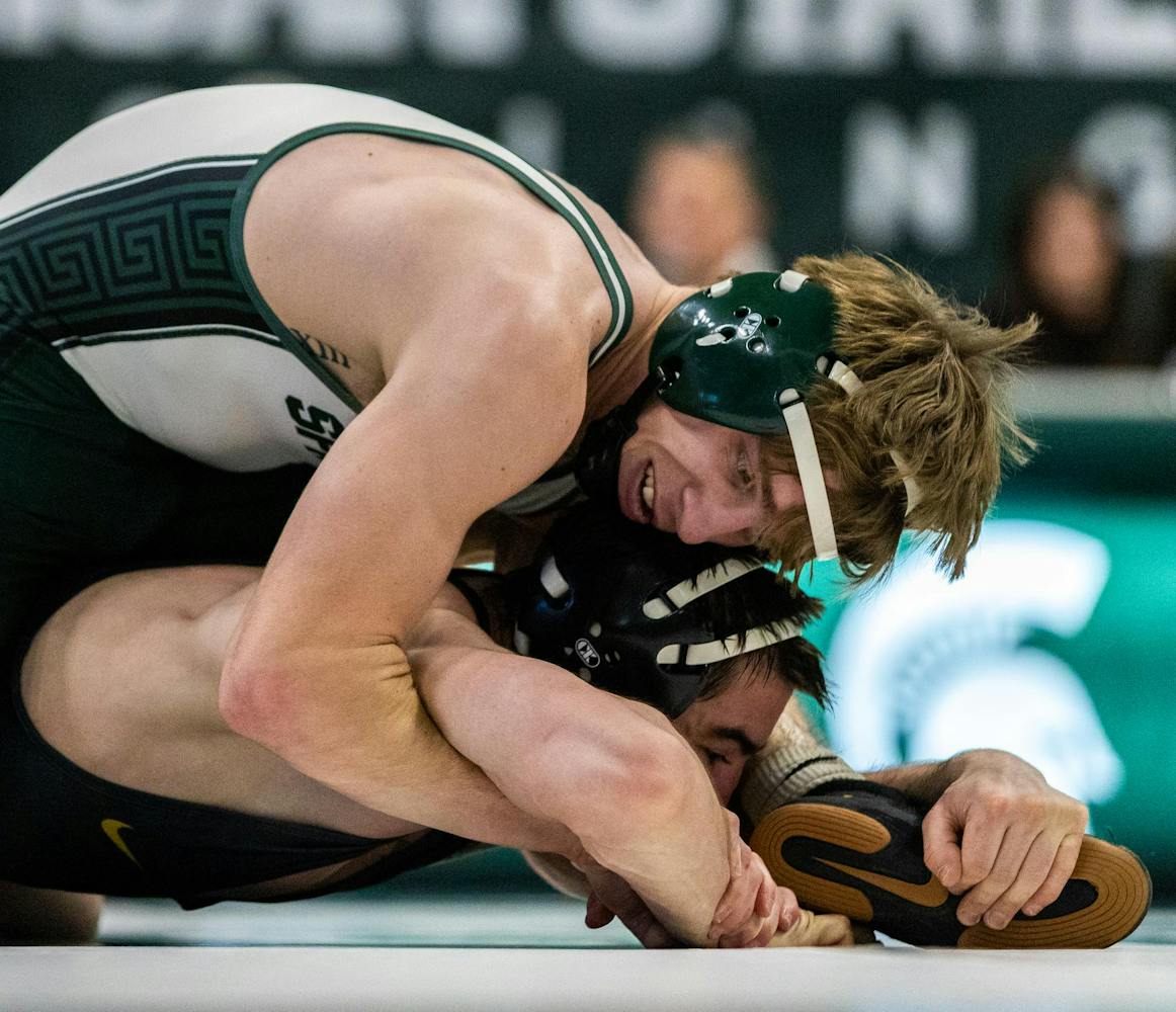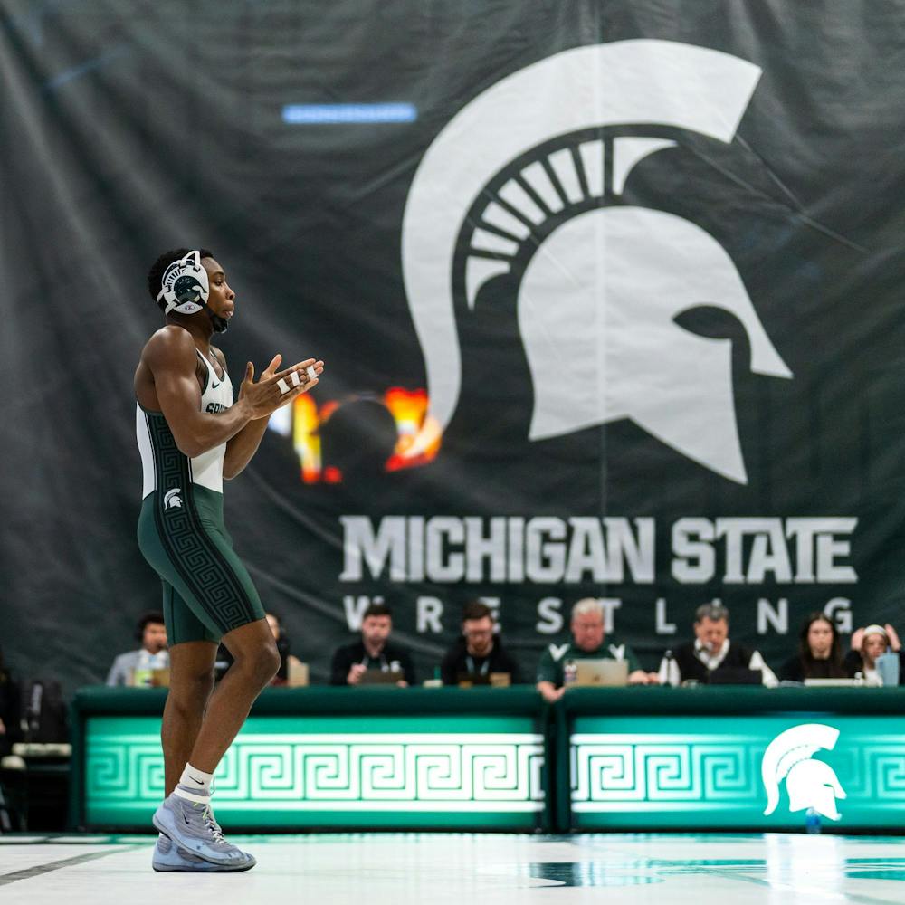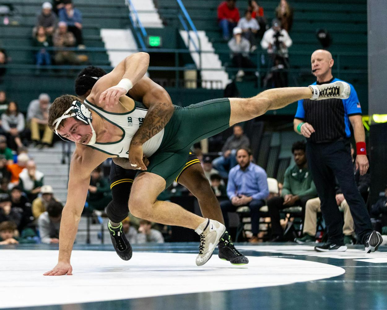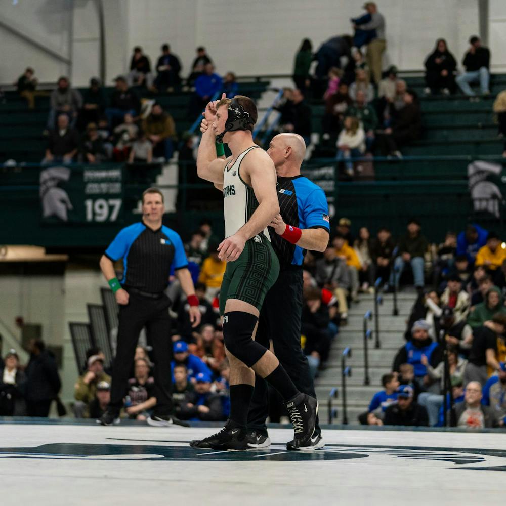 MSU wrestling gets destroyed by Iowa in a home meet at the Jenison Field House on Feb. 8, 2026. Coming away with only one winner by default due to a forfeit by Iowa for that weight class.