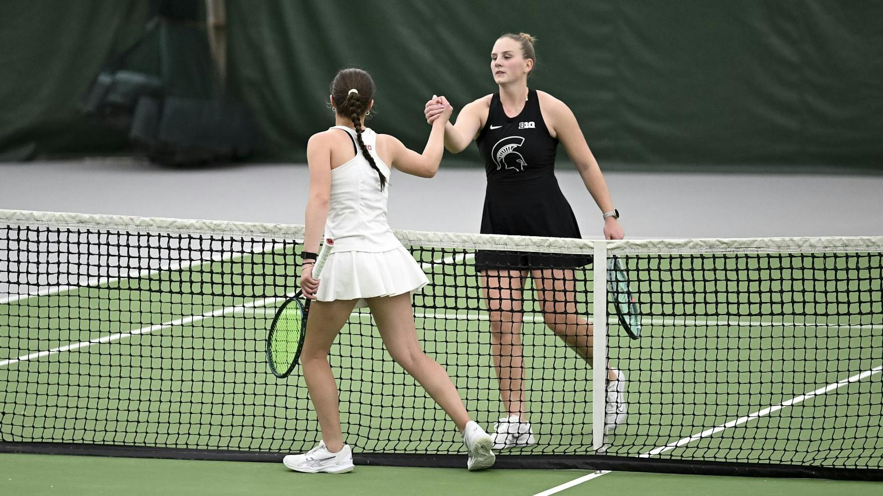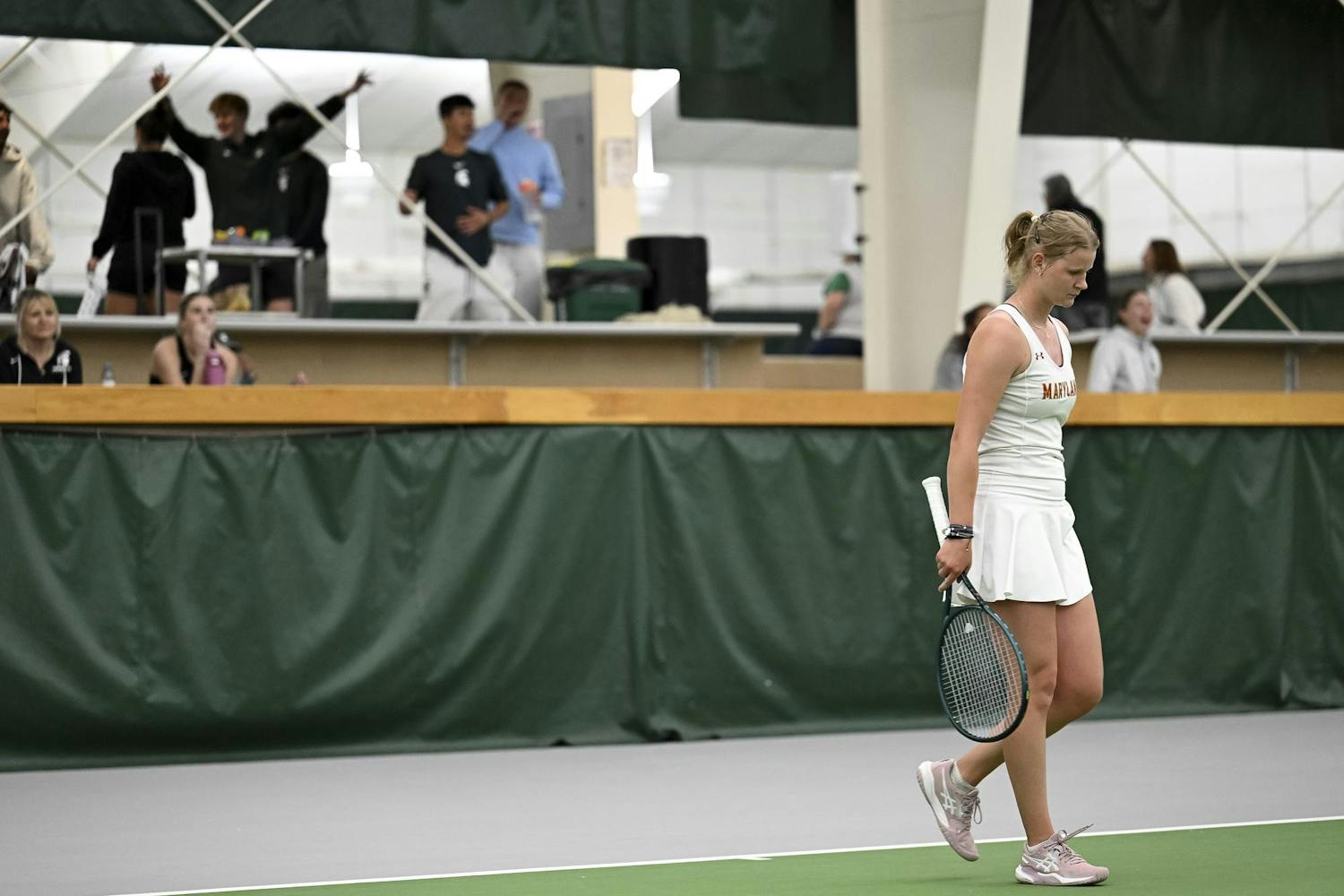 Michigan State battled Maryland on Sunday, April 12, 2026, at the MSU Tennis Complex. Several courts came down to intense head-to-head points before Maryland secured the 4-1 win.