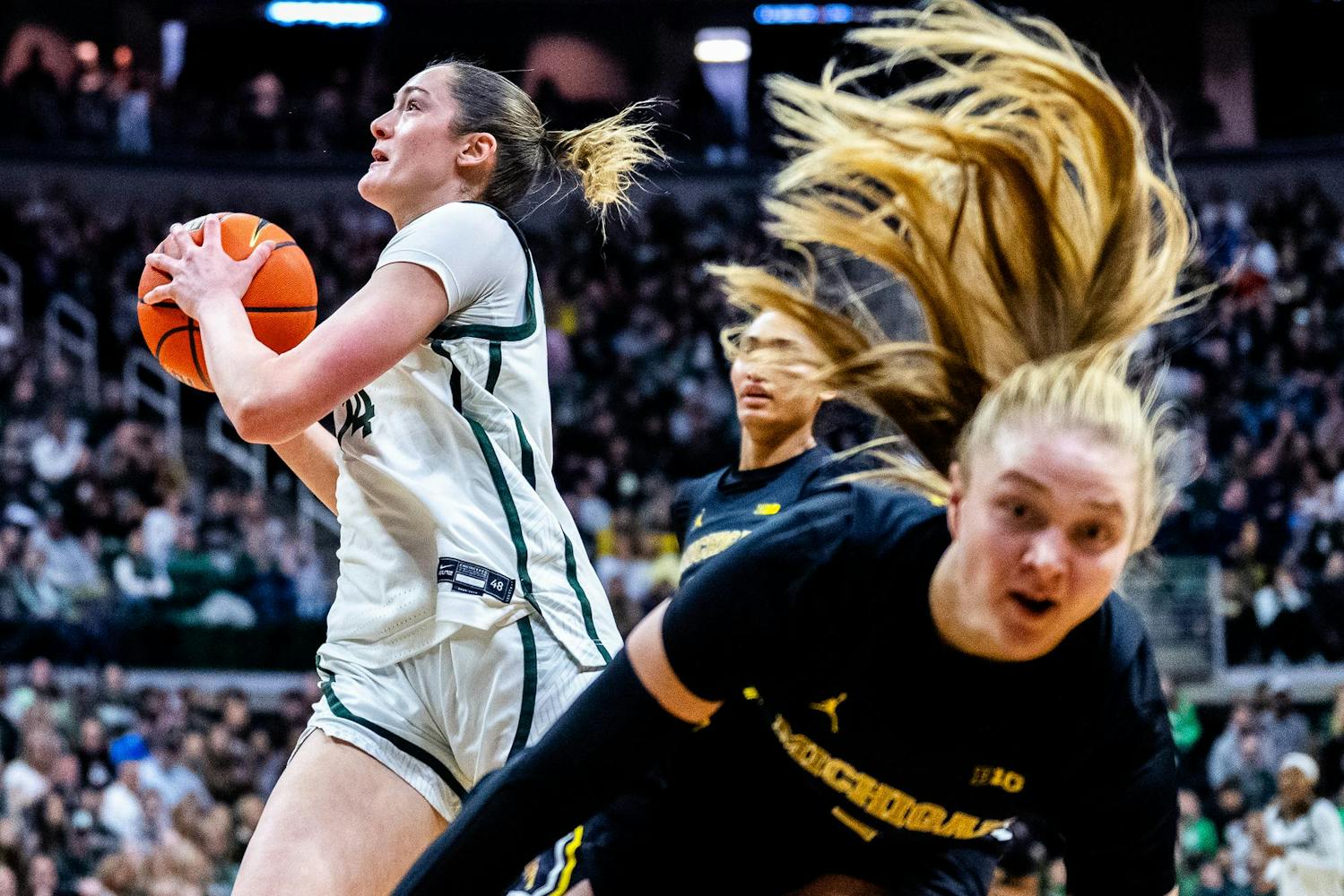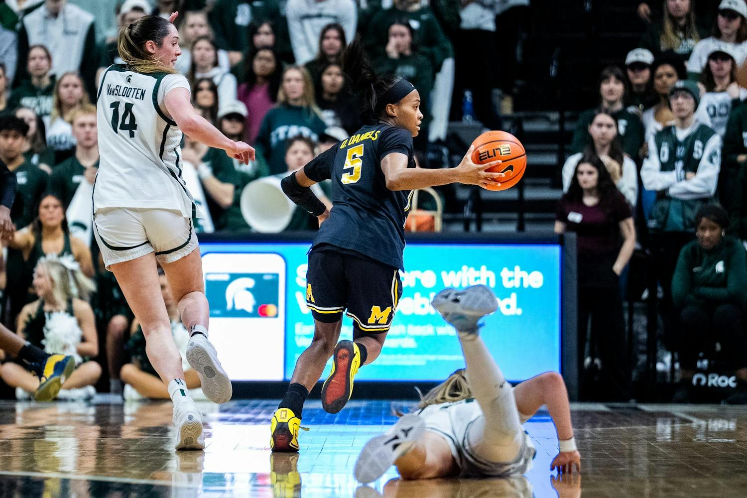 Seventeen lead changes, 13 ties and an overtime finish defined a rivalry classic between the Michigan Wolverines and the Michigan State Spartans at the Breslin Center in East Lansing. The back-and-forth battle stayed tight through all four quarters before Michigan pulled ahead in overtime, defeating Michigan State 94-91. Both teams traded momentum throughout the night, delivering everything expected from one of college basketball’s fiercest rivalries.