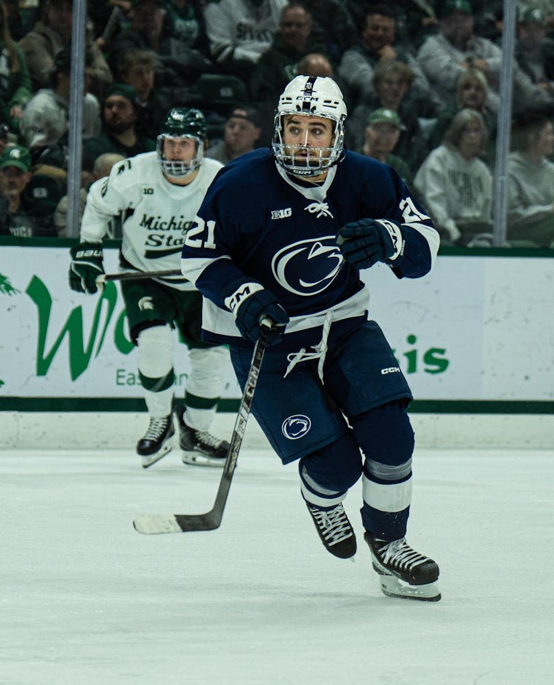 Michigan State hockey earned a 2-1 victory over Penn State at Munn Ice Arena in East Lansing, Michigan on Nov. 7, 2025.