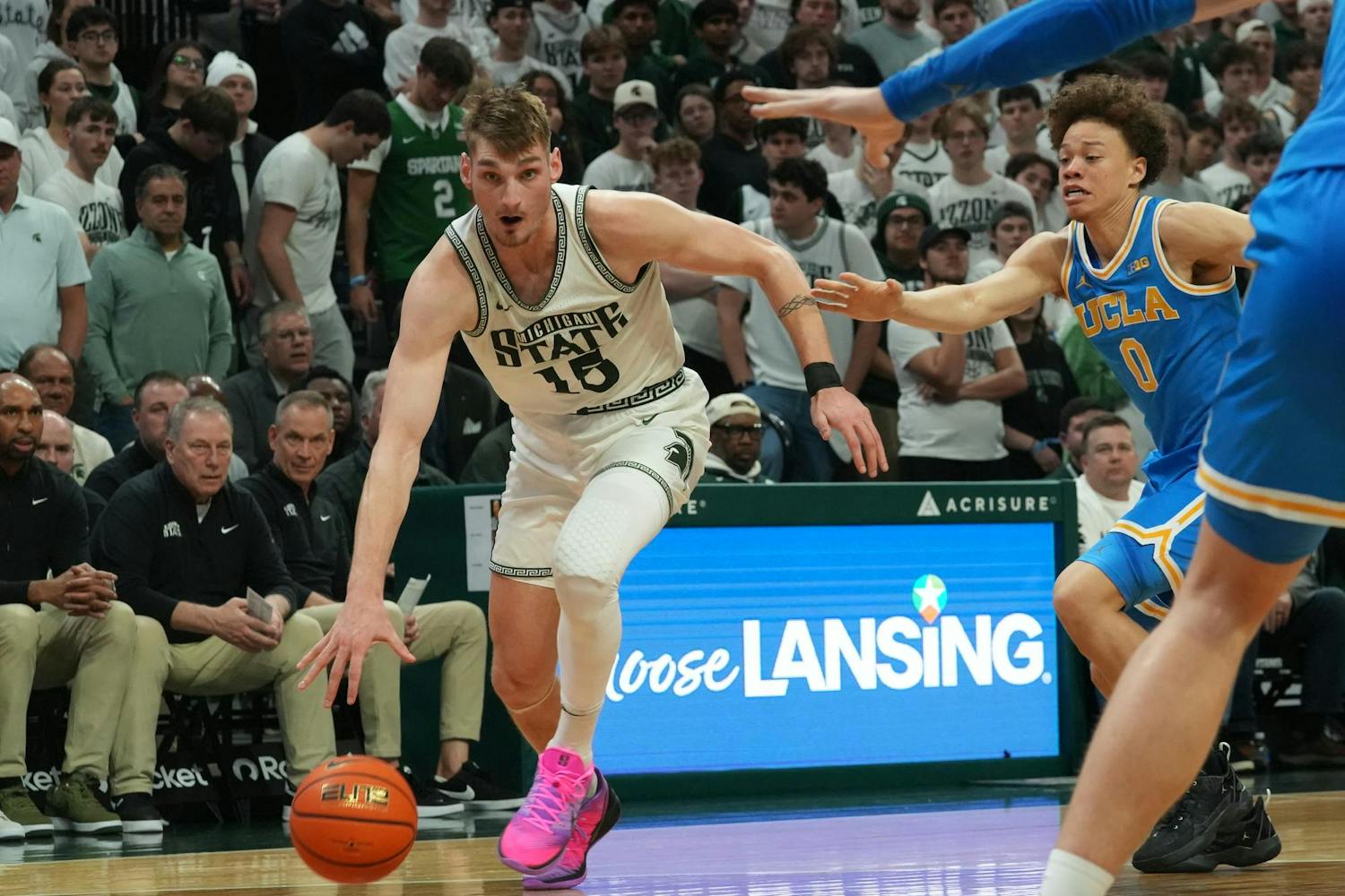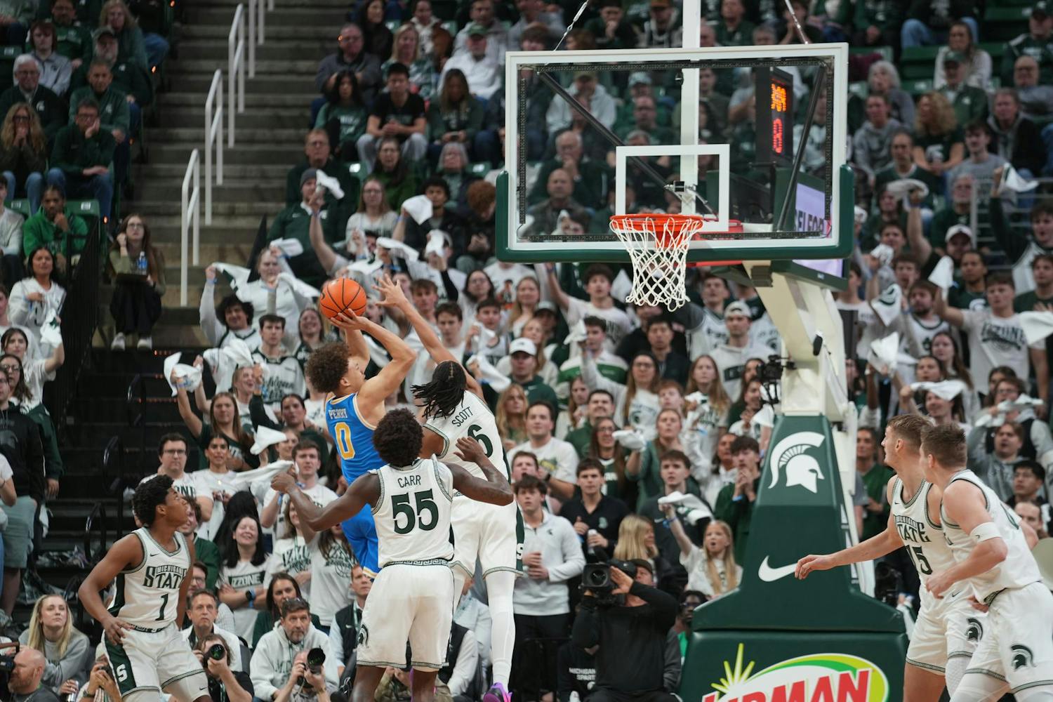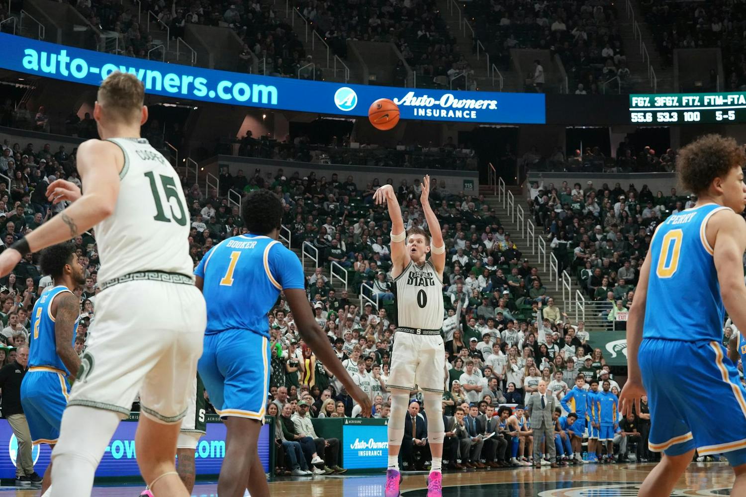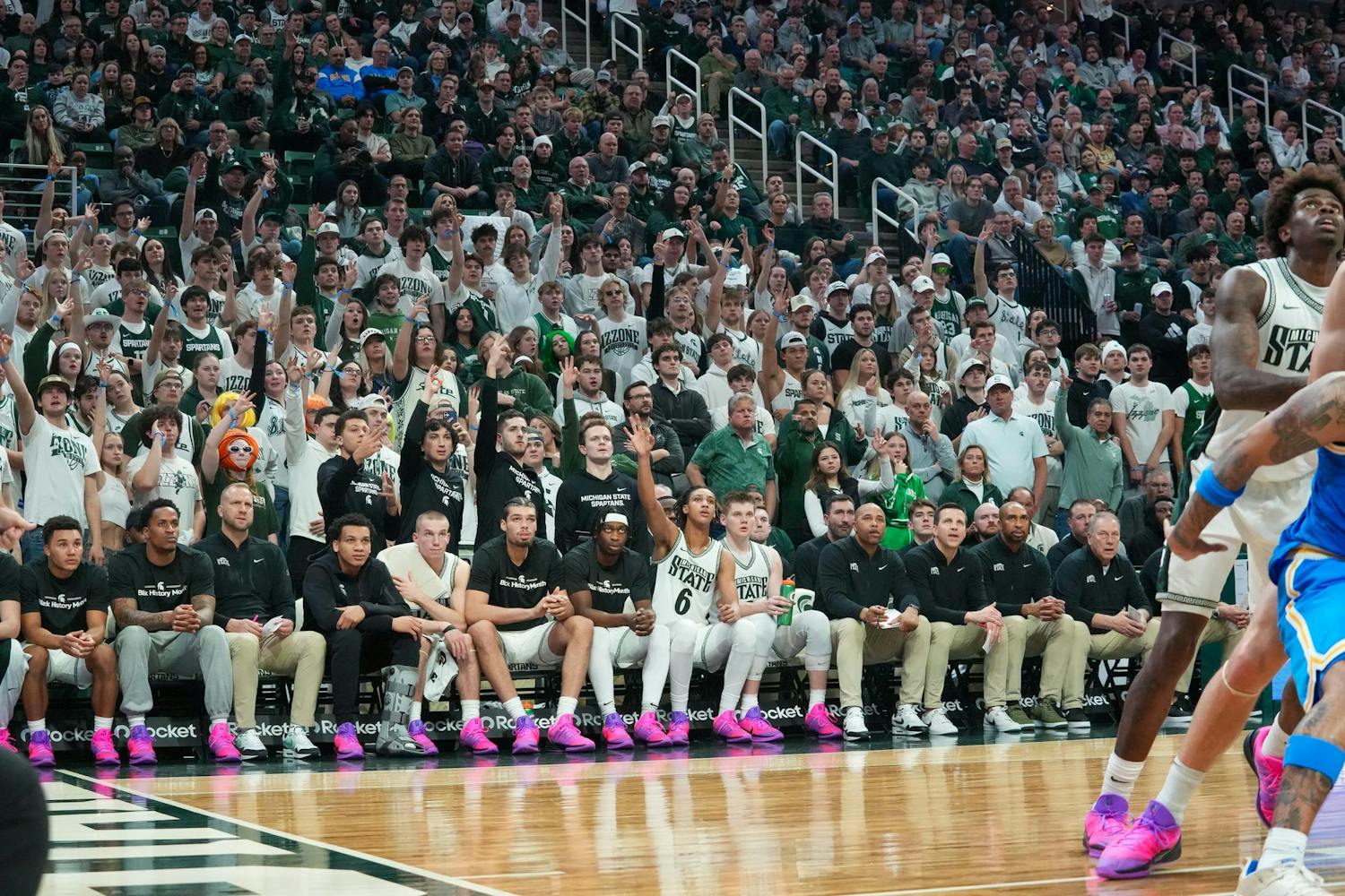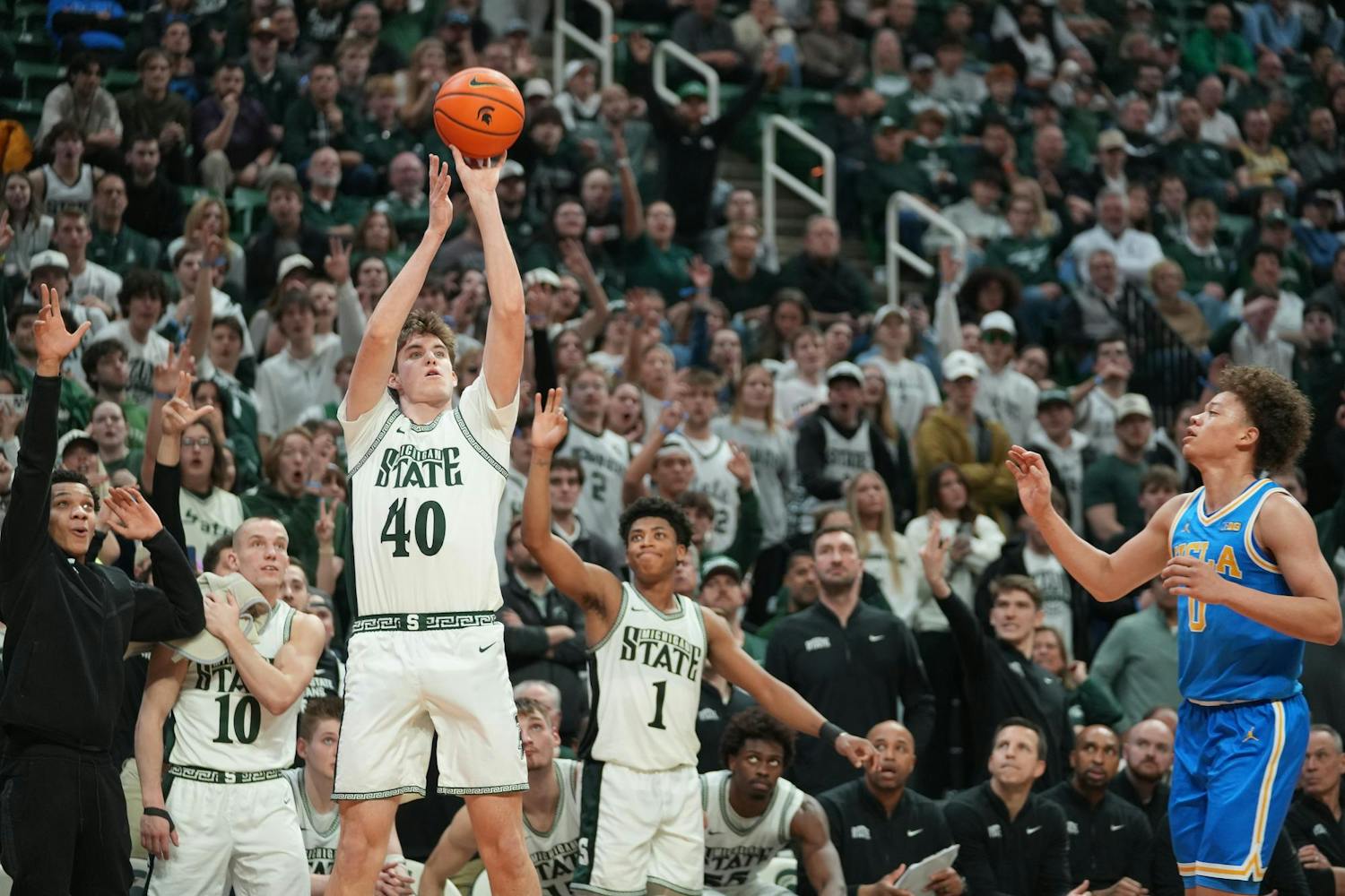 Michigan State University men's basketball beats UCLA at the Breslin Center in East Lansing, Michigan, on Tuesday, Feb. 17, 2026. They dominated on defense and shot 52.7% from three en route to a 23 point win.