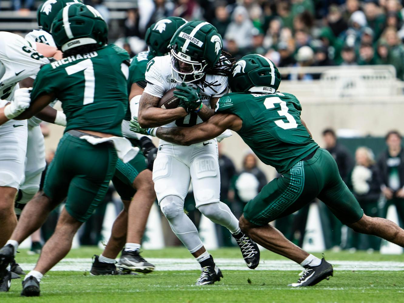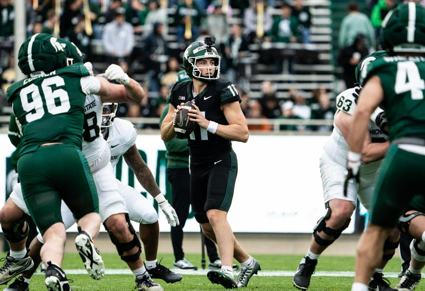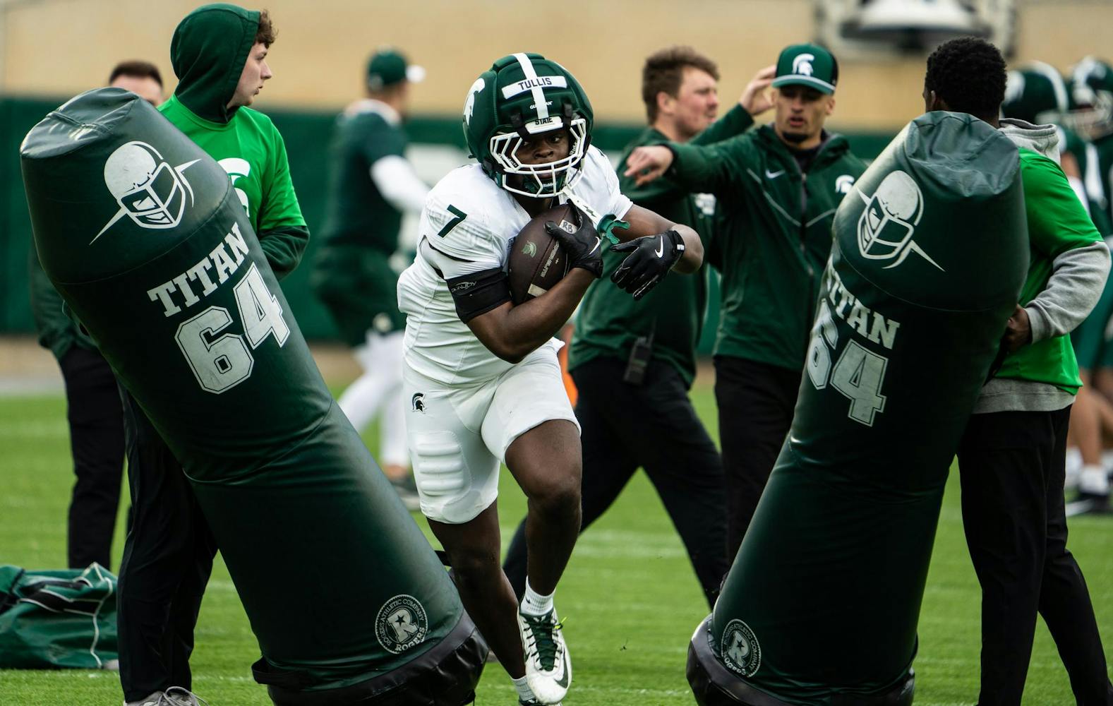 The Michigan State Spartans hosted their annual spring showcase giving fans the opportunity to watch practice drills in person and enjoy the “Green vs. White” game.