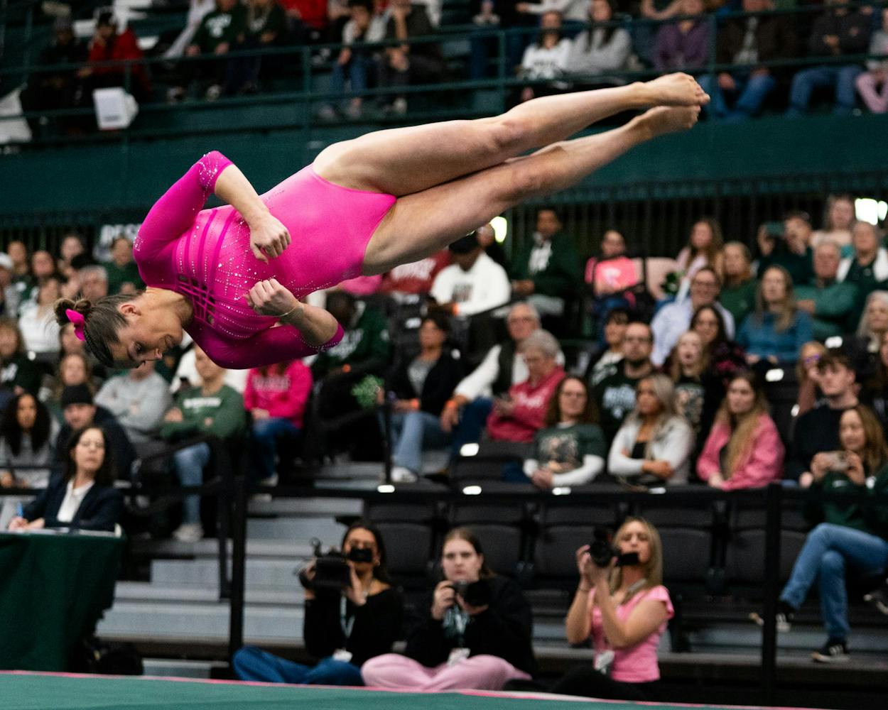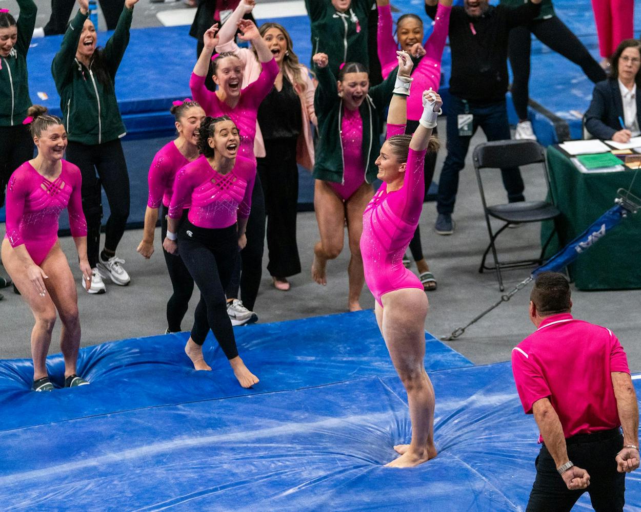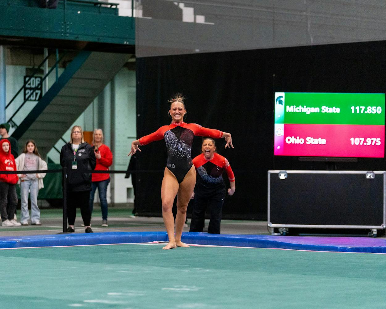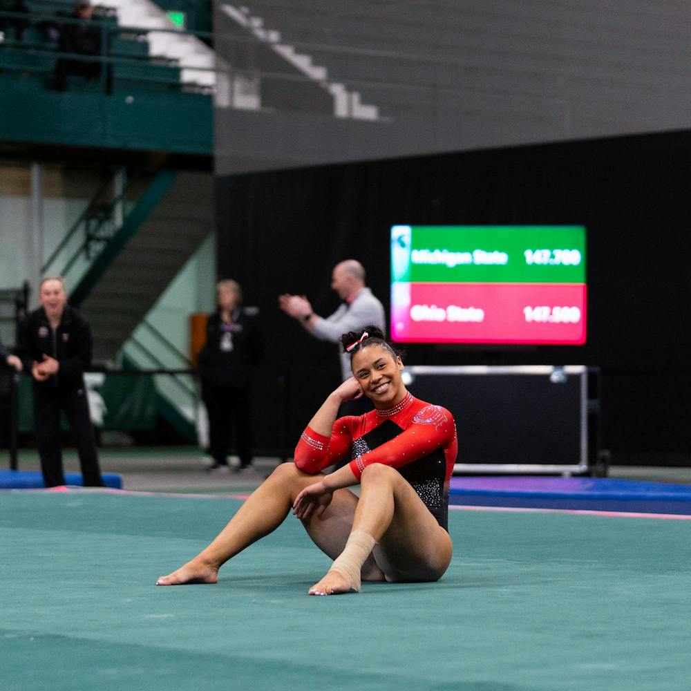 MSU gymnastics took a home meet win over Ohio State University on Feb. 21, 2026, 197.300-196.850.