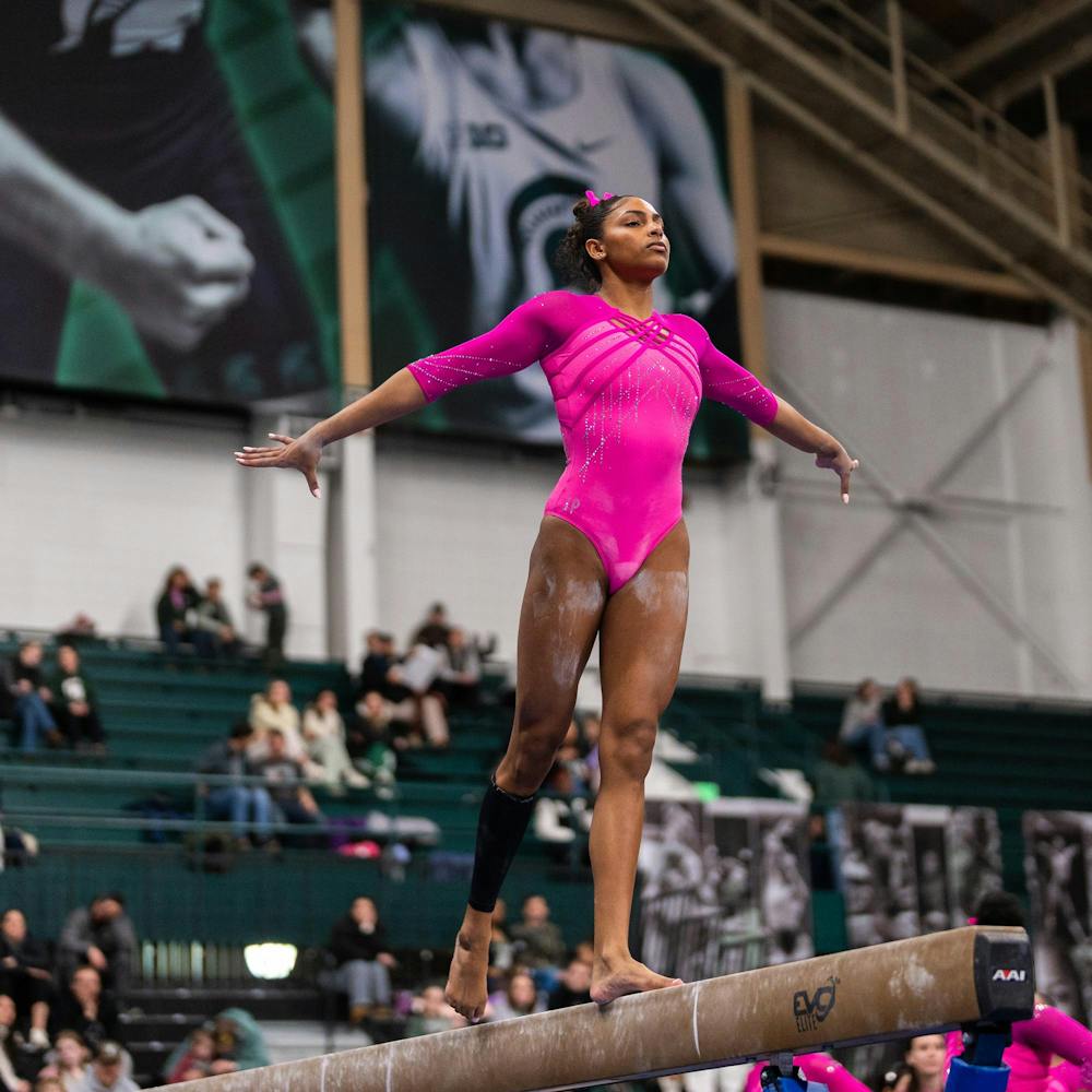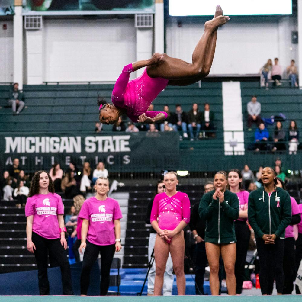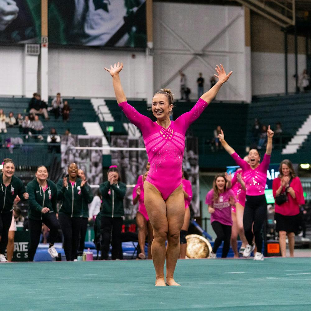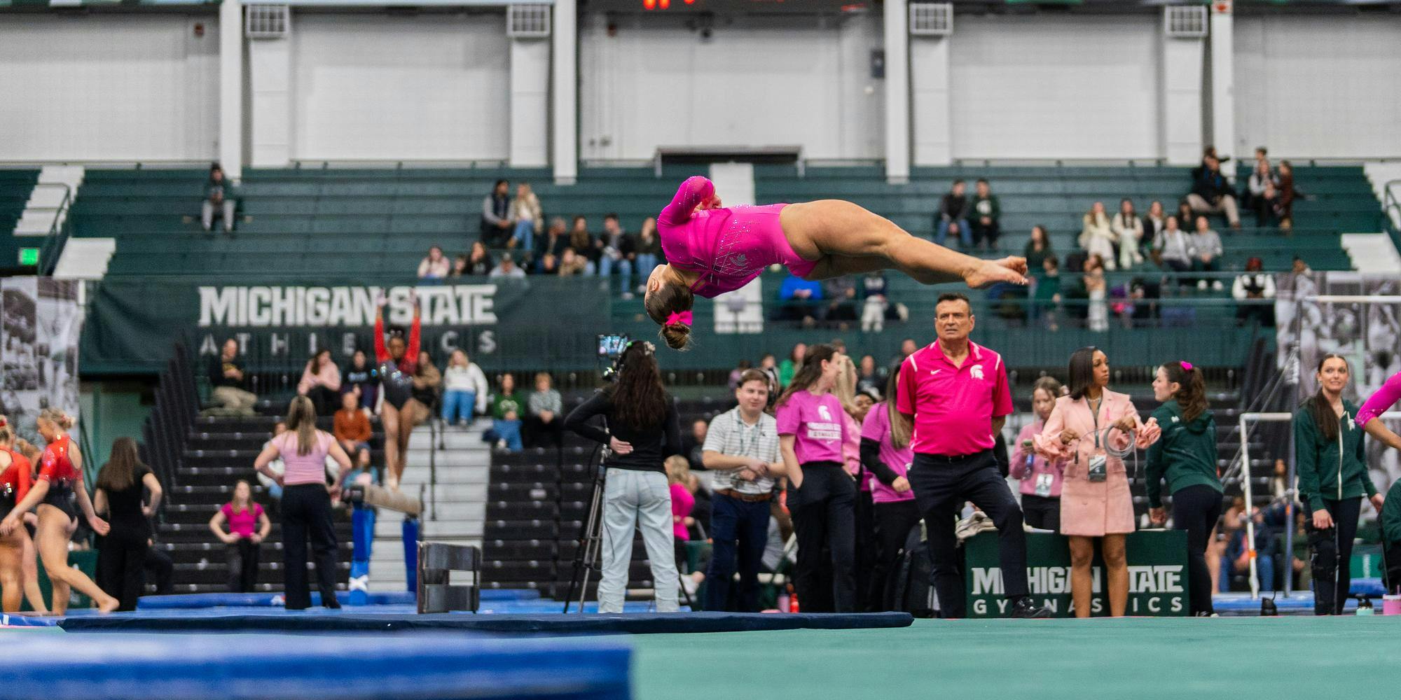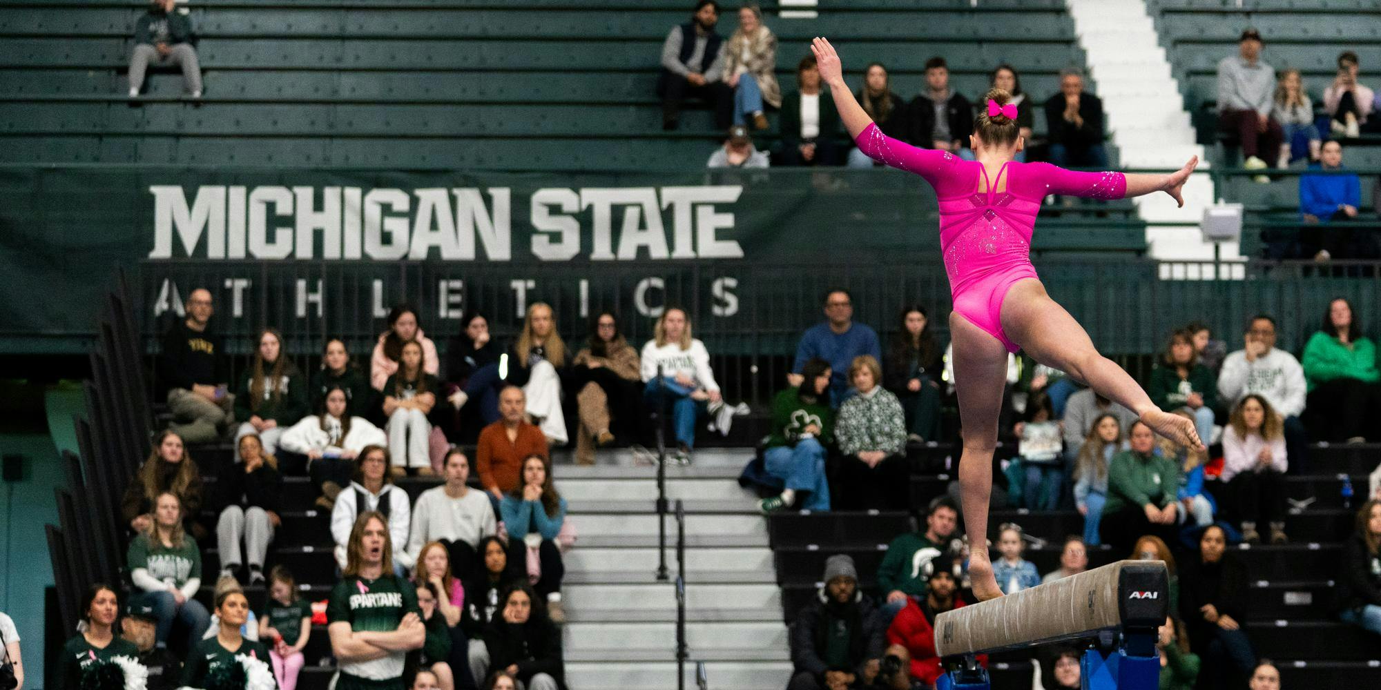 MSU gymnastics took a home meet win over Ohio State University on Feb. 21, 2026, 197.300-196.850.