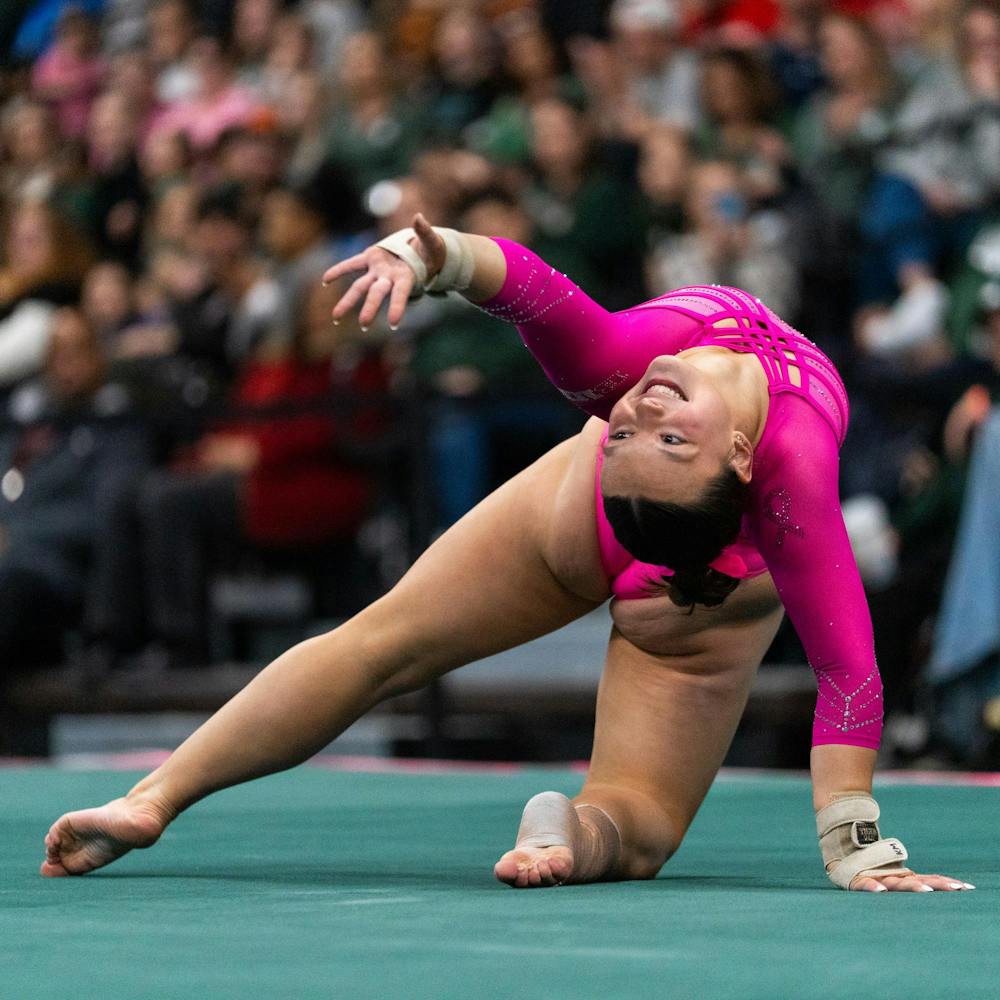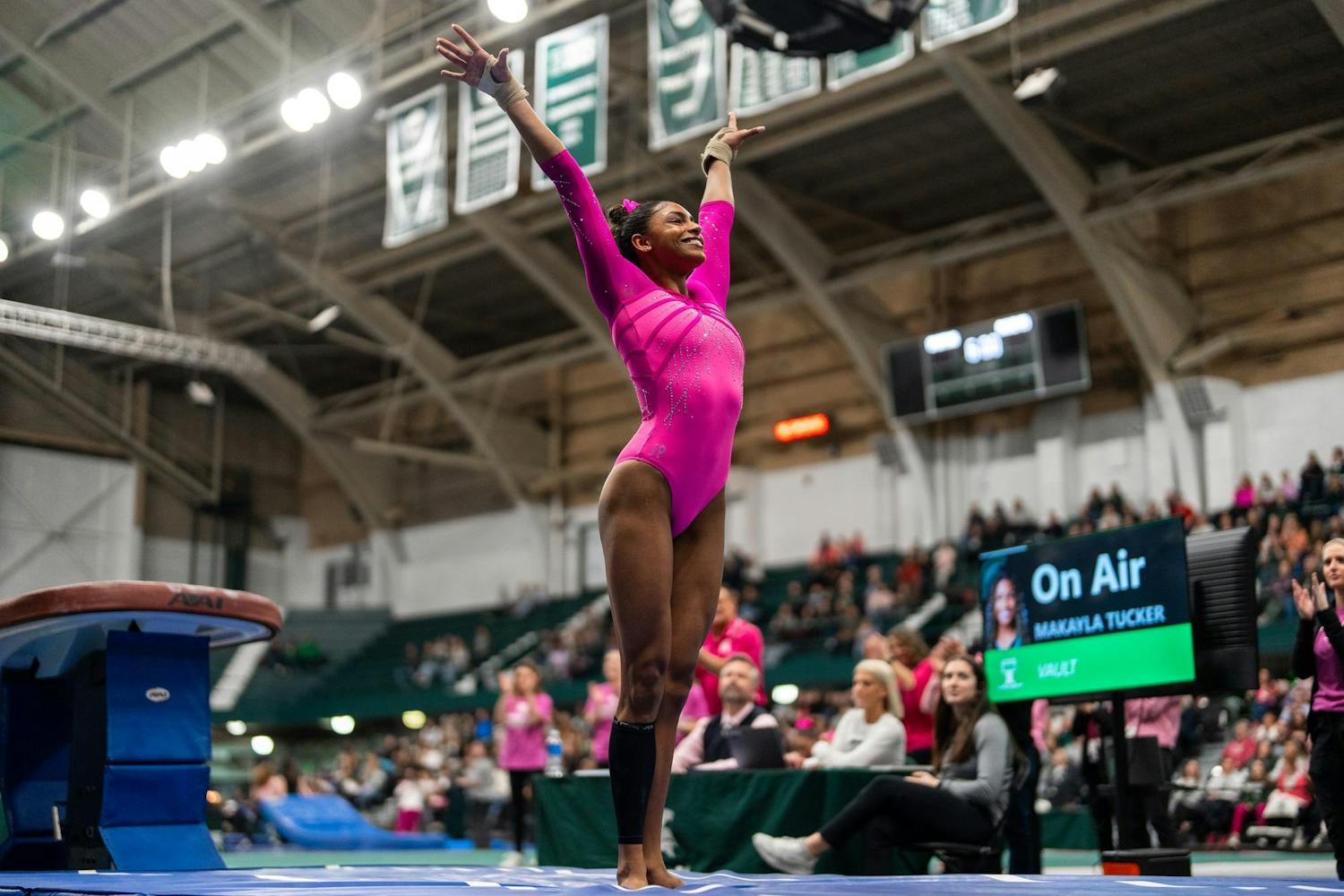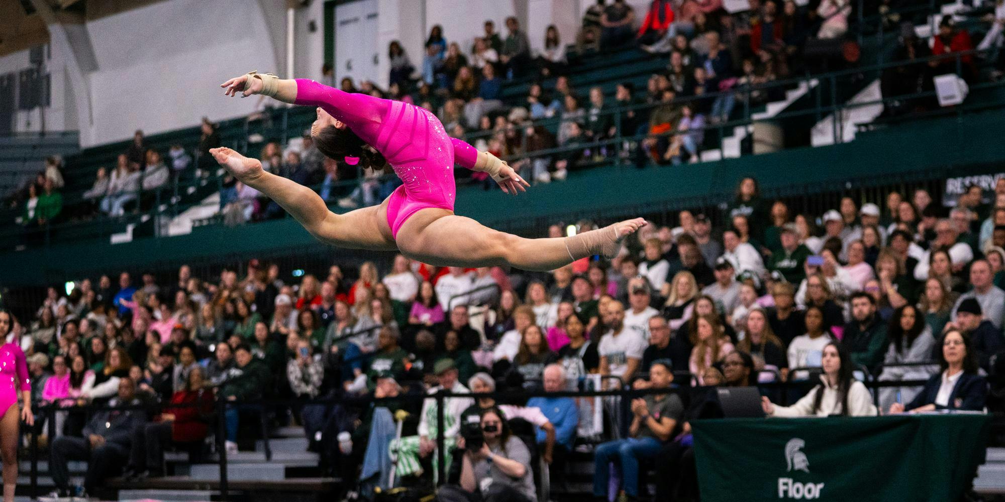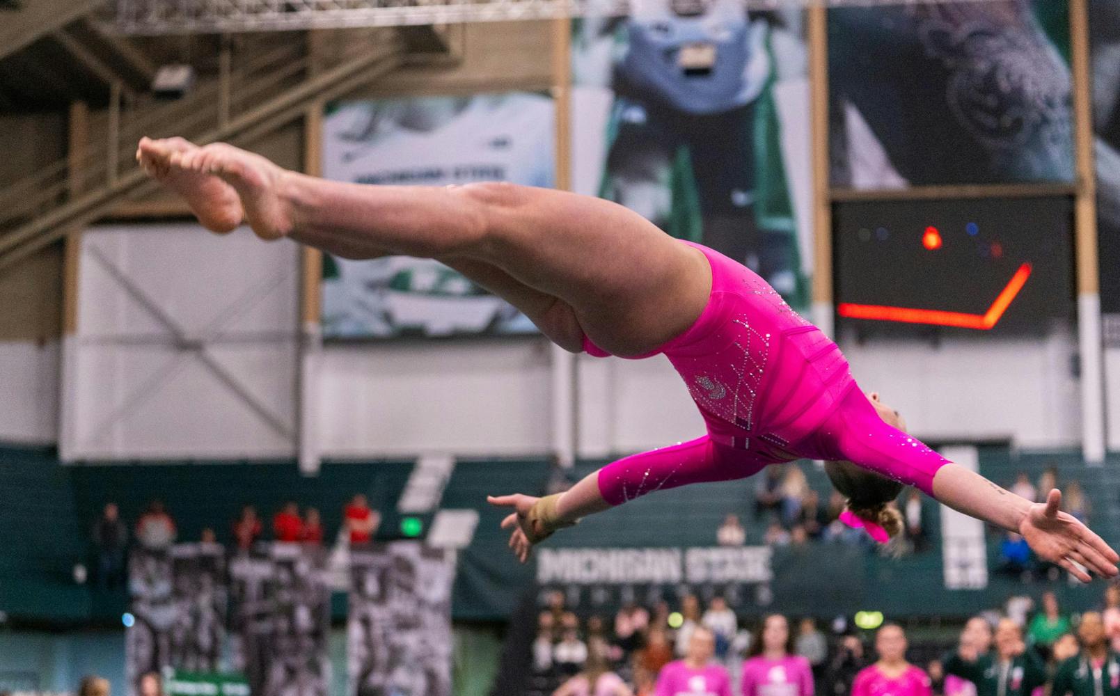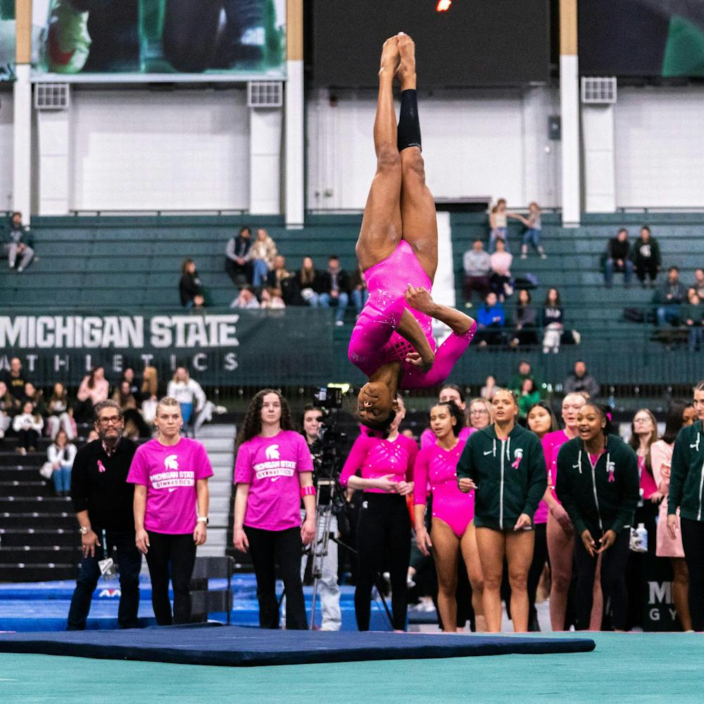 MSU gymnastics took a home meet win over Ohio State University on Feb. 21, 2026, 197.300-196.850.
