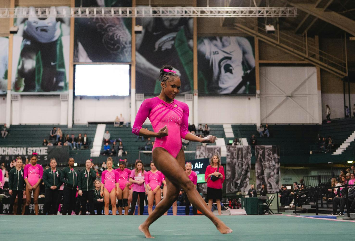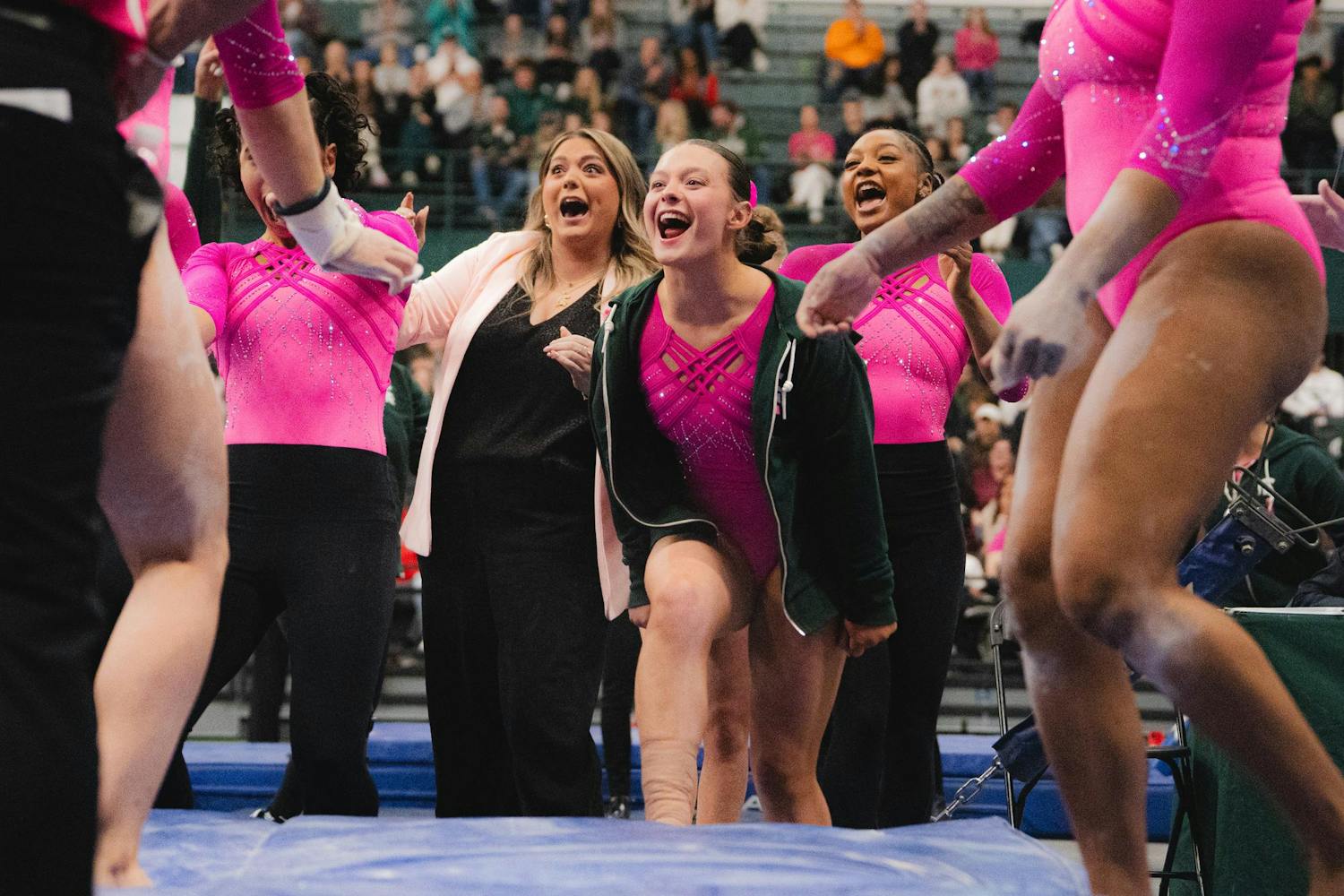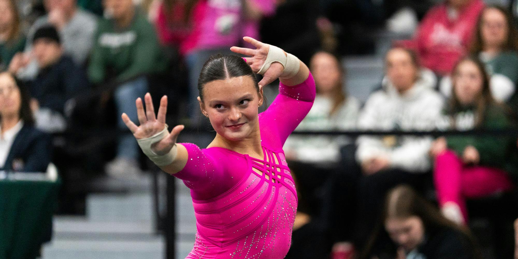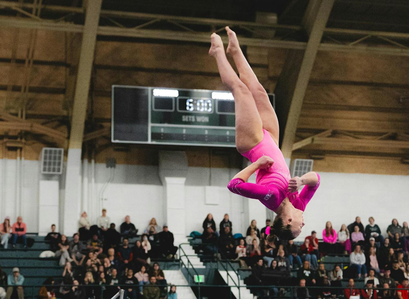 MSU gymnastics took a home meet win over Ohio State University on Feb. 21, 2026, 197.300-196.850.