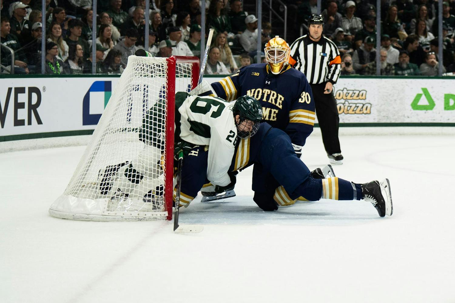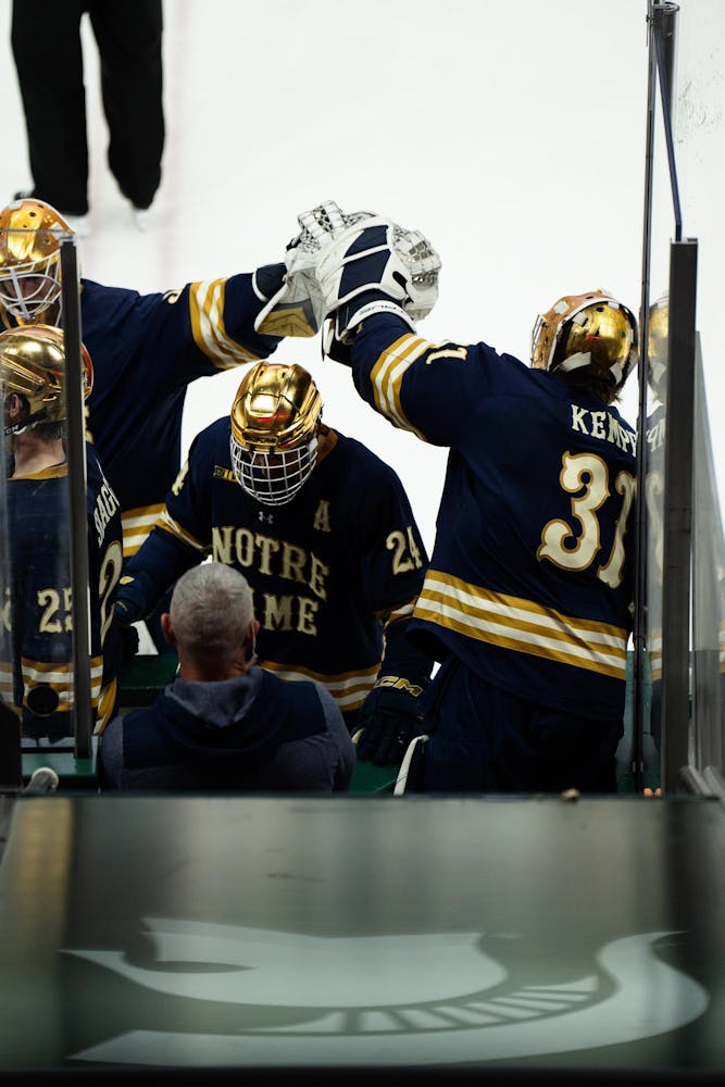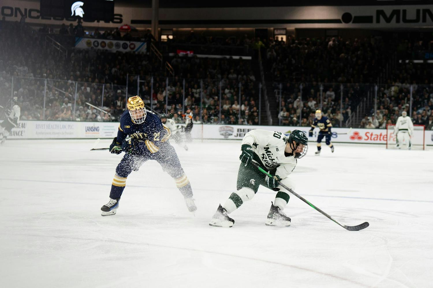 Michigan State men's ice hockey defeated Notre Dame 1-0 at Munn Ice Arena on March 15, 2025. The Spartans will host Ohio State for the Big Ten Championship next Saturday with hopes of winning the Big Ten tournament in back-to-back years for the first time in program history.