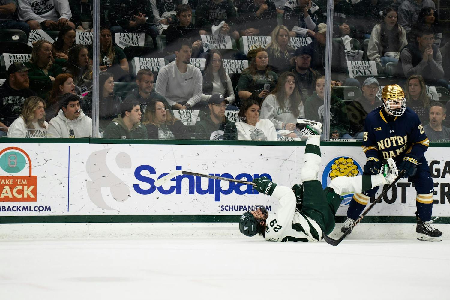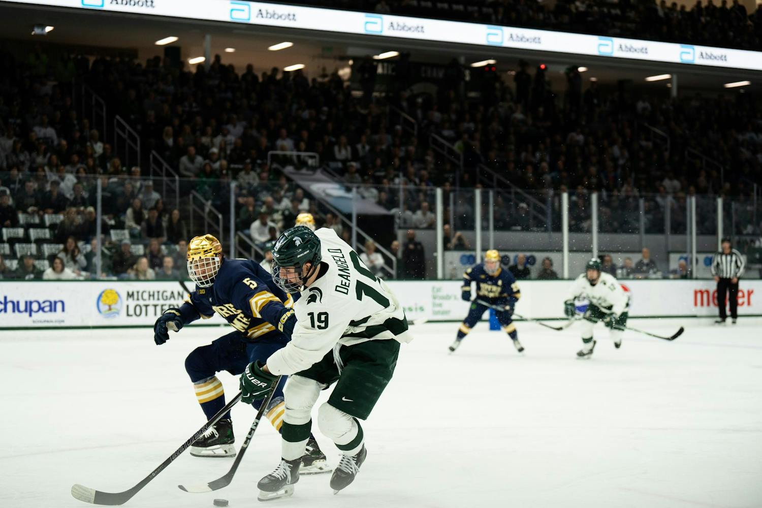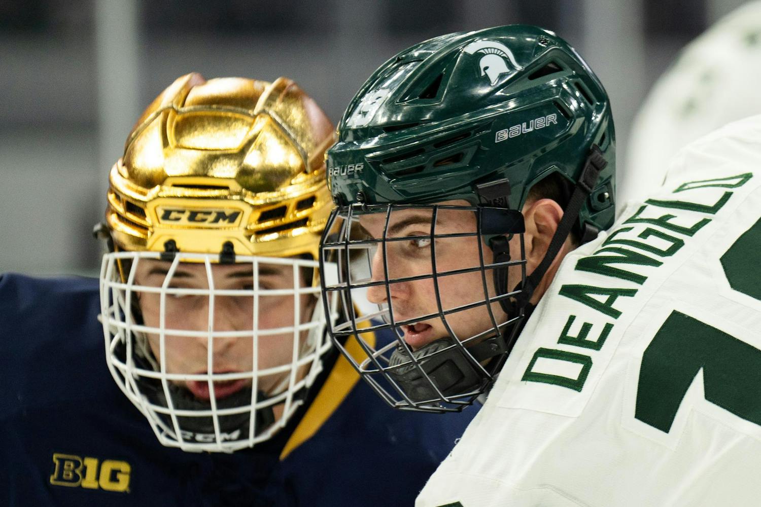 Michigan State men's ice hockey defeated Notre Dame 1-0 at Munn Ice Arena on March 15, 2025. The Spartans will host Ohio State for the Big Ten Championship next Saturday with hopes of winning the Big Ten tournament in back-to-back years for the first time in program history.
