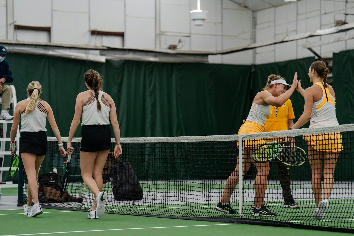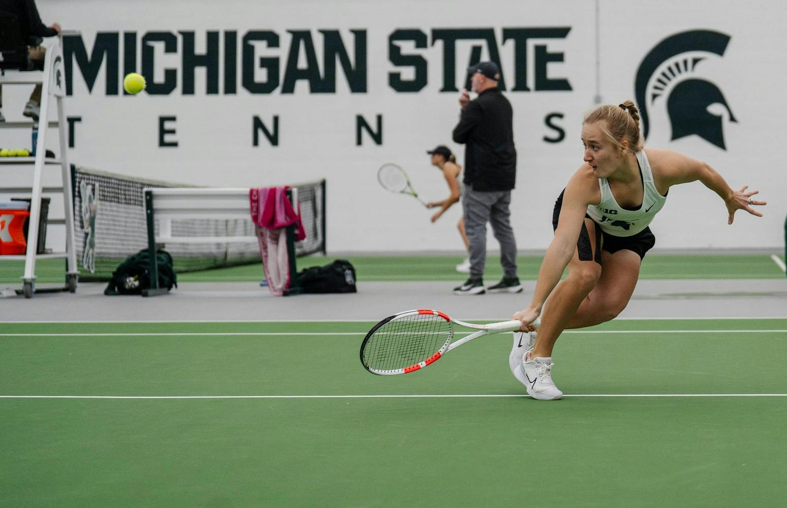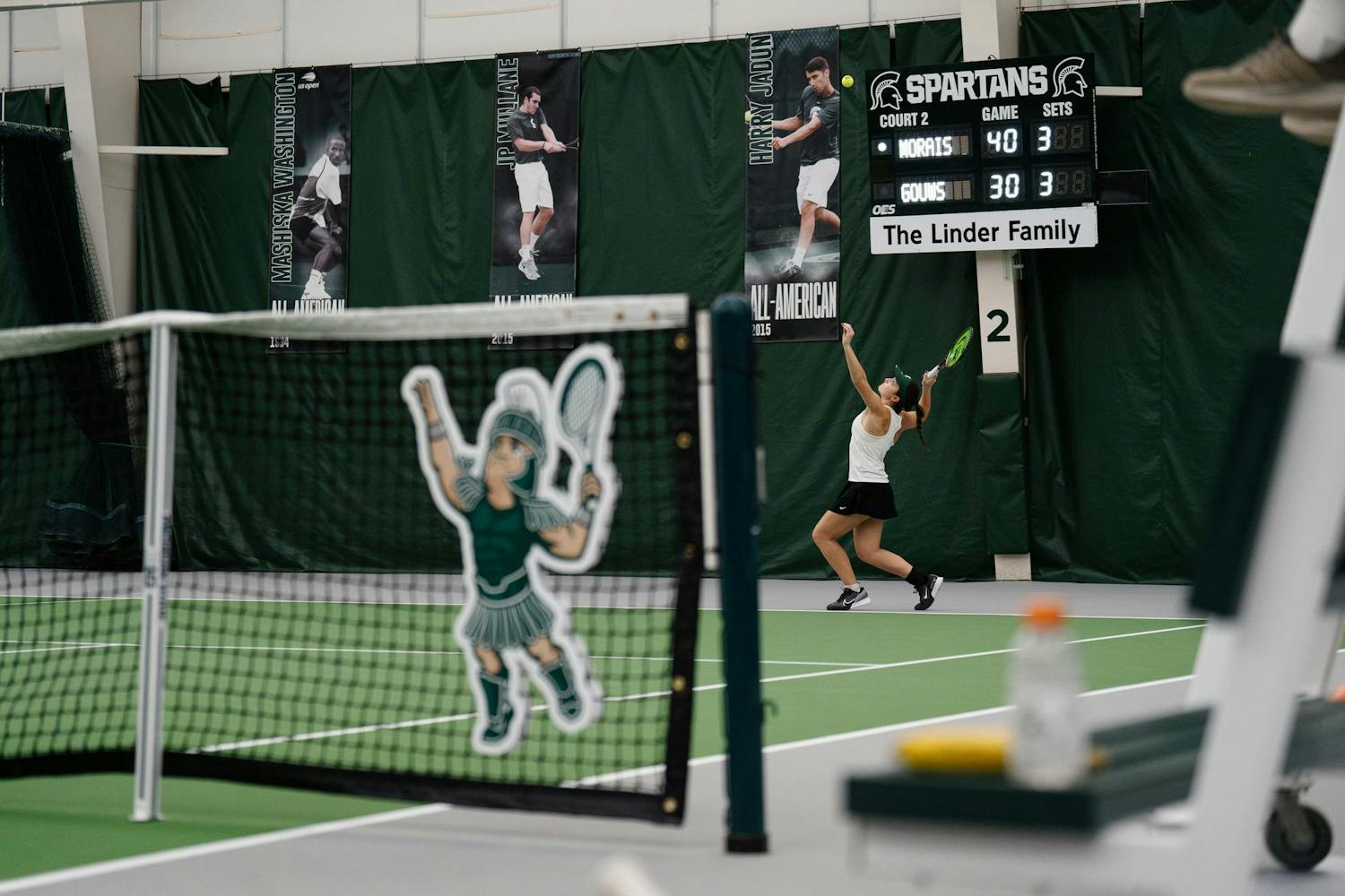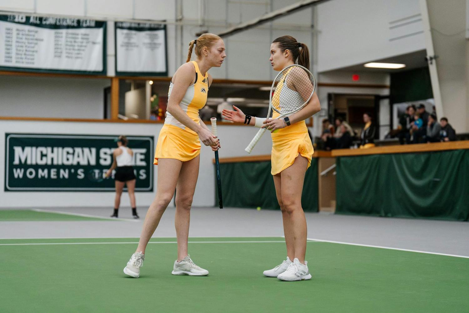 The Michigan State women's tennis team competed in a doubleheader against Western Michigan and Eastern Michigan at the MSU Tennis Center on Feb. 2, 2025. The Spartans won 4-1 against Western before defeating Eastern 4-0.