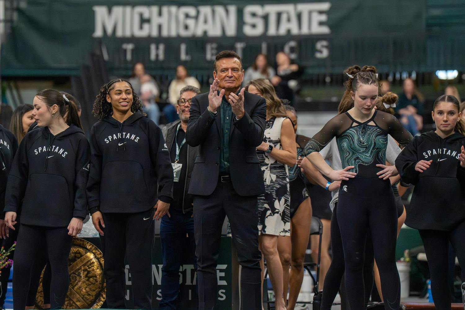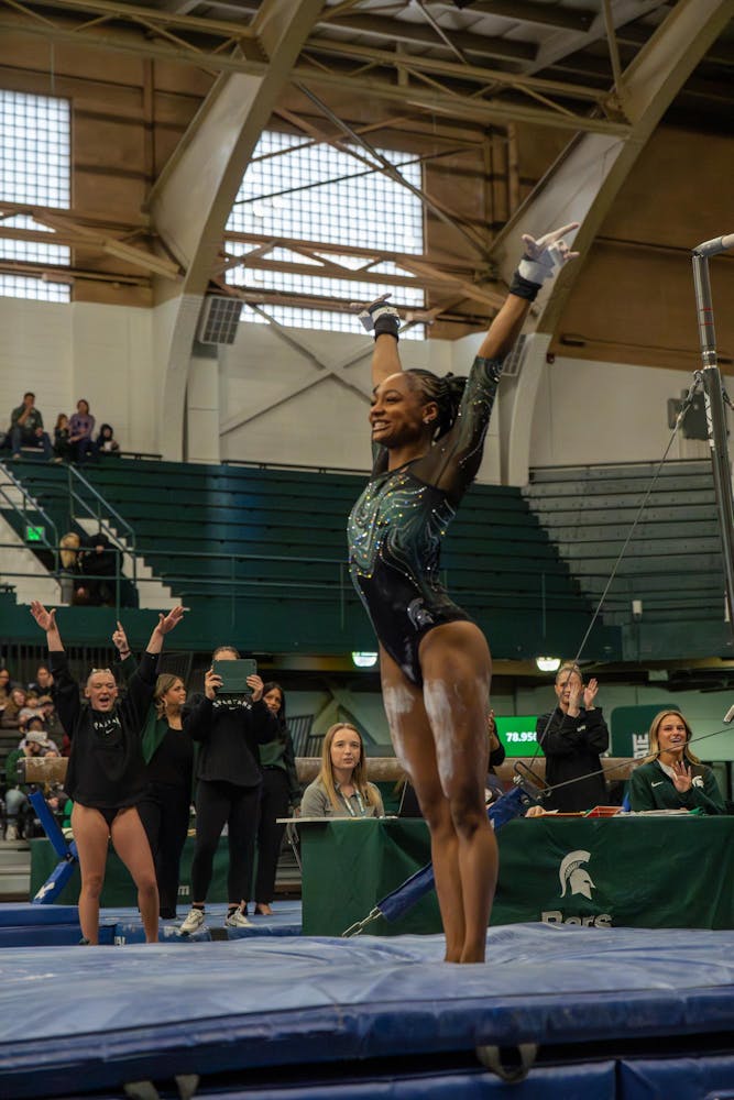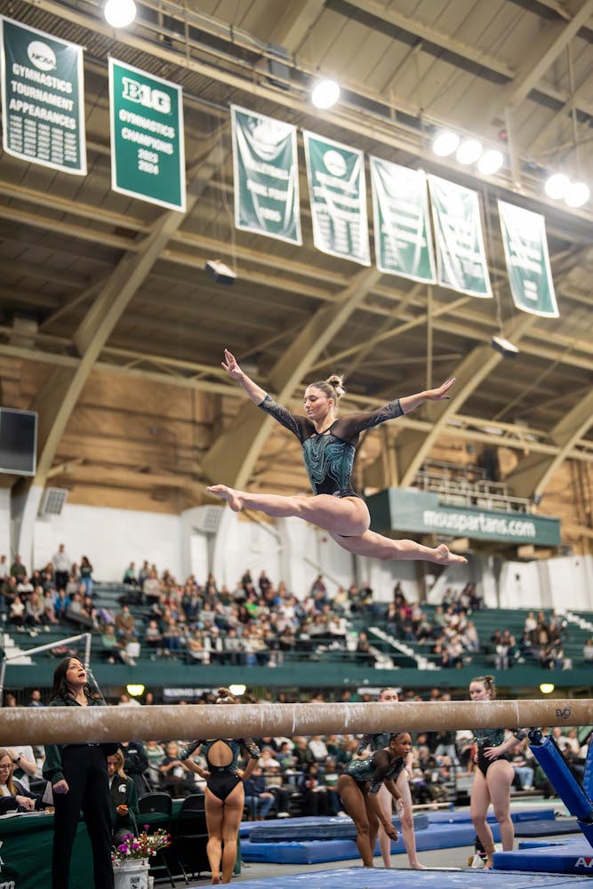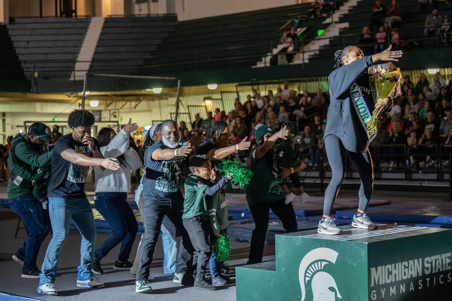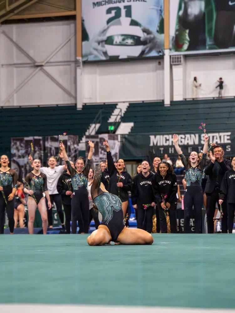 Michigan State gymnastics hosted Brown University for its Senior Night meet at Jenison Field House in East Lansing, Mich., on Sunday, March 15, 2026. The night honored Spartan seniors while the team competed across vault, uneven bars, balance beam and floor, highlighted by strong routines and celebrations with teammates and family.