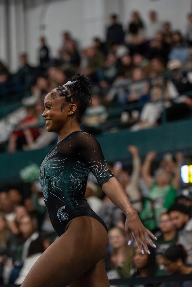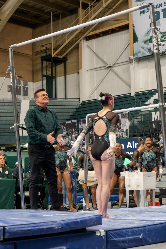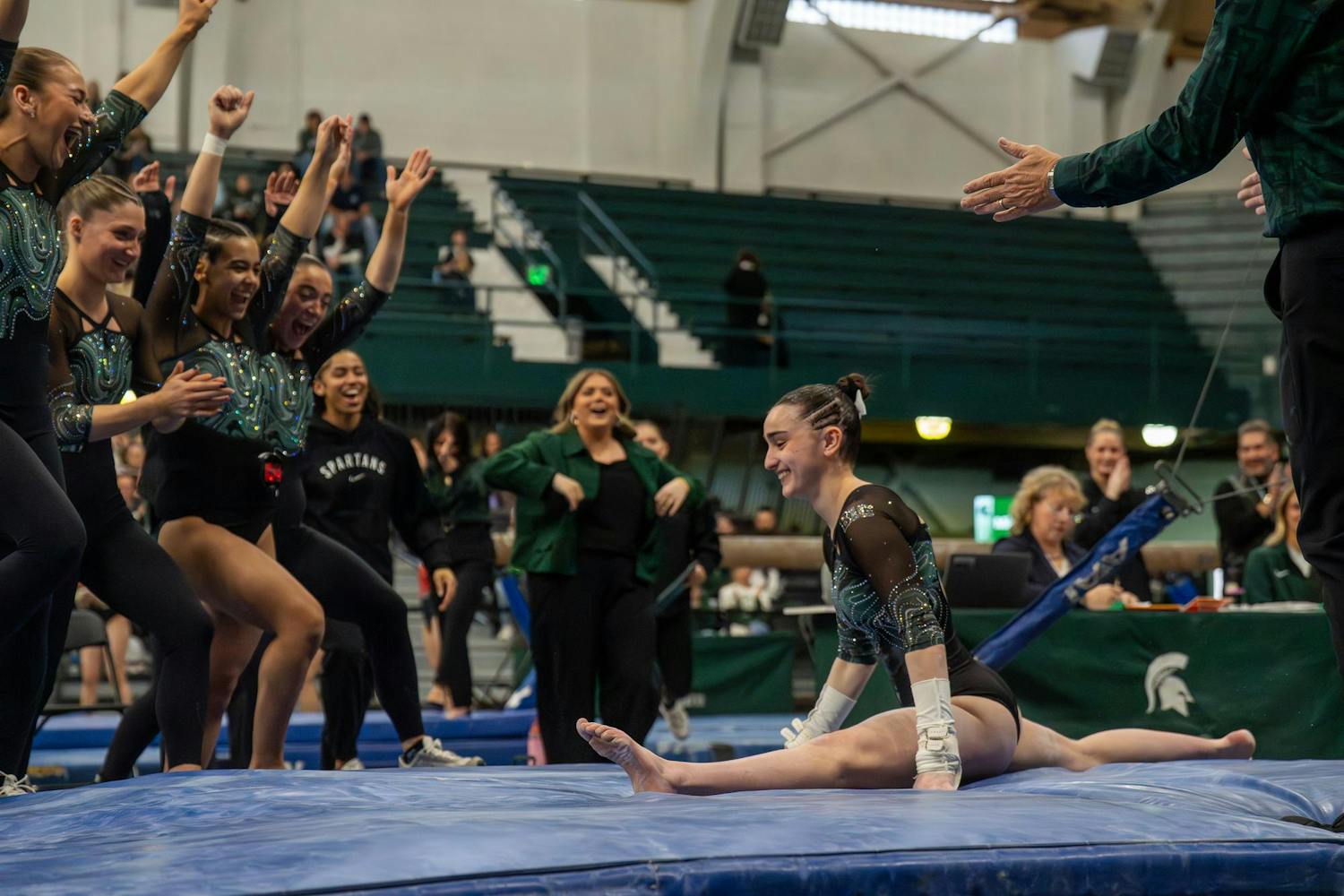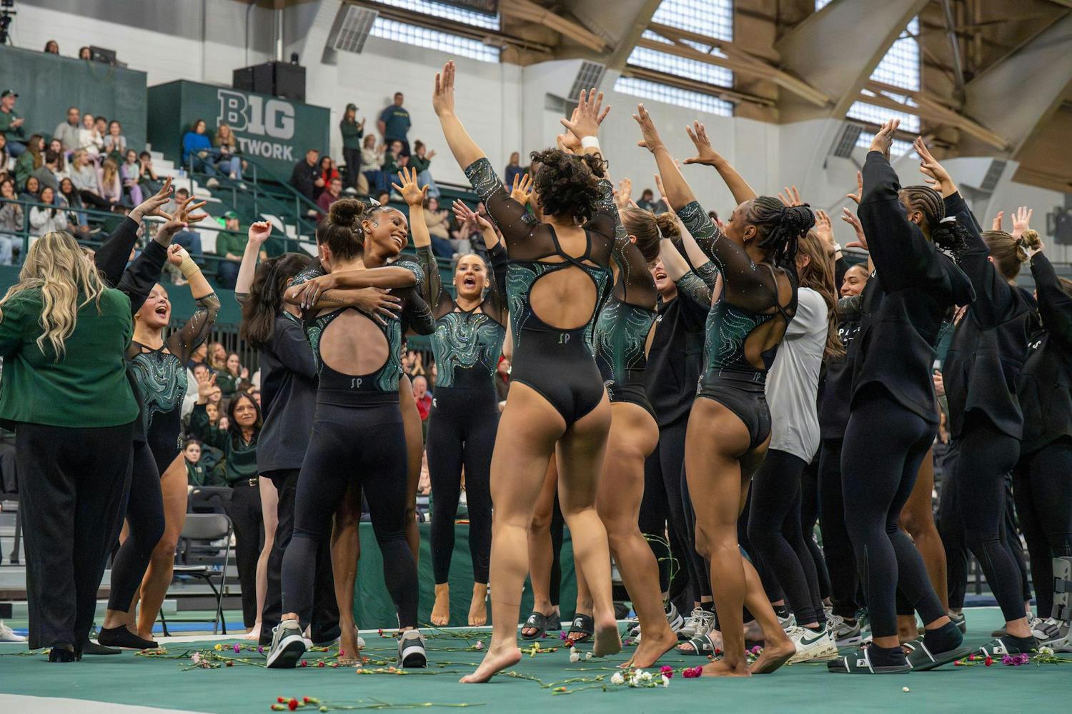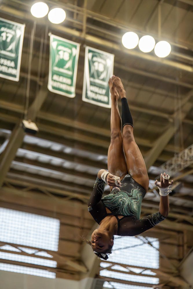 Michigan State gymnastics hosted Brown University for its Senior Night meet at Jenison Field House in East Lansing, Mich., on Sunday, March 15, 2026. The night honored Spartan seniors while the team competed across vault, uneven bars, balance beam and floor, highlighted by strong routines and celebrations with teammates and family.