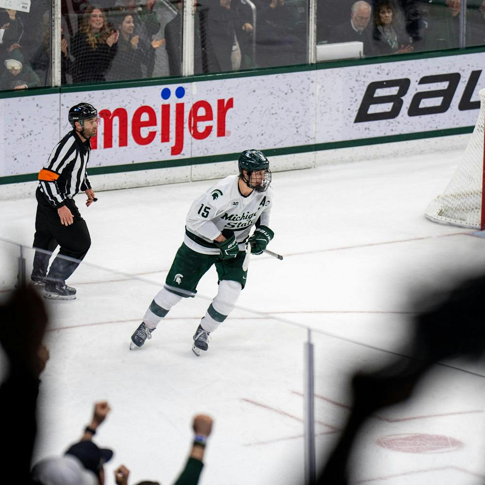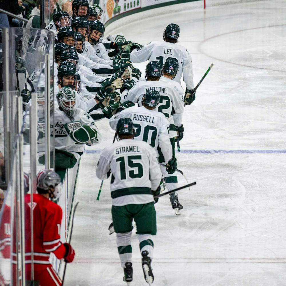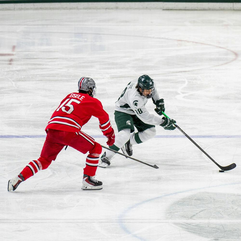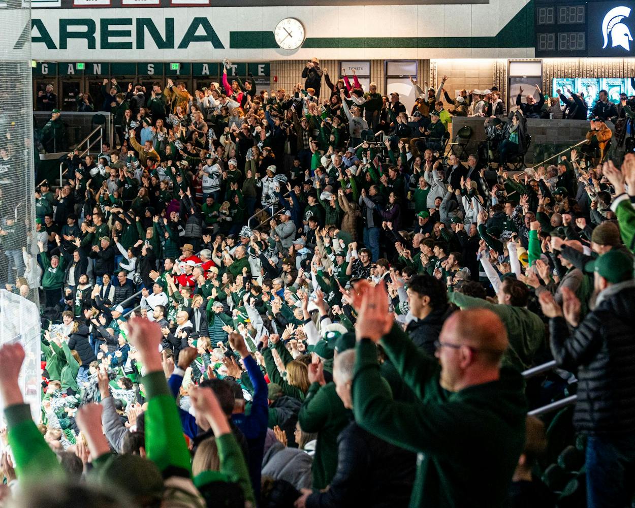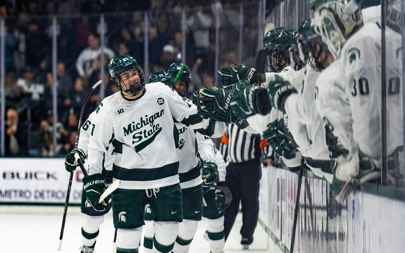 Michigan State University's hockey team barely managed to beat Ohio State on their senior night in Munn Ice Arena in East Lansing, MI on Feb. 28, 2026. MSU won after ending in a tie, 3-3, in regulation and OT then proceeded to a 12 round shootout before eventually winning the game.
