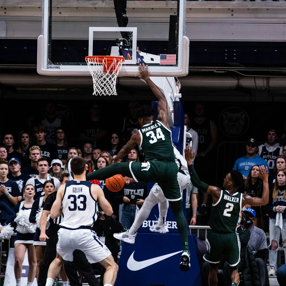 Michigan State men’s basketball traveled for a game against Butler on Nov. 17, 2021, at the Hinkler Fieldhouse. The Spartans defeated the Bulldogs 73-52.