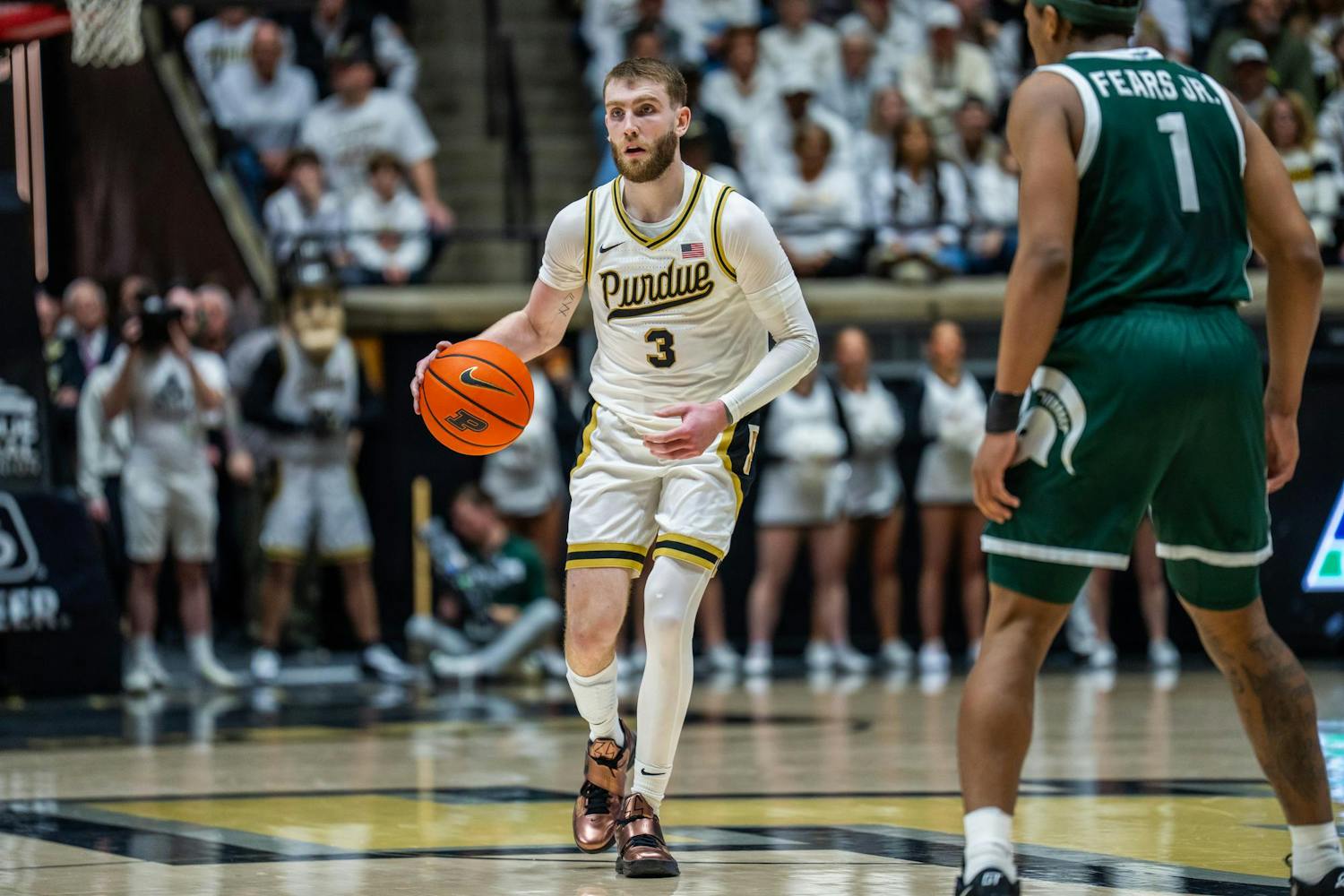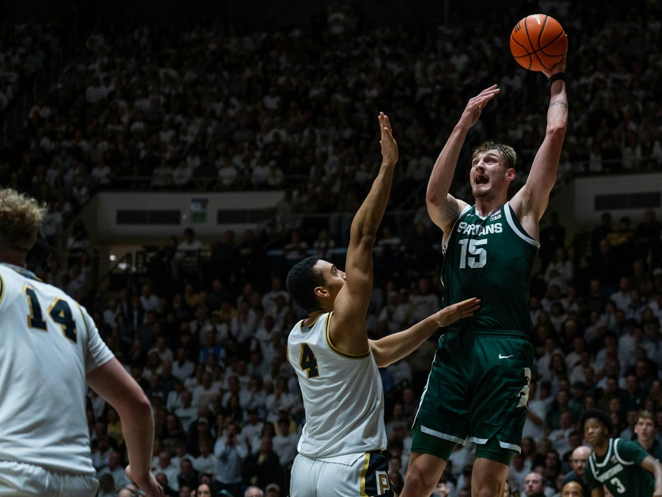 Michigan State basketball faced off vs. Purdue University at Mackey Arena in West Lafayette, Indiana on Thursday, Feb. 26, 2026. MSU won 76-74, marking the first MSU victory in 12 years at Mackey Arena.