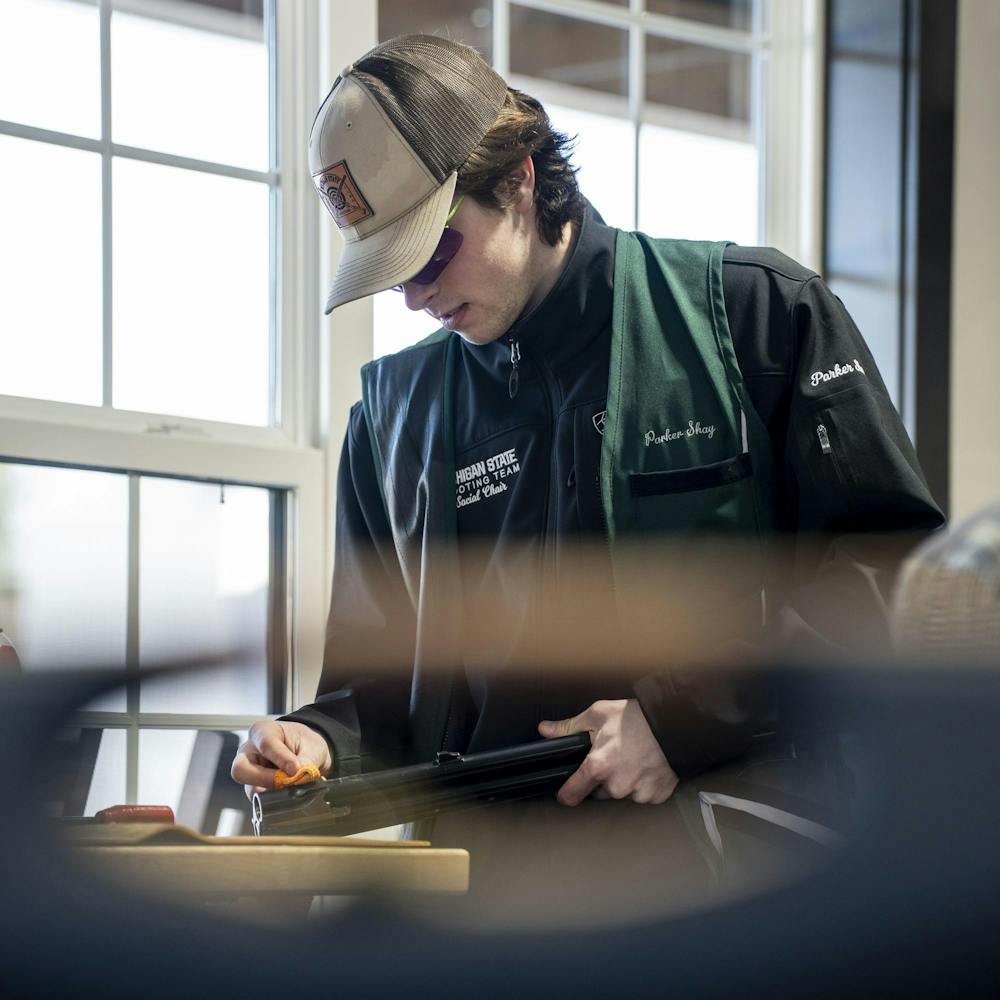 The MSU Shooting Sports Club practices at the Capital Area Sportsmen's League in Lansing, Mich. on Feb. 1, 2026.