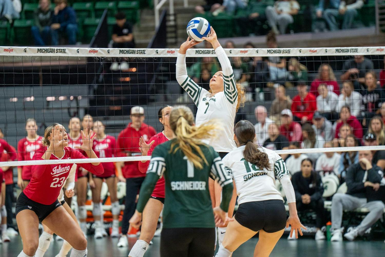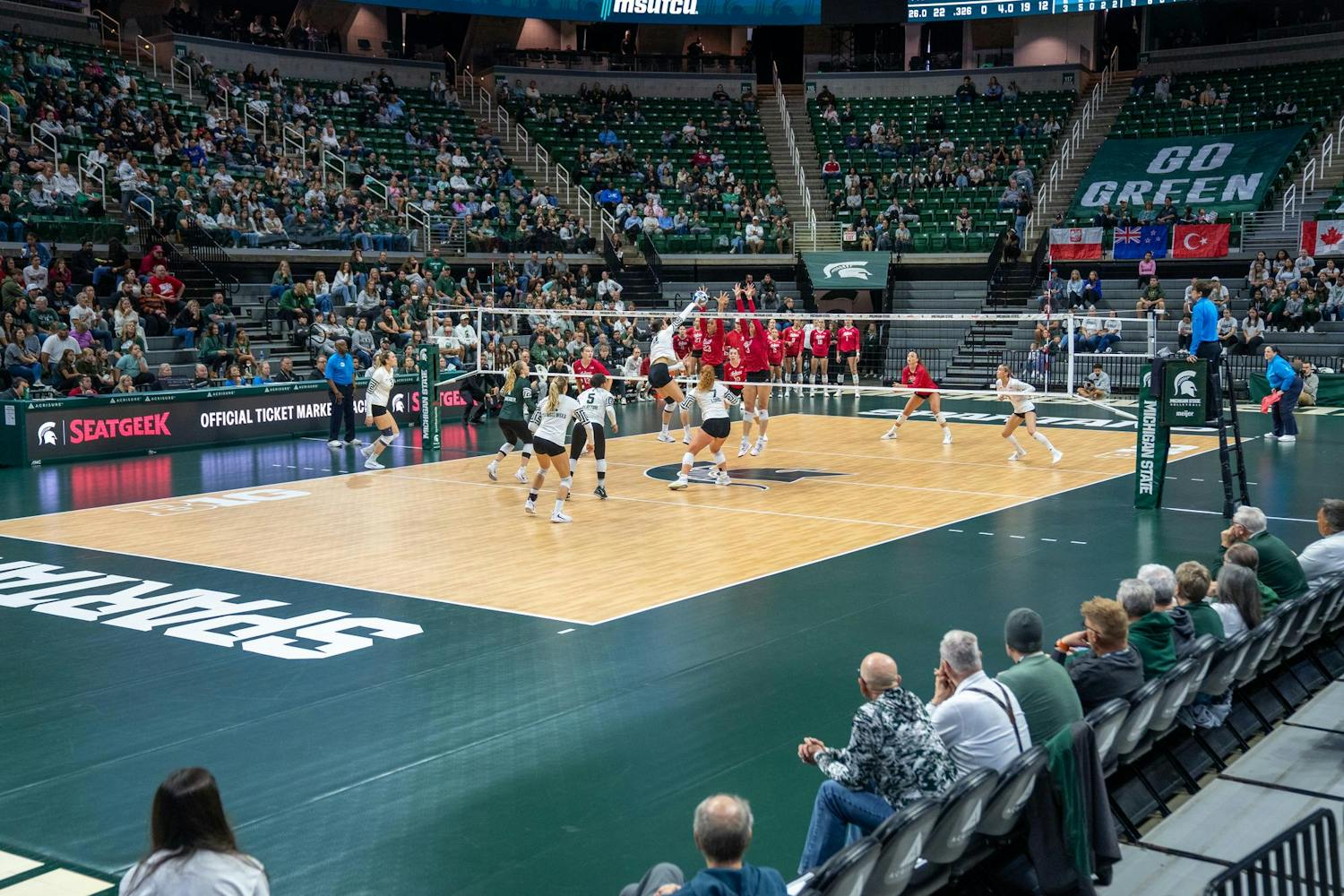 The MSU women’s volleyball team swept Indiana 3-0 at the Breslin Center in East Lansing, Michigan on Oct. 12, 2025.