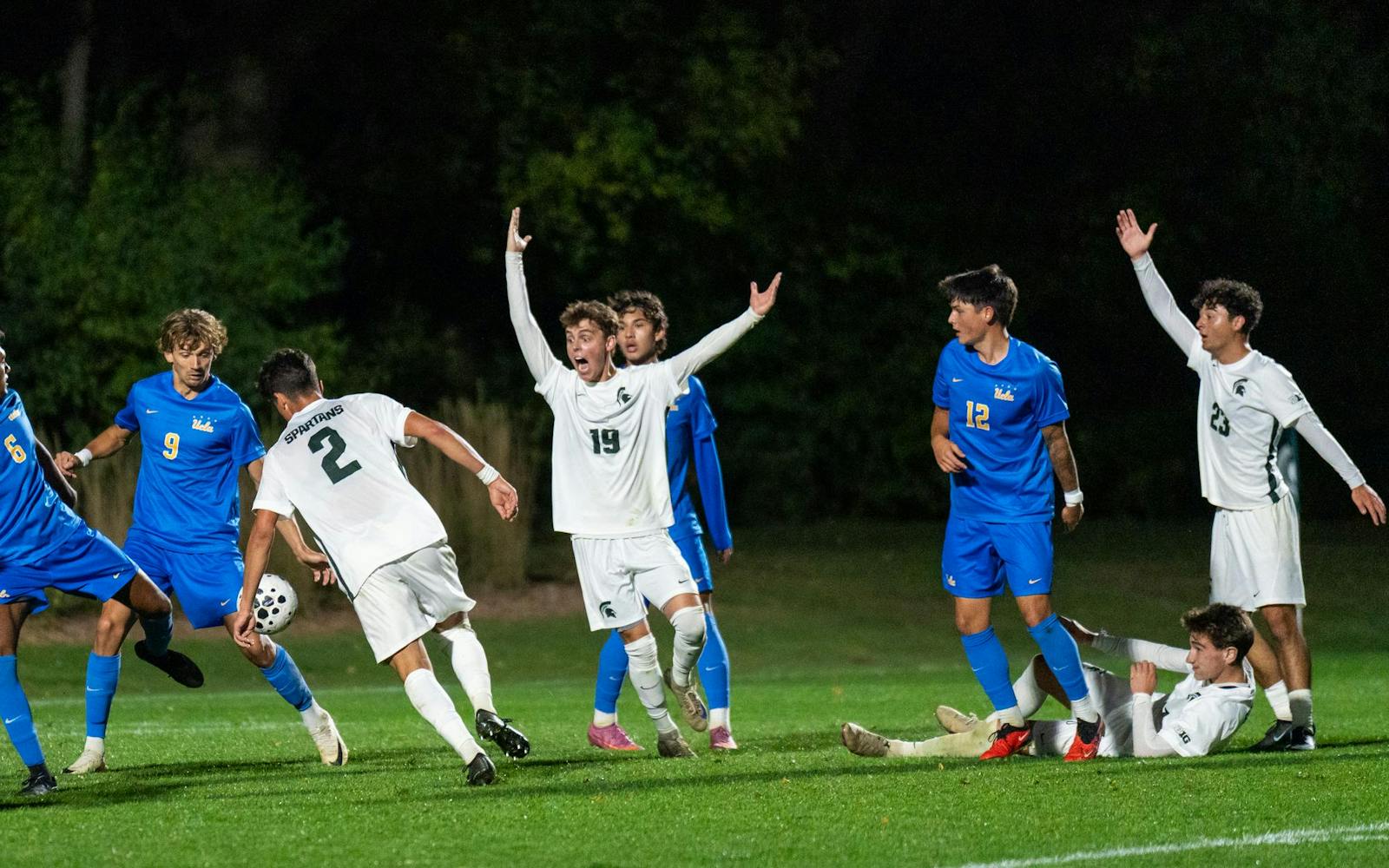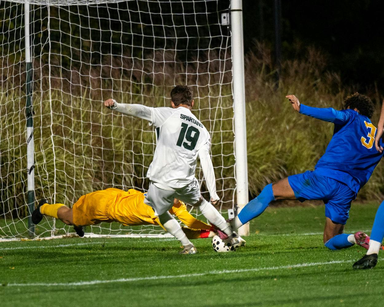 Michigan State University Men's Soccer ties against UCLA at Michigan State University’s DeMartin Soccer Stadium on Monday, Oct. 20, 2025. Michigan State had a hard fought battle against UCLA, but were unable to take away the victory.