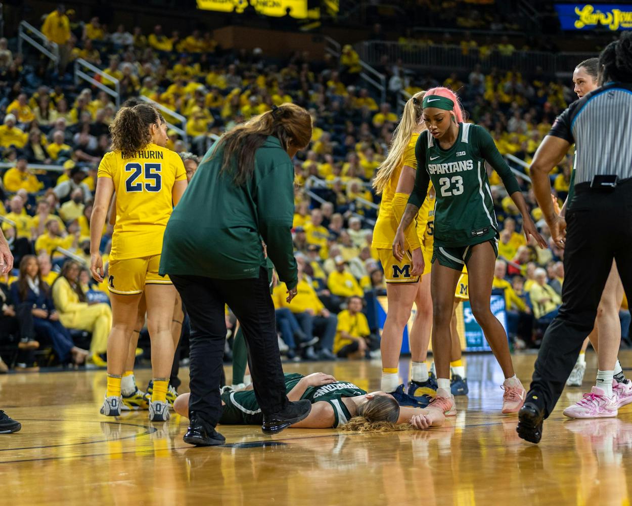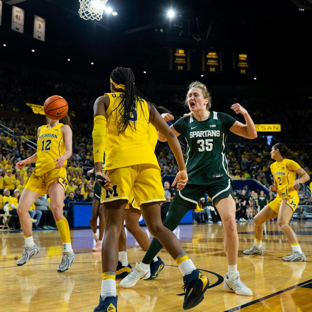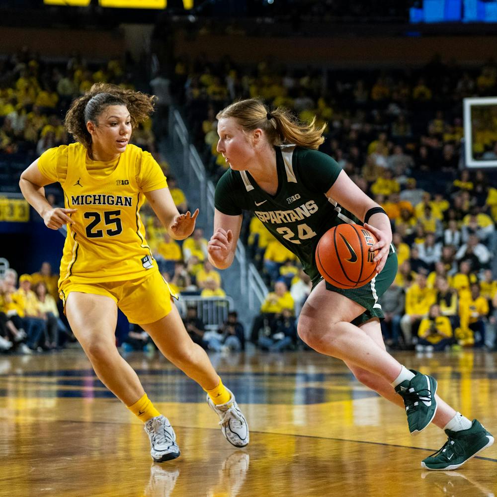 gallery MSU women's basketball takes a hard loss at Crisler Center MSU women's basketball team took a hard loss to Michigan on Feb. 15, 2026.