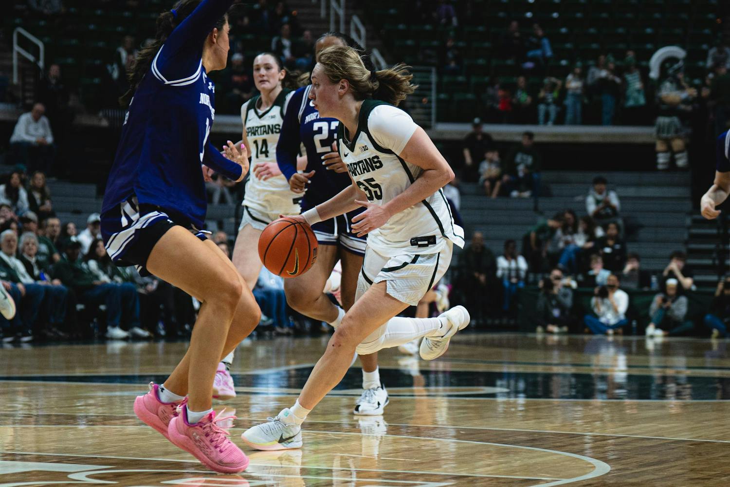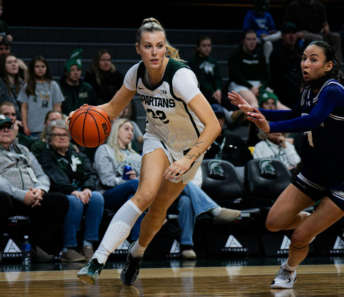 MSU women's basketball wins against Northwestern, 104-68. The Spartans dominated the wildcats at the Breslin Center in East Lansing, MI on Feb 18, 2026.