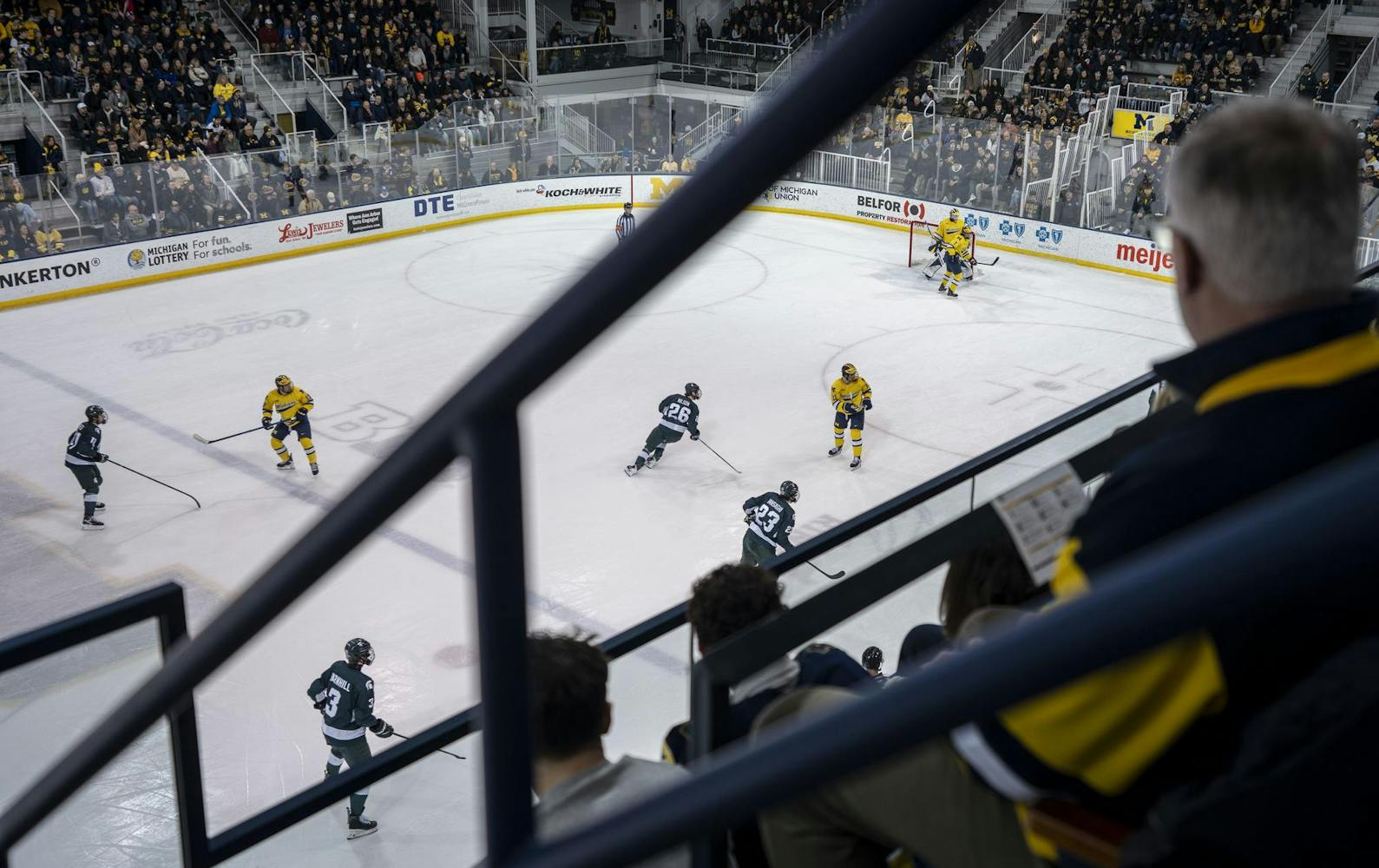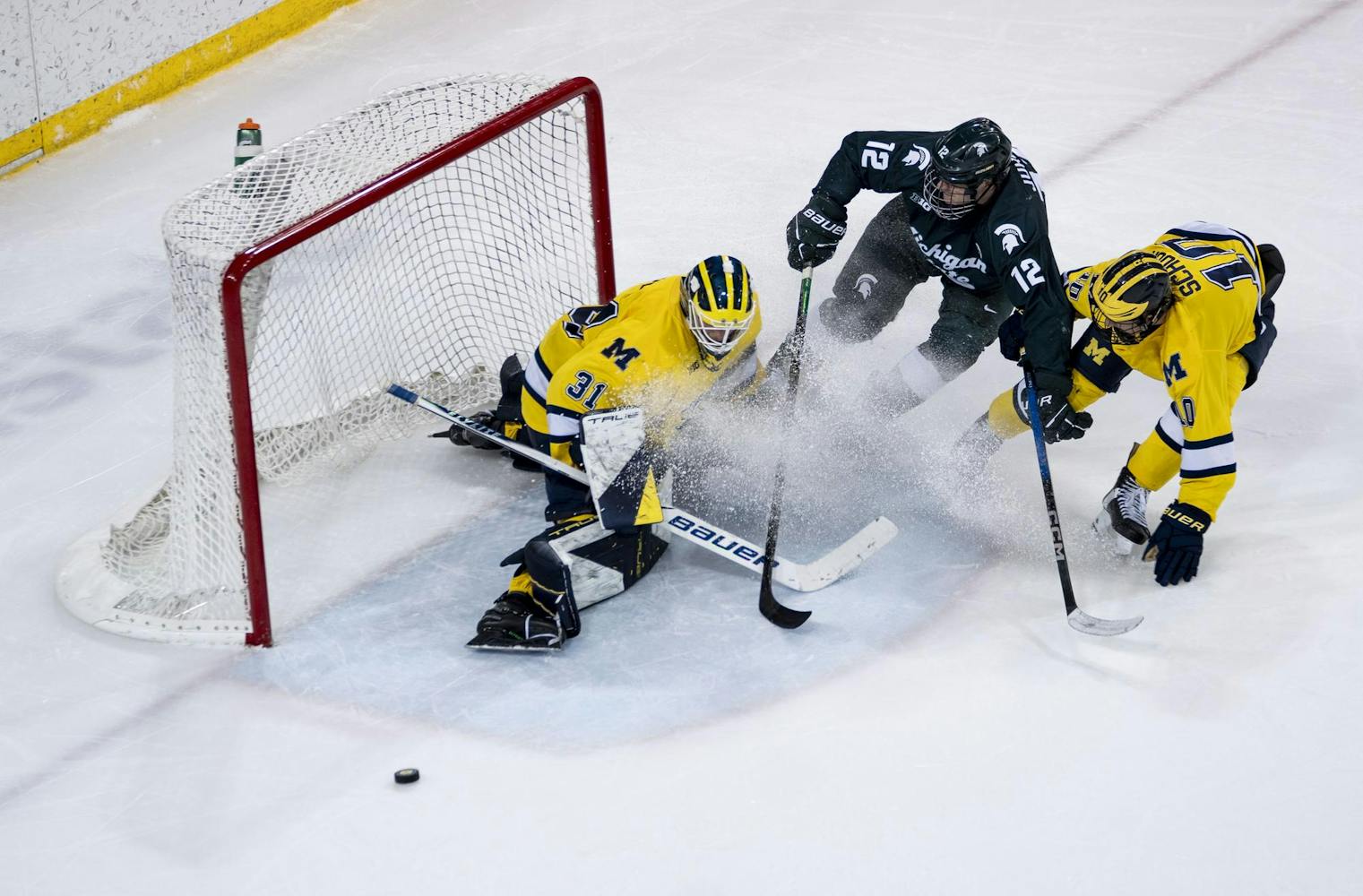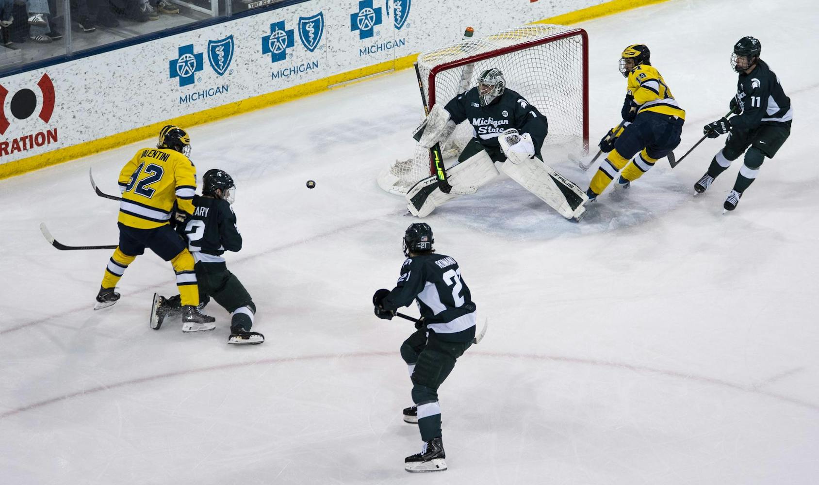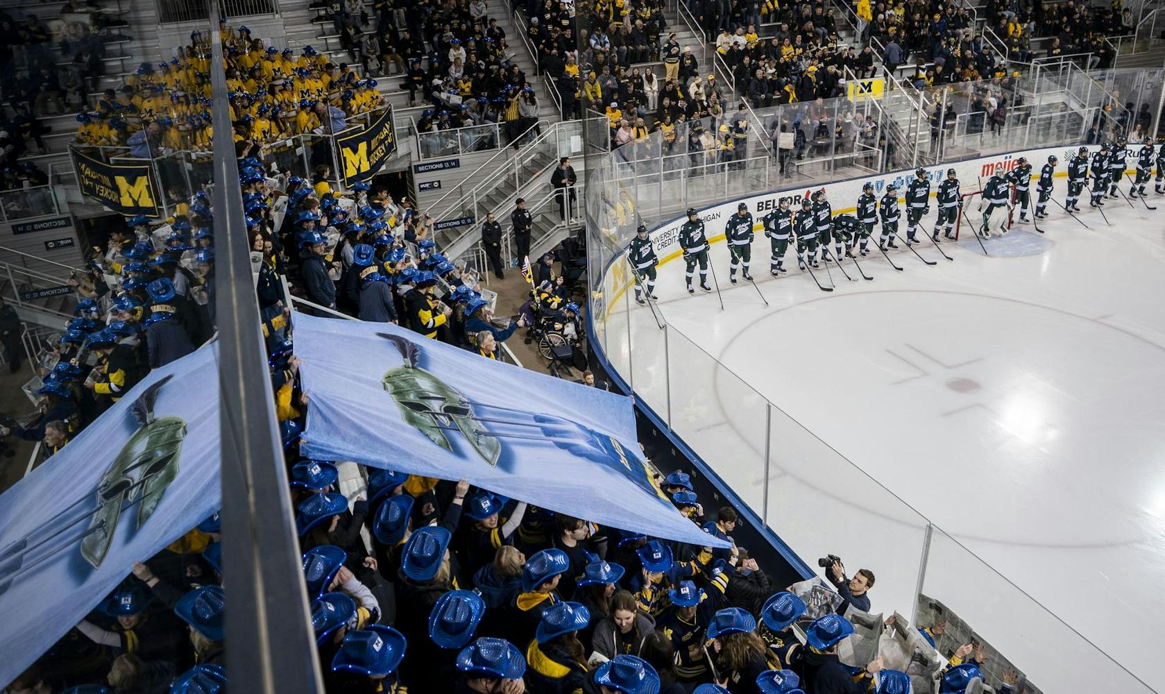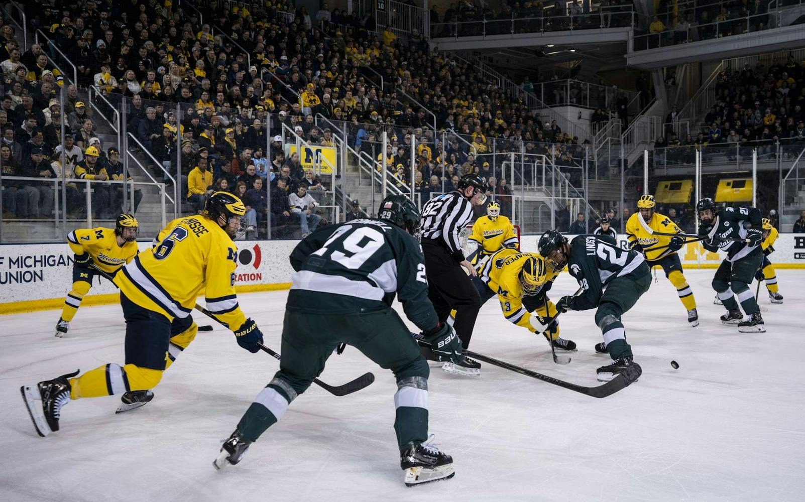 No. 1 UM and No. 2 MSU face off at the Yost Ice Arena in Ann Arbor, Mich., on Feb. 6, 2026. UM defeated MSU during overtime after scoring two points in the final period.