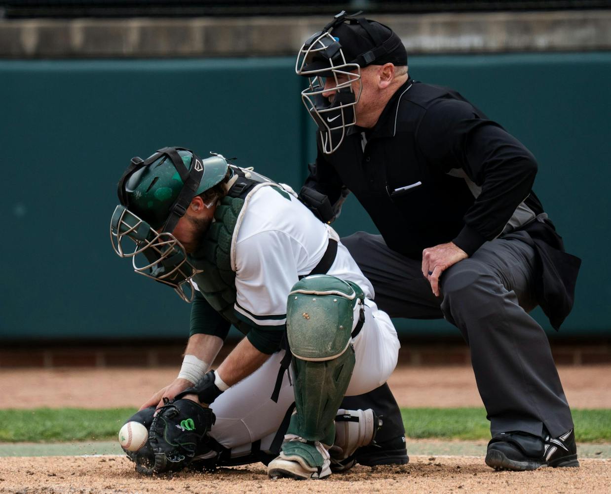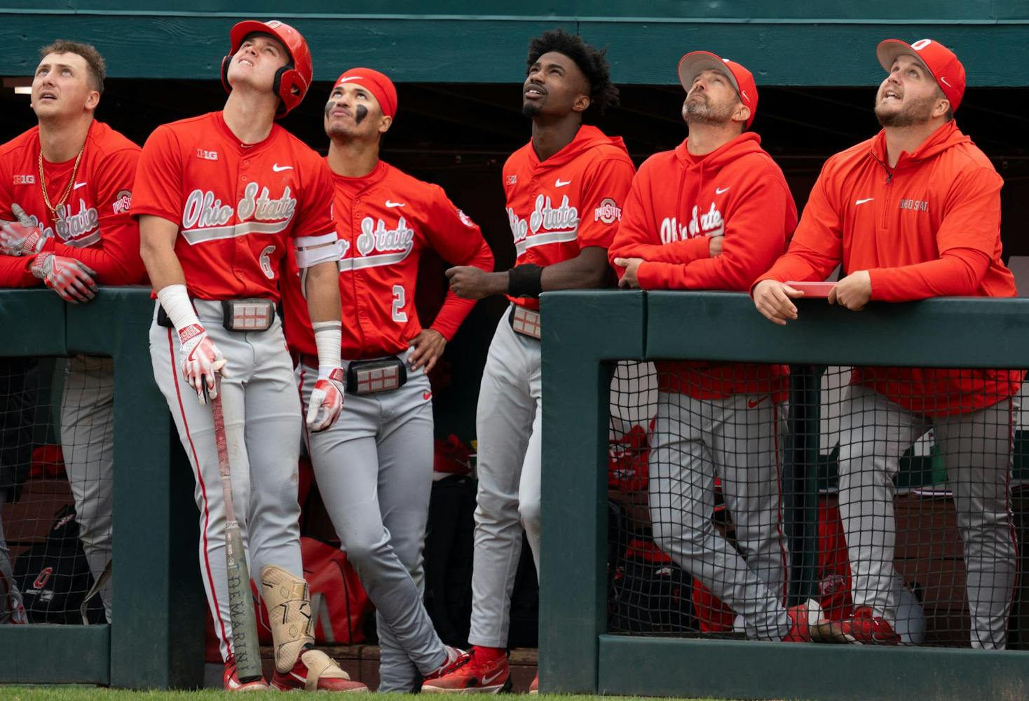 Michigan State edged Ohio State 10–9 in 11 innings to open the weekend series at McLane Stadium. Senior outfielder JT Sokolove (2) sealed the win with a walk-off home run.