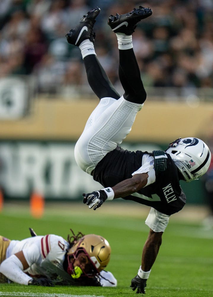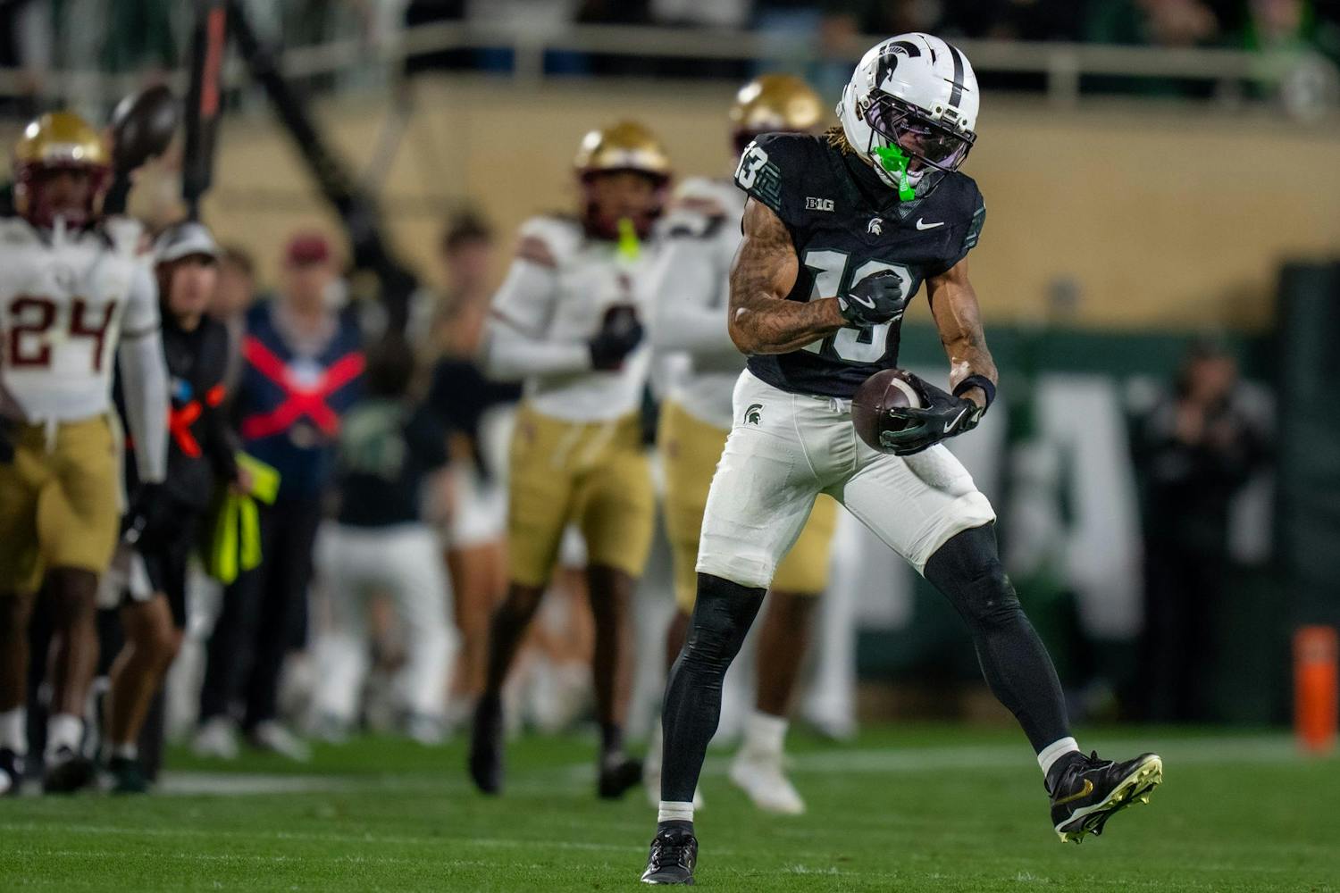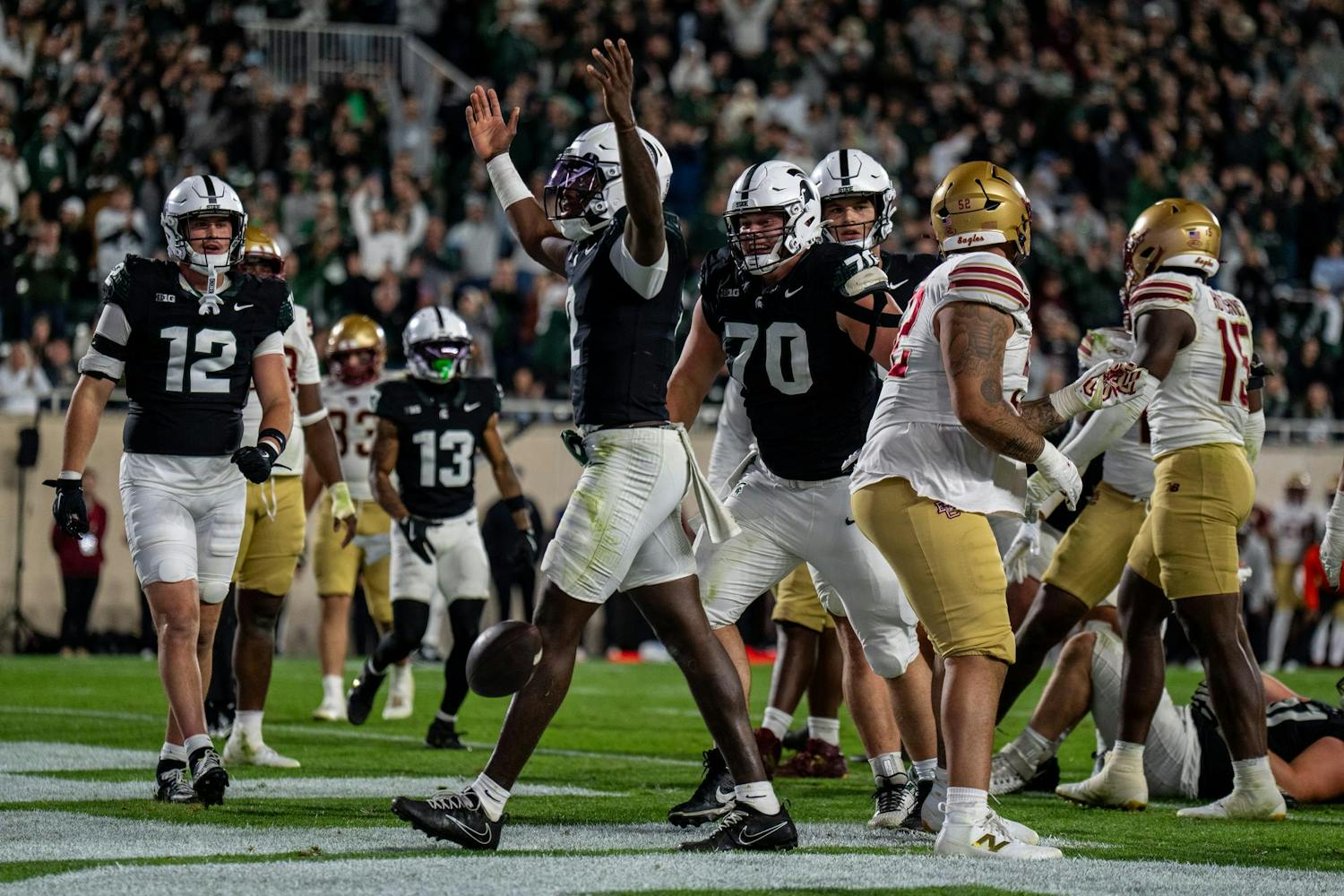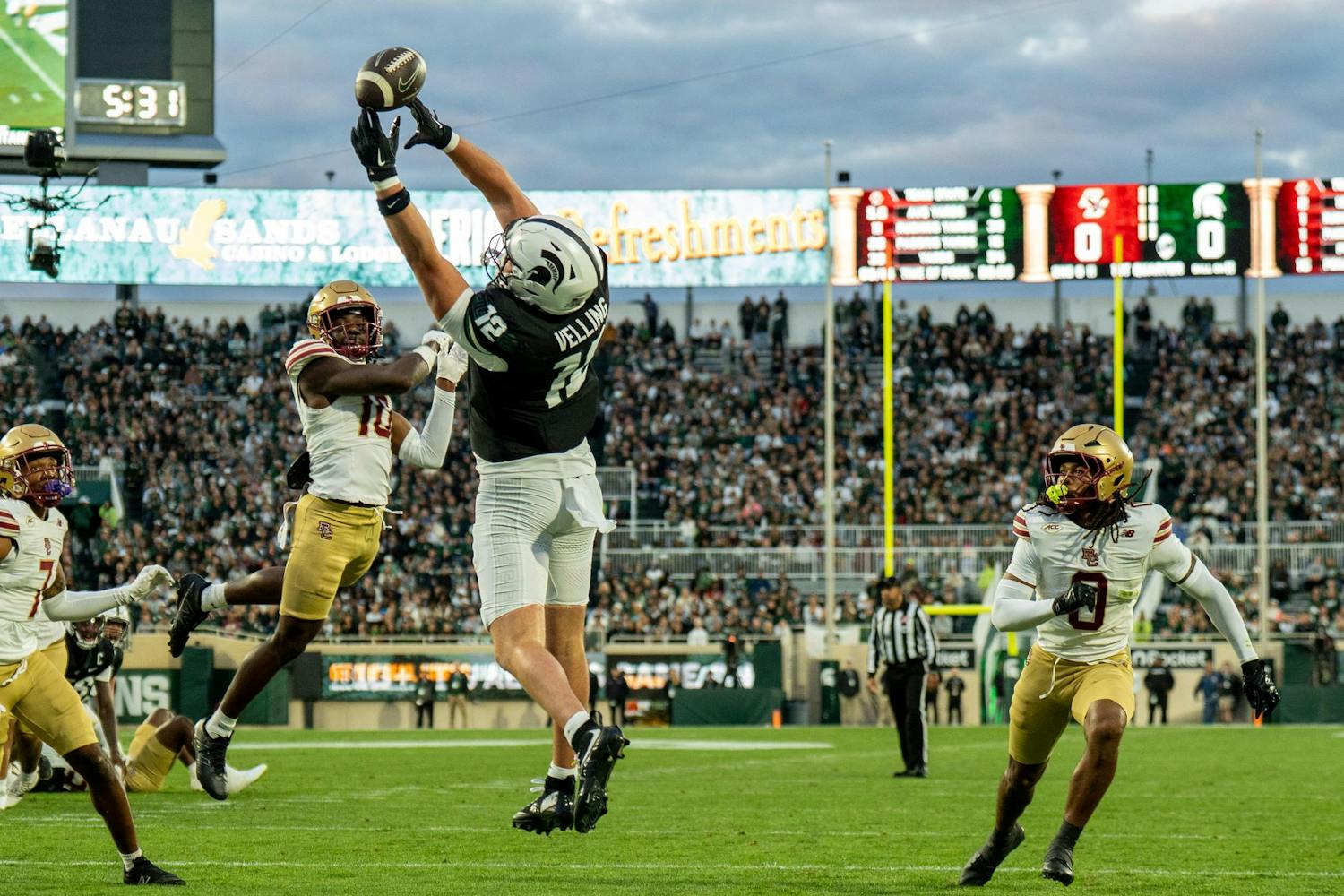 Michigan State pulls off a 42-40 double-overtime victory over Boston College on Saturday, Sept. 6, 2025 at Spartan Stadium in East Lansing, Michigan. The Spartans and Eagles traded touchdowns in a high-scoring battle that kept fans on edge deep into the night. This is Michigan State’s first victory over Boston College since 1995.