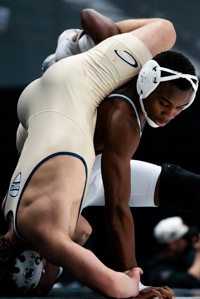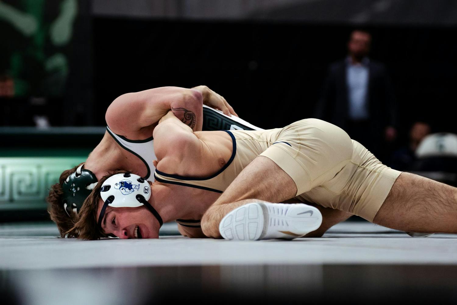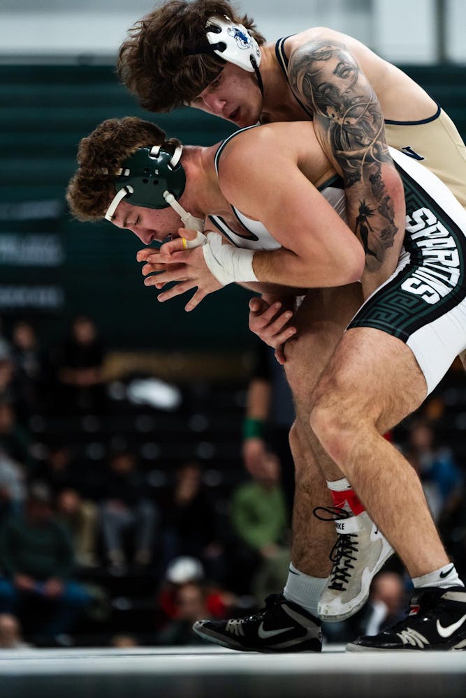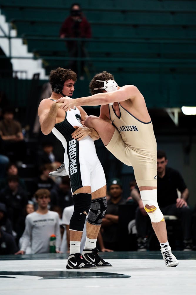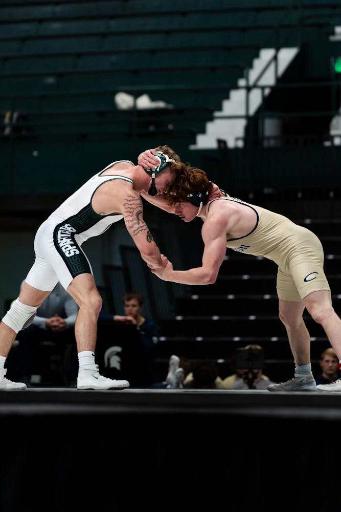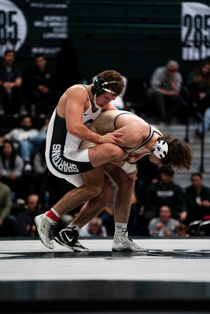 Michigan State wrestling defeated PennWest Clarion at Jenison Field House on Feb. 2, 2025. The Spartans celebrated Senior Day with a 30-8 victory, honoring their seniors in front of a home crowd.