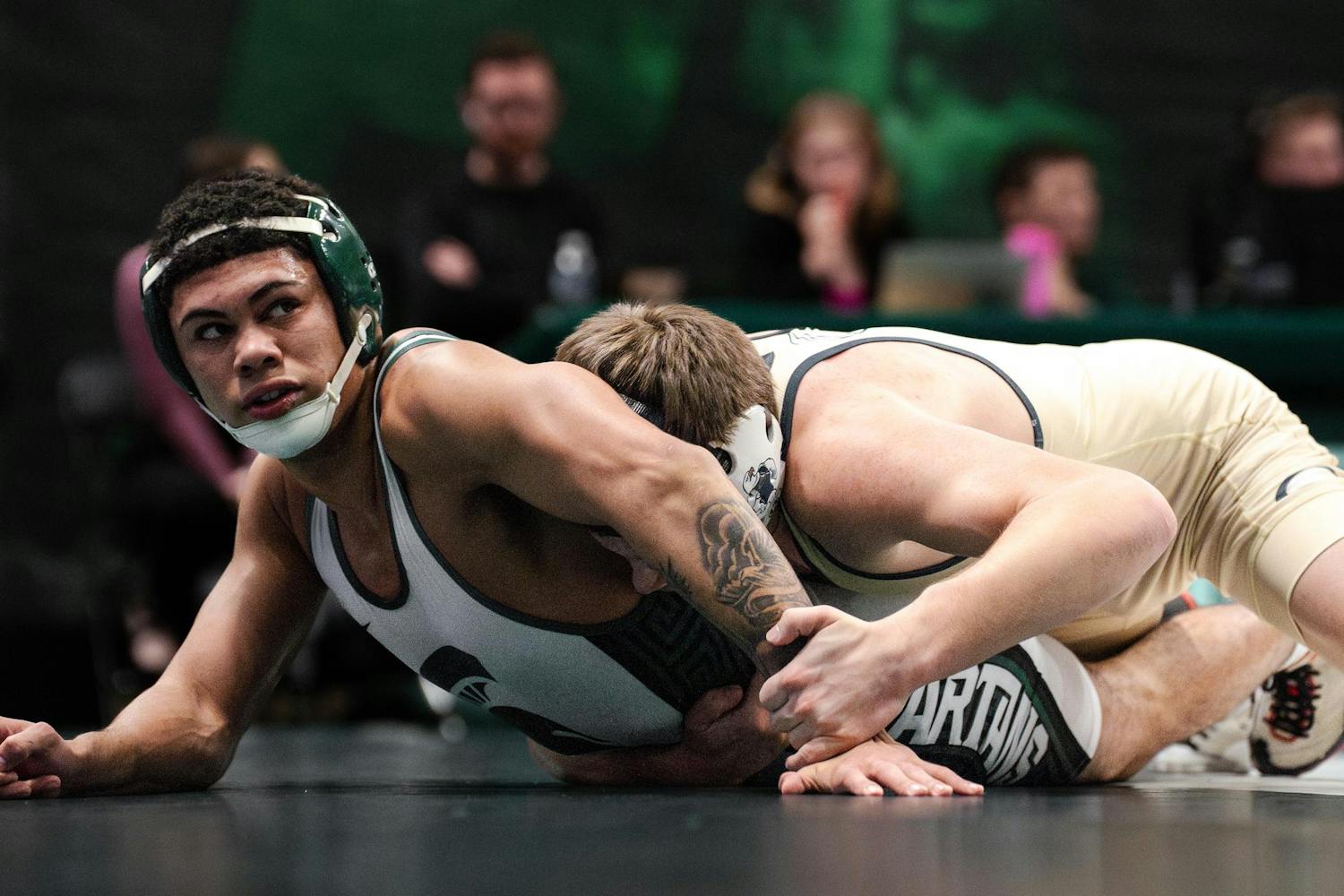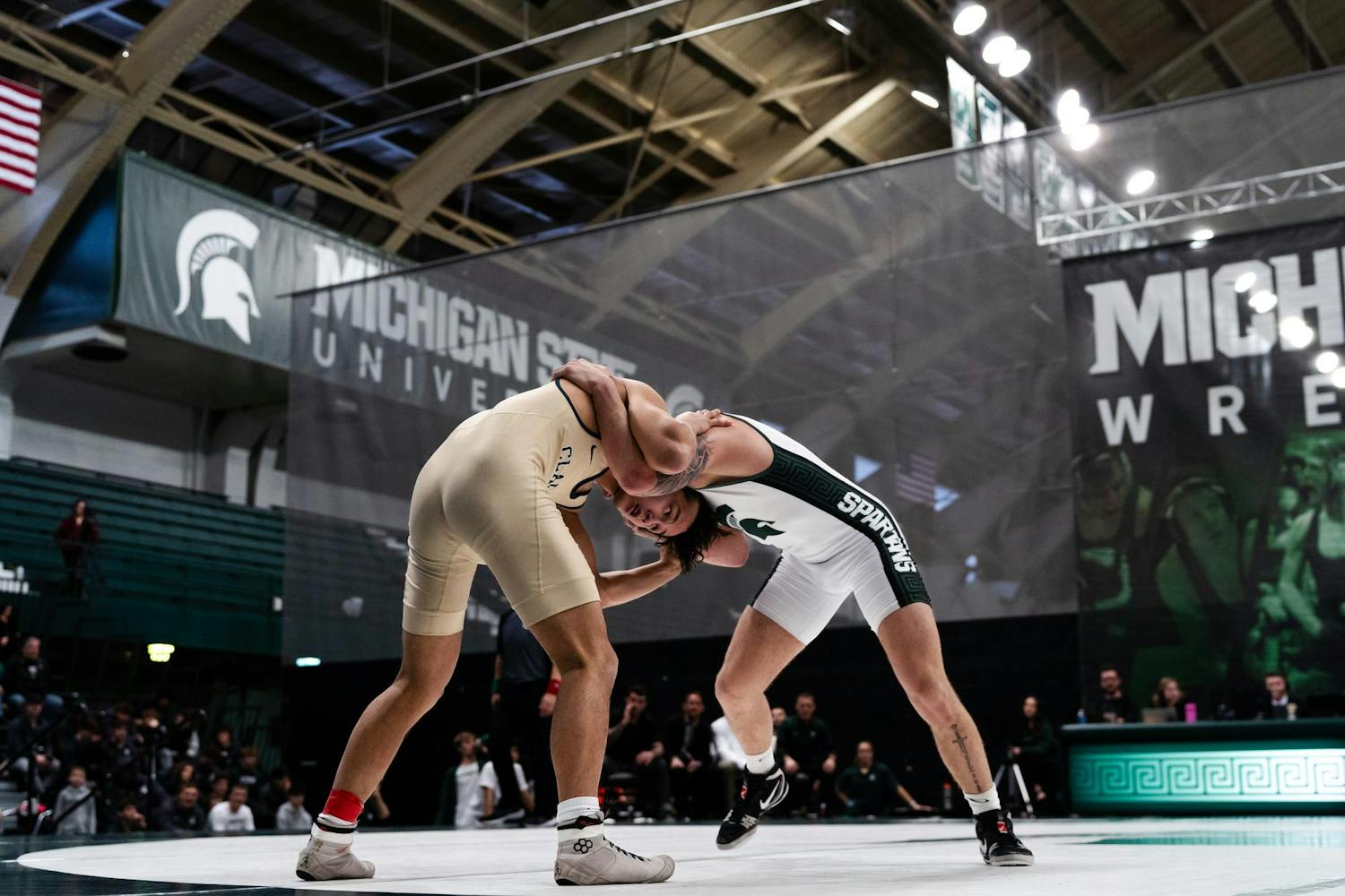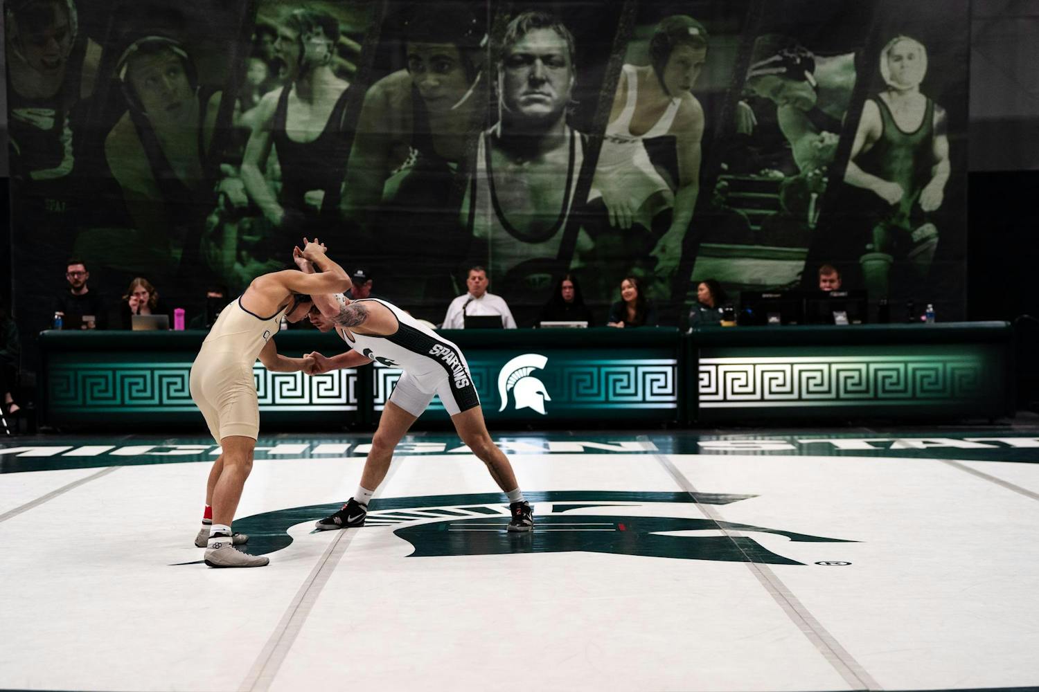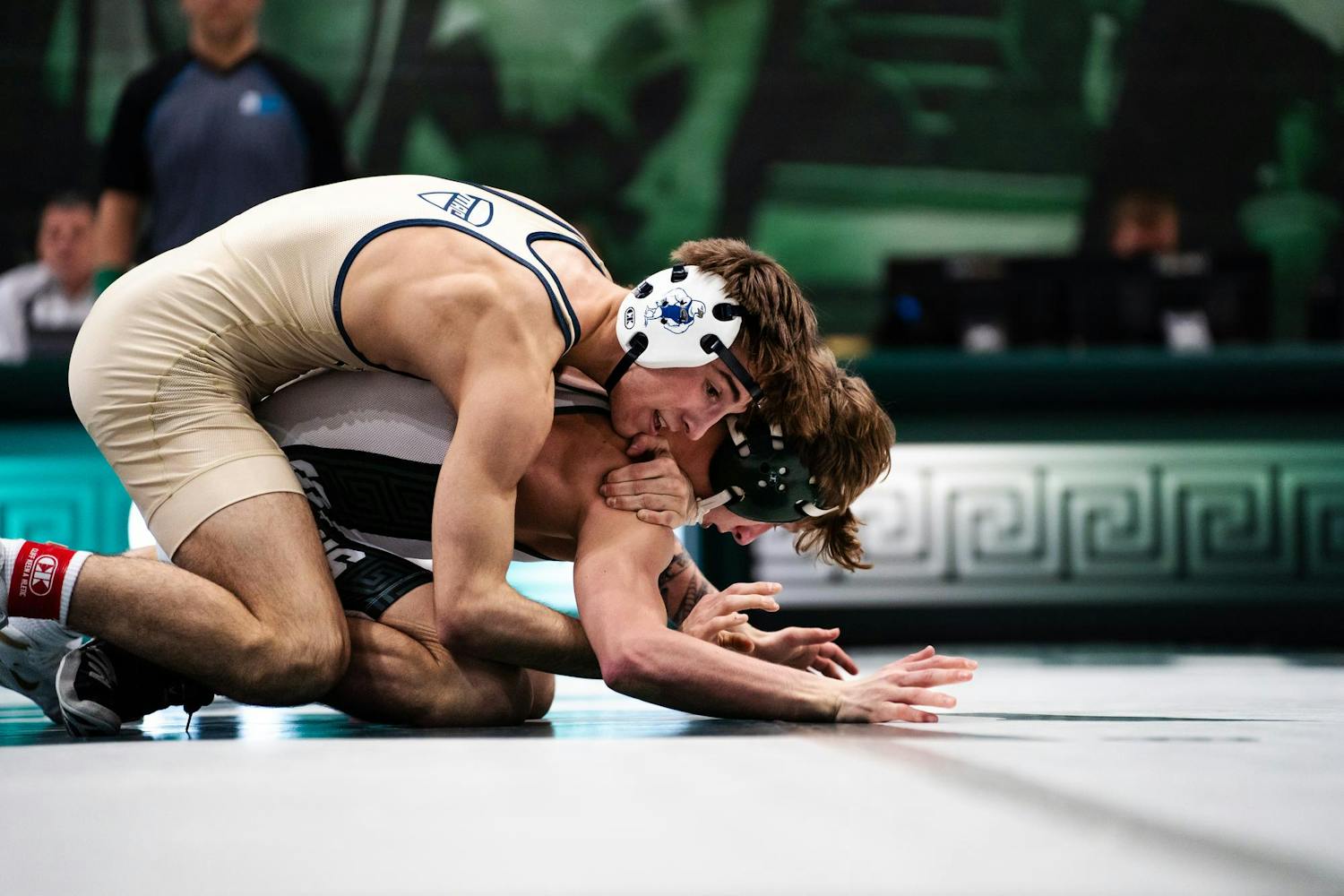 Michigan State wrestling defeated PennWest Clarion at Jenison Field House on Feb. 2, 2025. The Spartans celebrated Senior Day with a 30-8 victory, honoring their seniors in front of a home crowd.