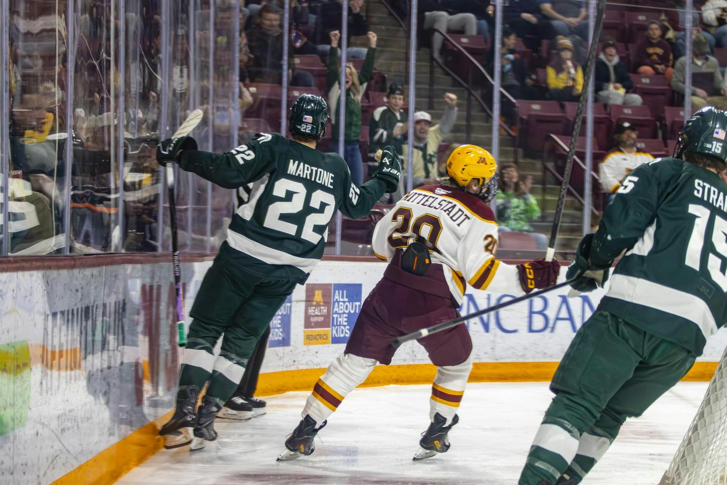 Michigan State secured a 7-1 victory over Minnesota at 3M Arena at Mariucci in Minneapolis, Minnesota, on Thursday, March 5, 2026. The Spartans outperformed the Gophers, gaining their third outright Big Ten title.