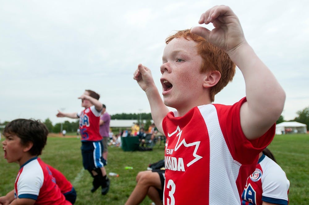 Edmonton, Alberta resident Andrew Livingstone cheers after his team scores a goal Aug. 5, 2013, at Munn Field during the World Dwarf Games. Livingstone’s team won in a penalty kick shootout. Weston Brooks/The State News