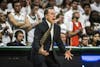 Head Coach Tom Izzo yells at the Spartans during the game against Notre Dame on Nov. 30, 2017 at Breslin Center. The Spartans took down the Fighting Irish, 81-63.