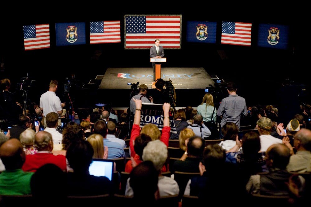 Republican presidential candidate Mitt Romney used his background in Michigan to play to a crowd of almost 500 people at Lansing Community College’s Dart Auditorium Tuesday afternoon, speaking of regrowing the middle class out of manufacturing.