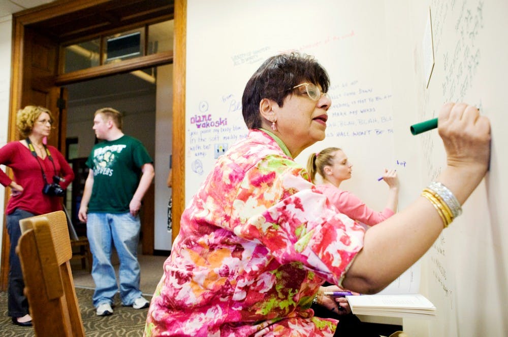 Looking up at the words she had written across a wall in Morrill Hall, Melissa Downing could not help but feel nostalgic. Morrill Hall is scheduled to be torn down in March 2013, and the English Department hosted A Literary Graffiti Project on Thursday to celebrate National Poetry Month and the department’s place in Morrill Hall.